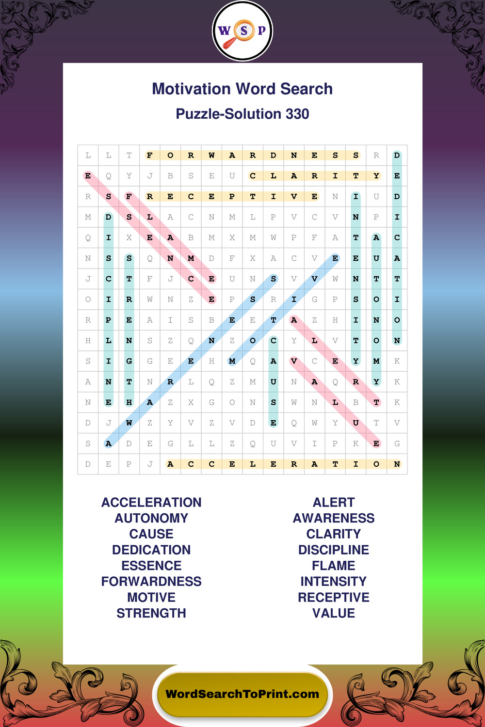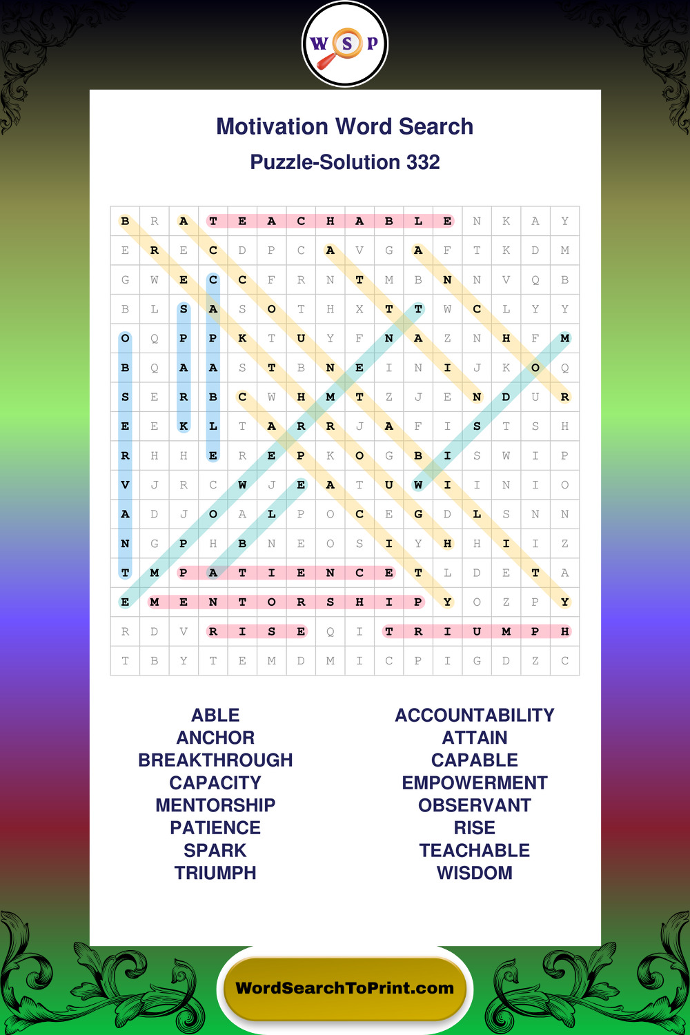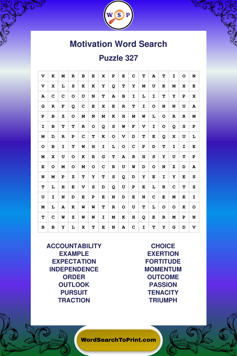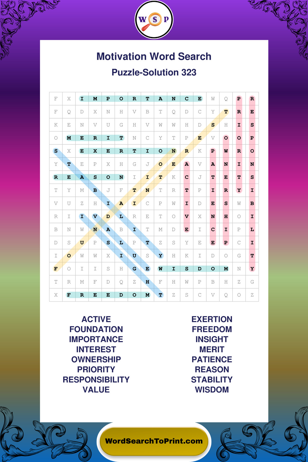 These puzzles focus on motivation, goal setting, life lessons, inspiration, and personal development concepts. They offer a structured and engaging way to explore this topic while strengthening concentration and vocabulary recognition. You may also enjoy our Inspiration word search puzzles and Wisdom word search puzzles.