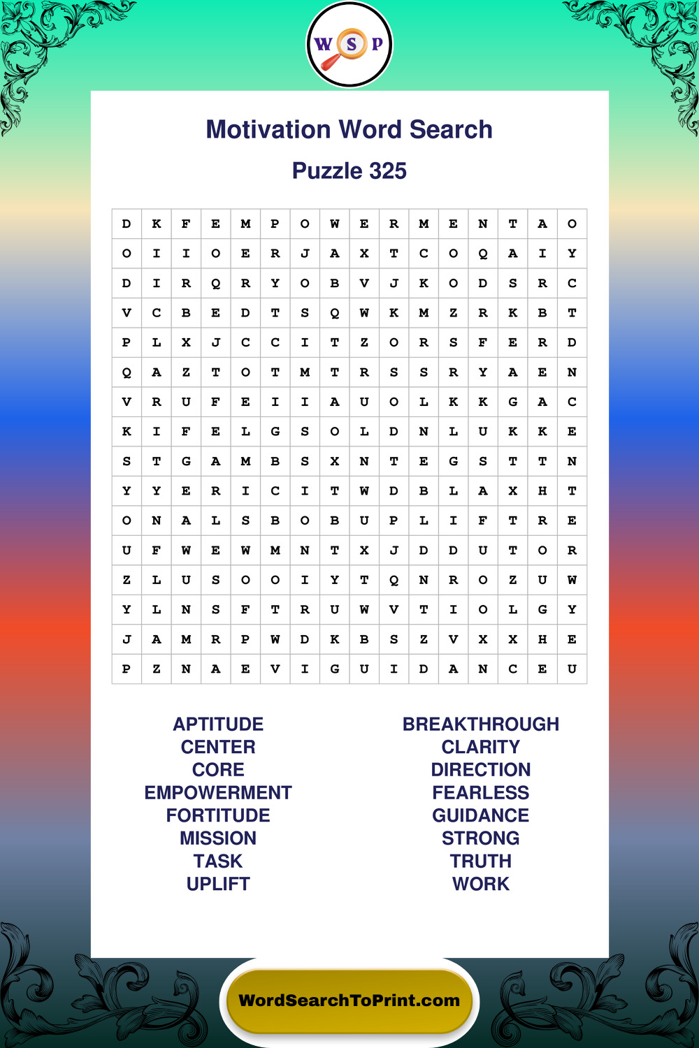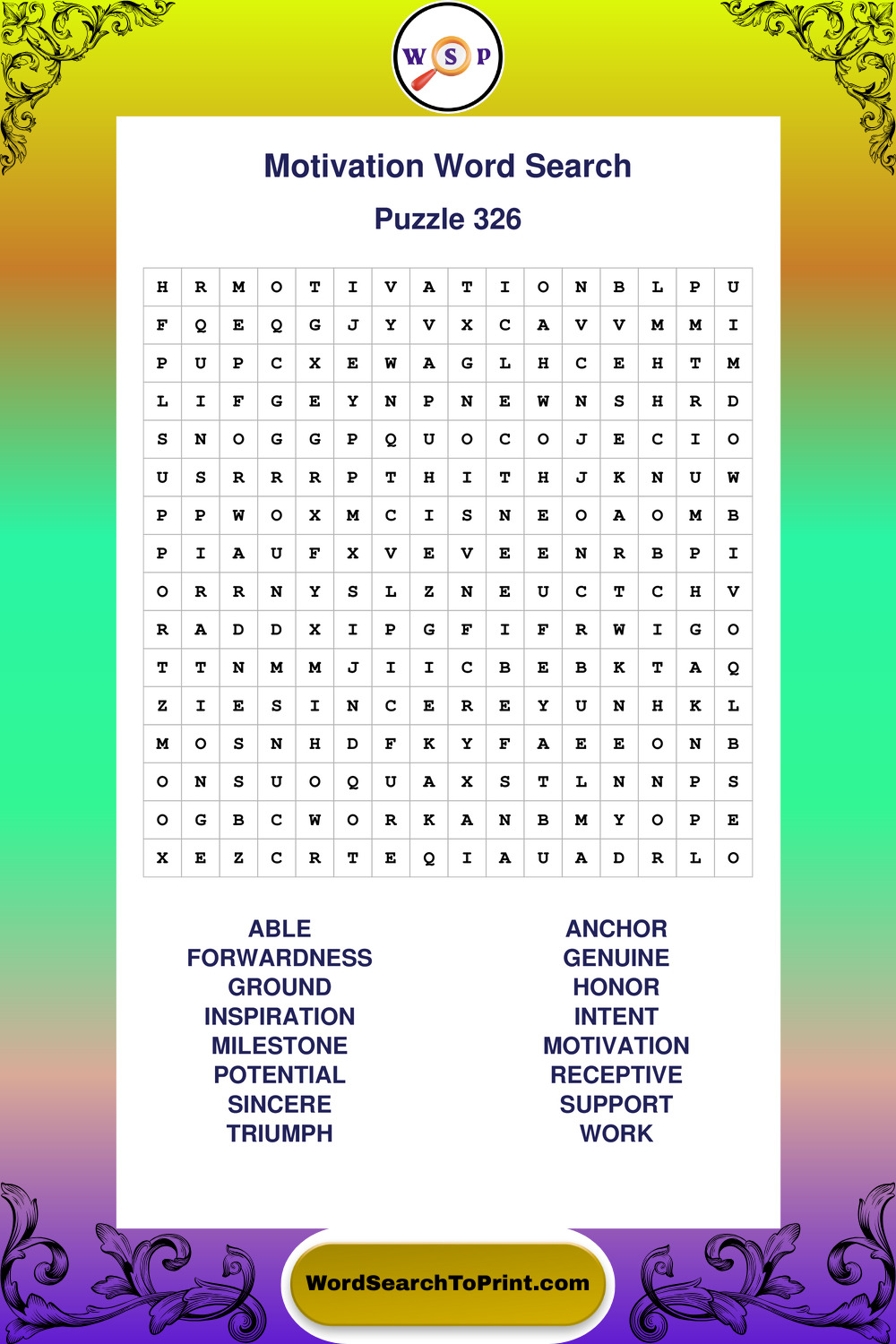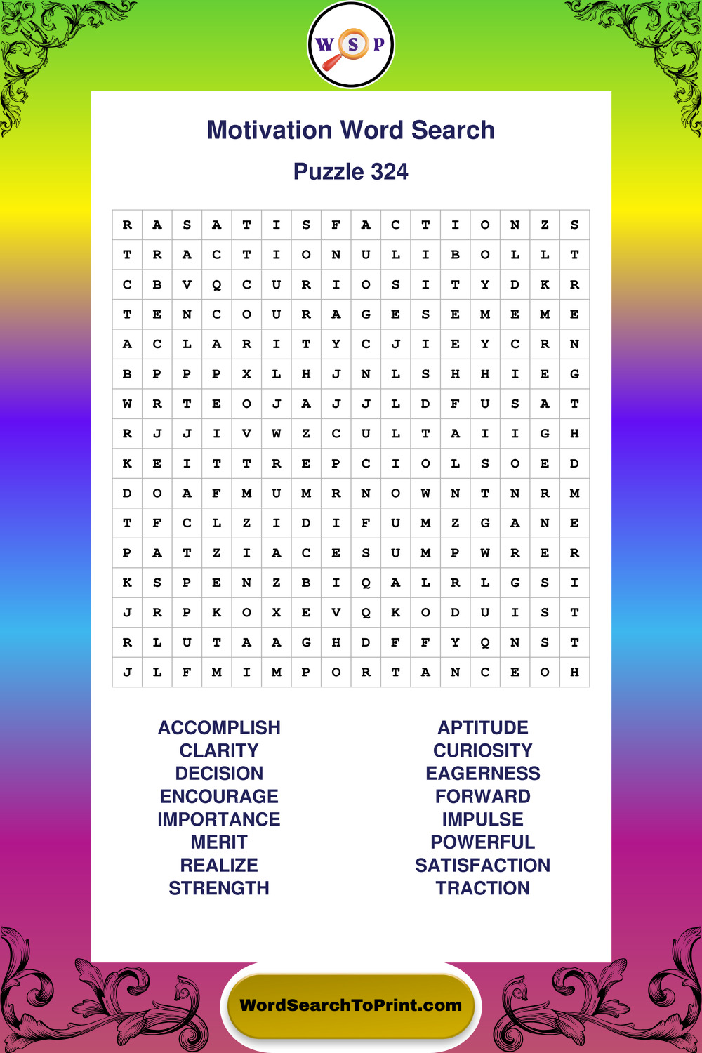 Printable Motivation Wordsearch Puzzles