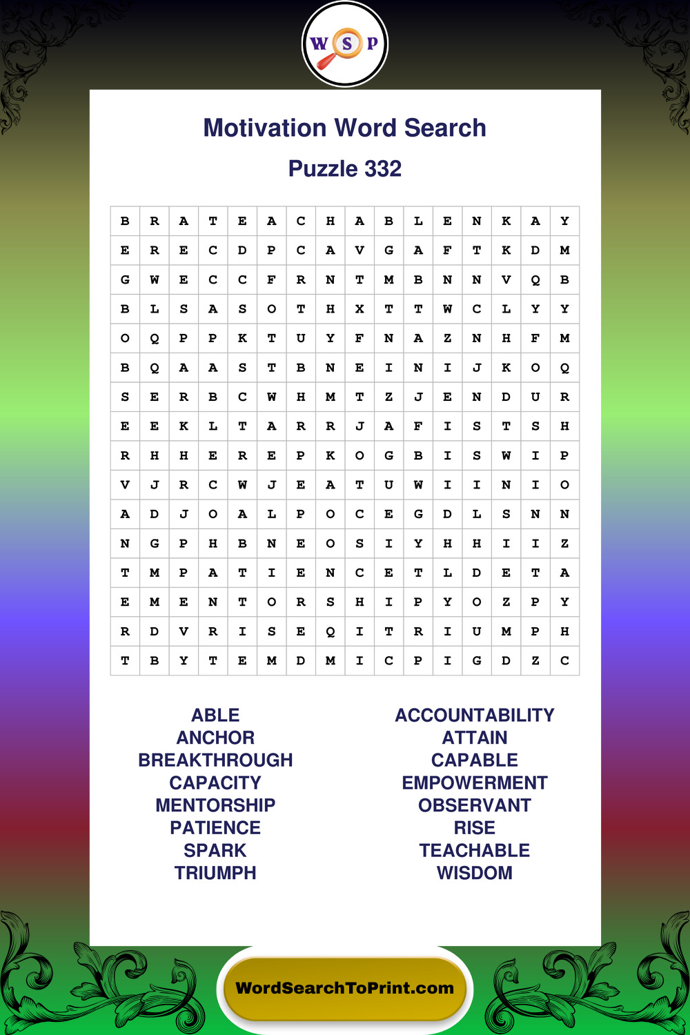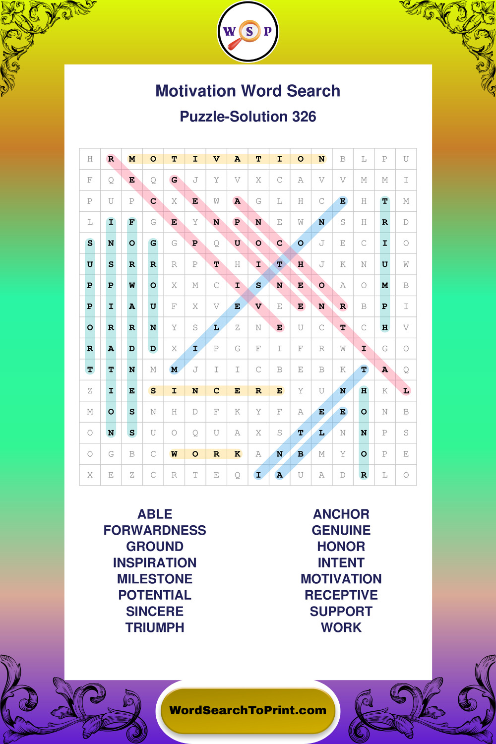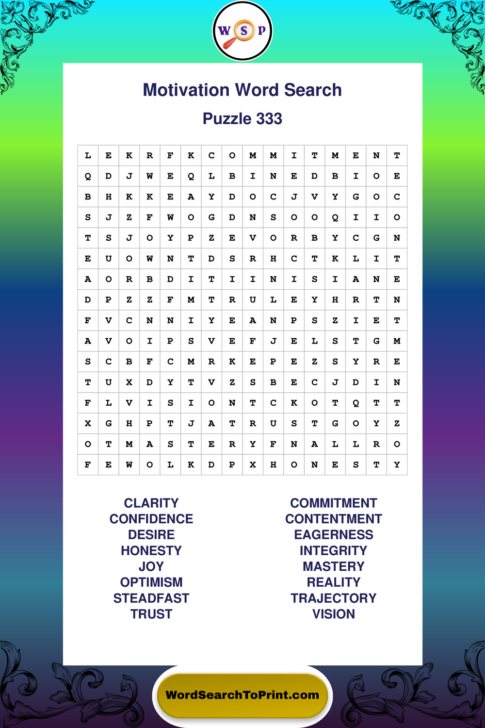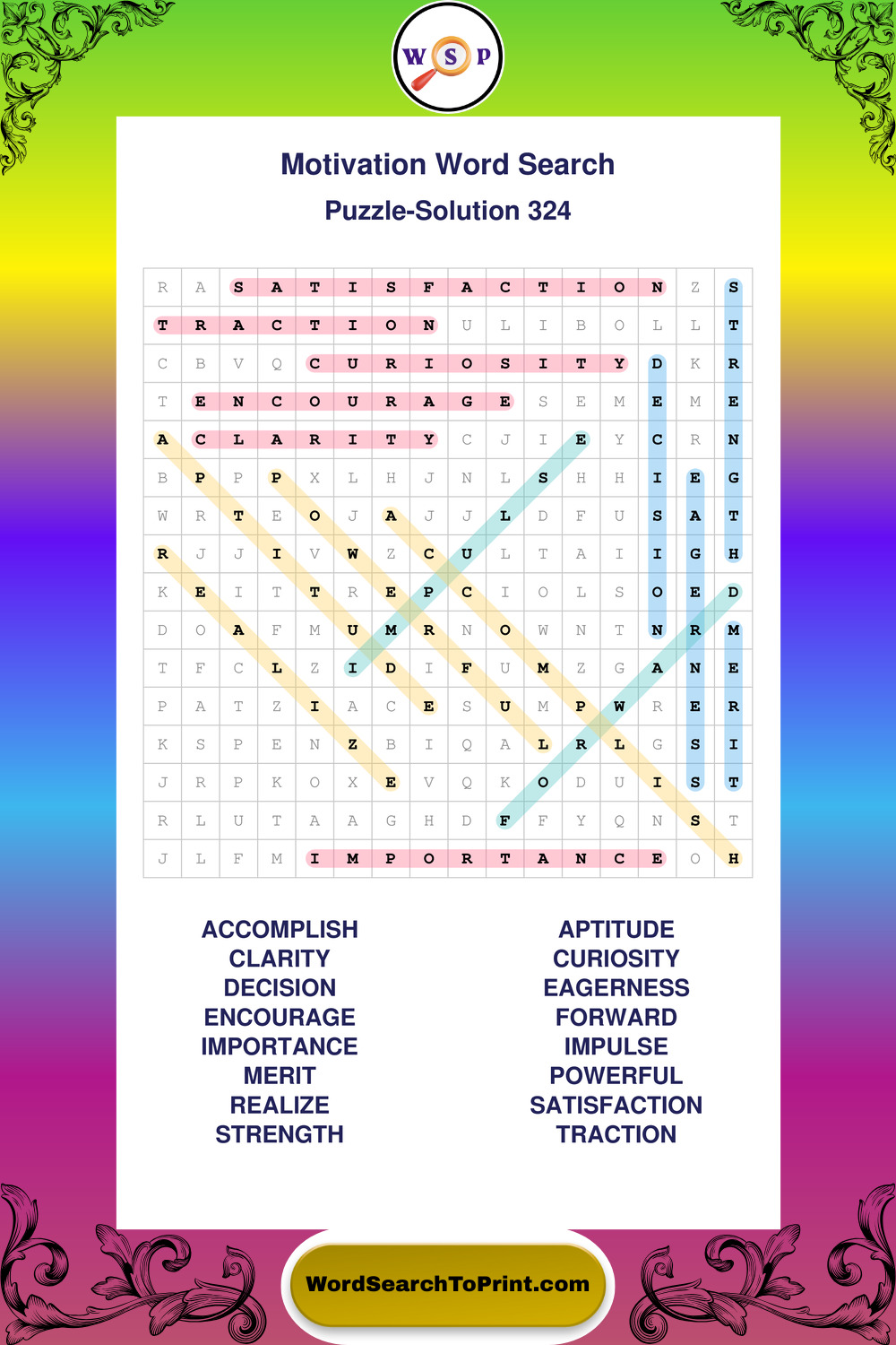 Printable Motivation Wordsearch Puzzles