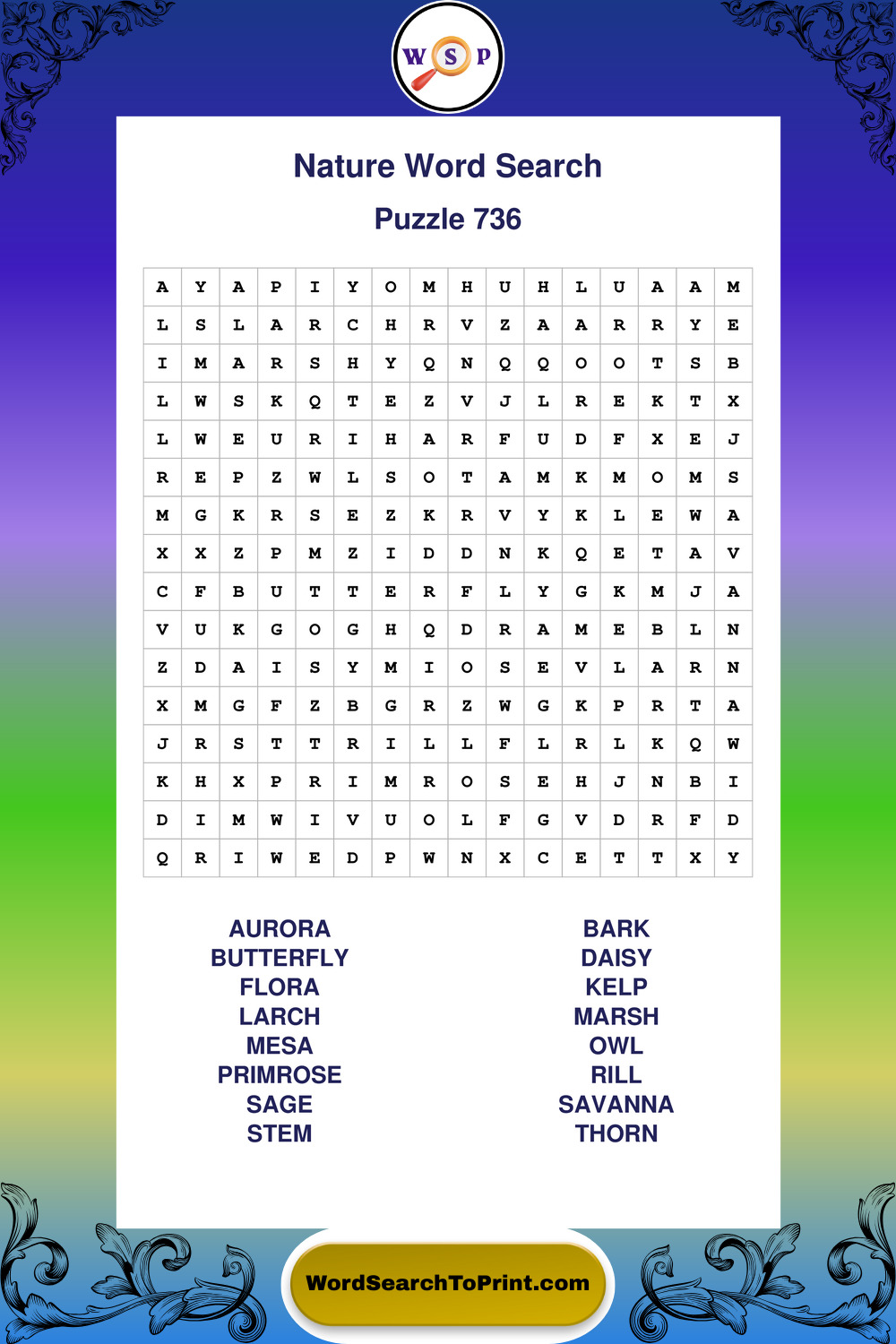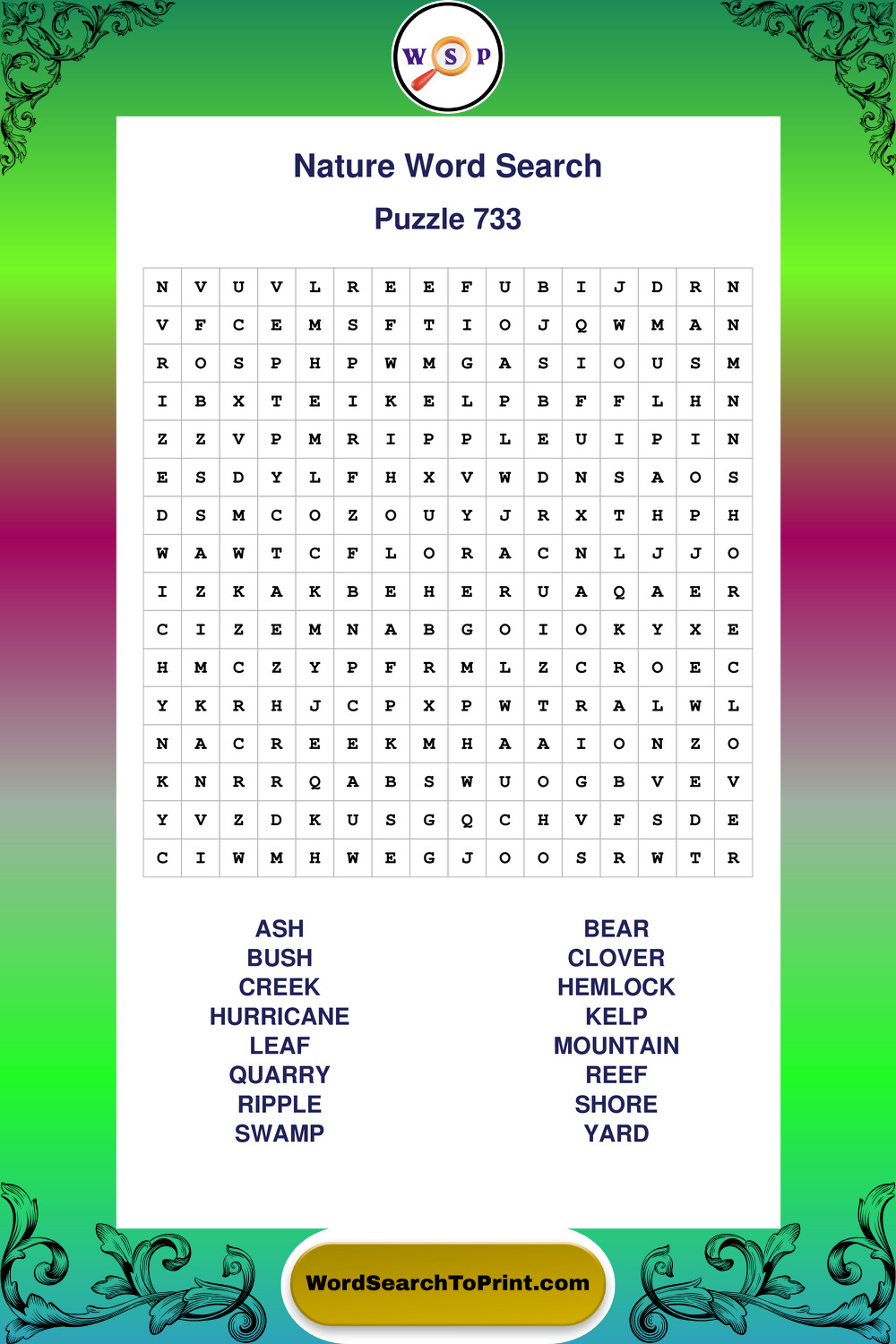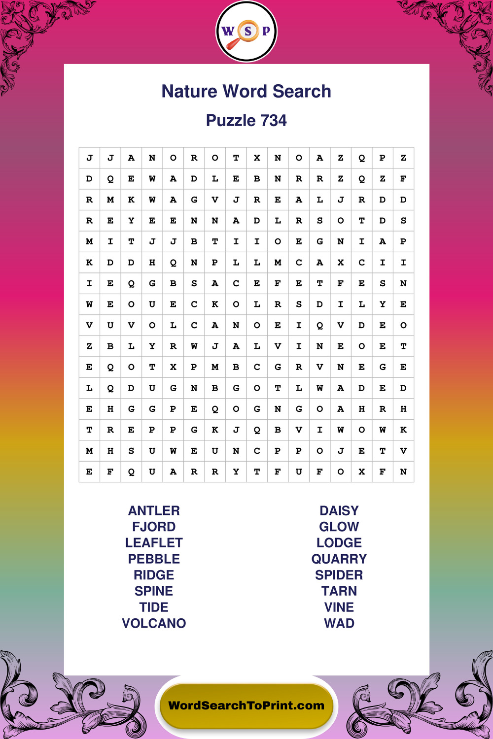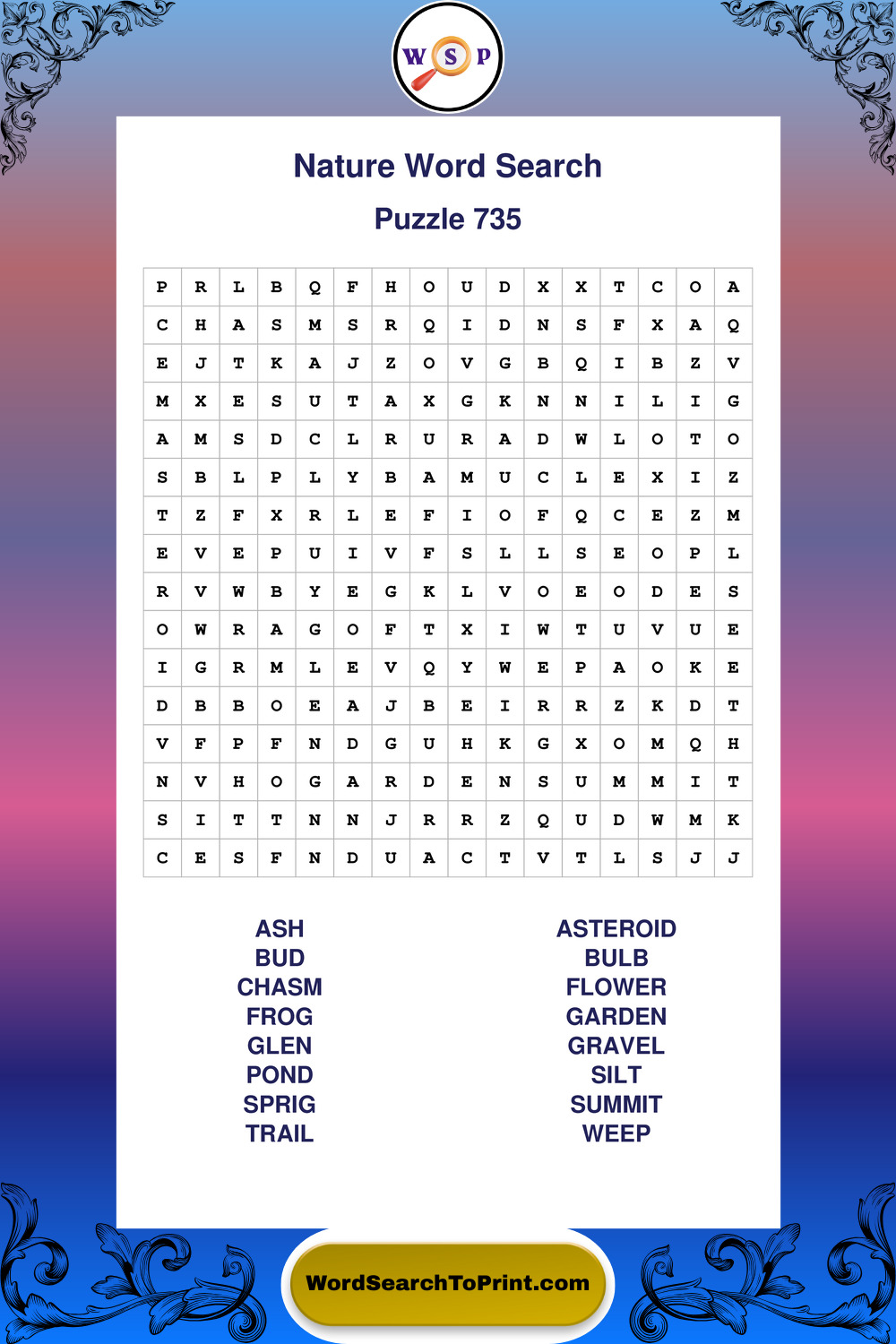 Find easy-to-read large print Nature wordsearches designed for peaceful focus and simple, enjoyable solving.