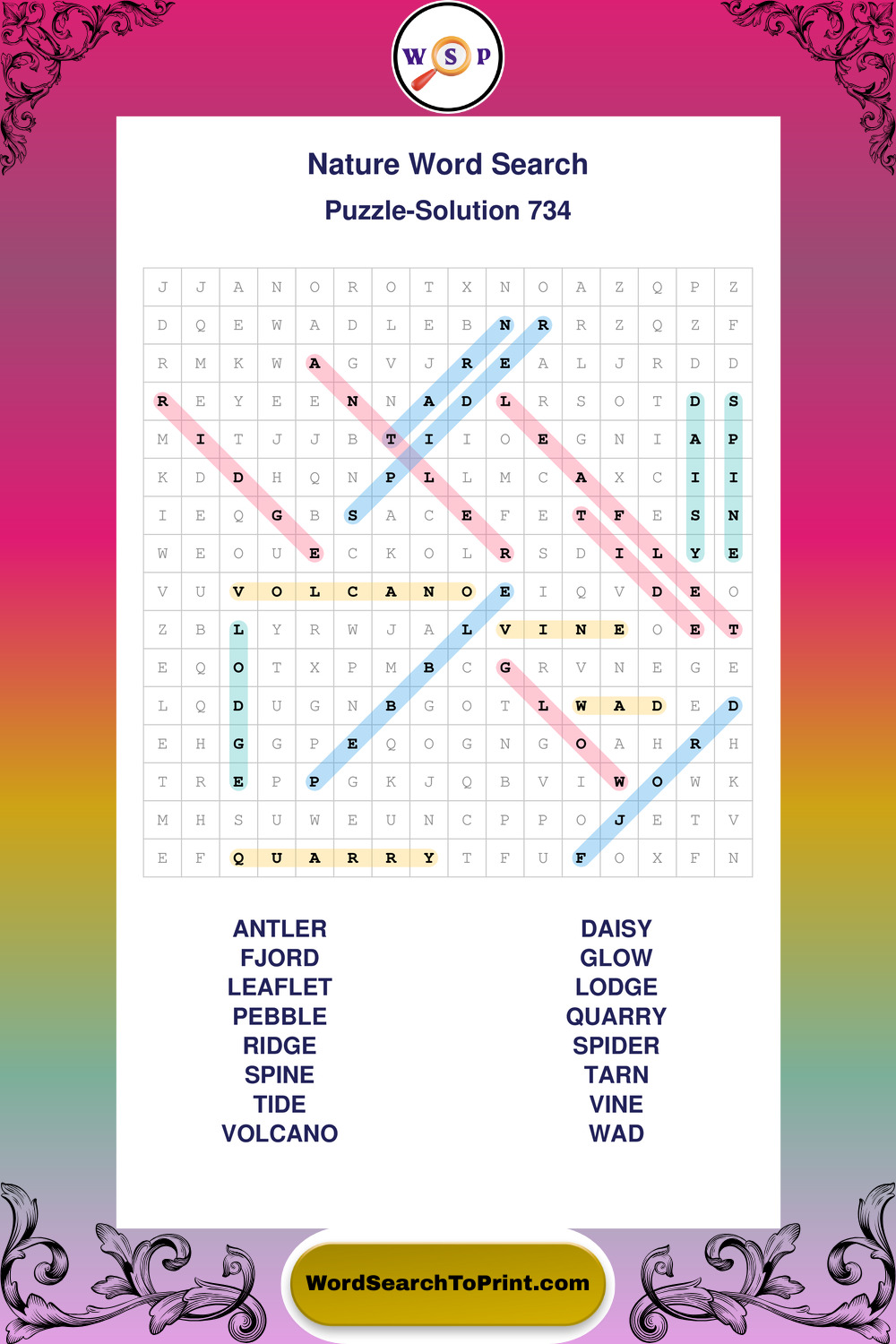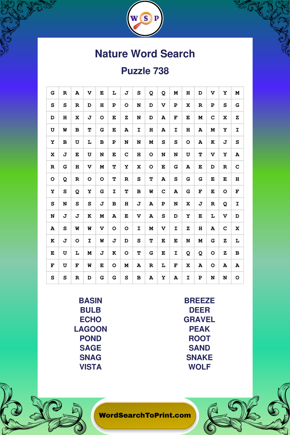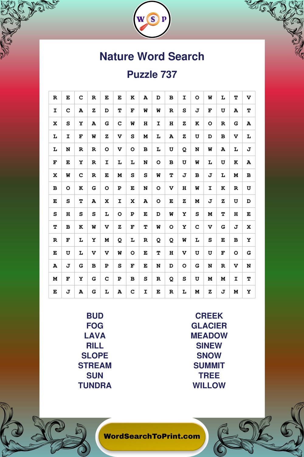 Find easy-to-read large print Nature wordsearches designed for peaceful focus and simple, enjoyable solving.