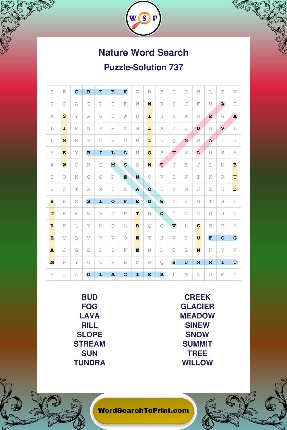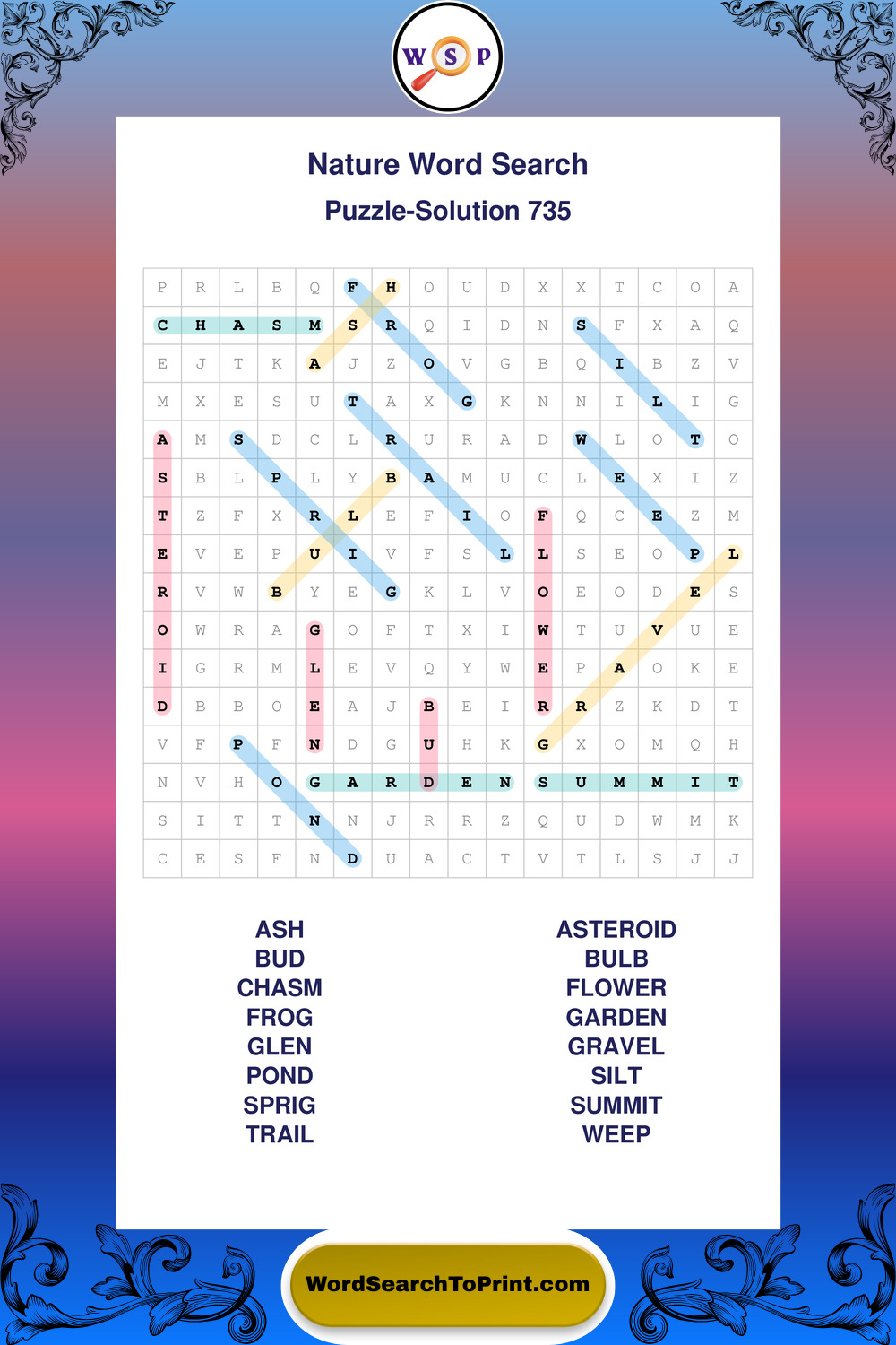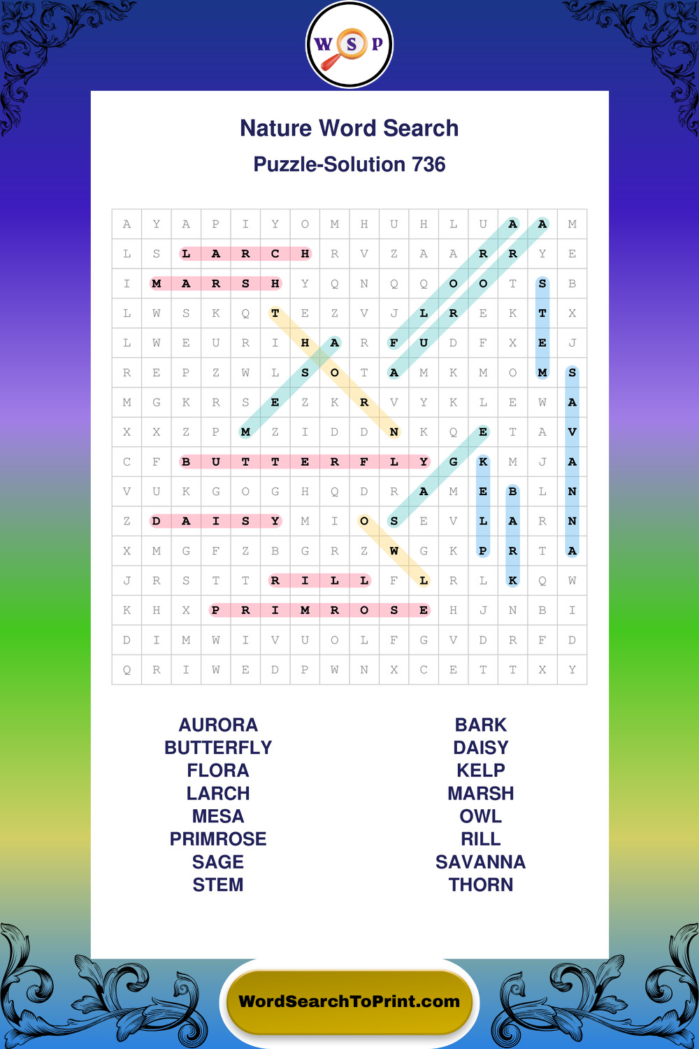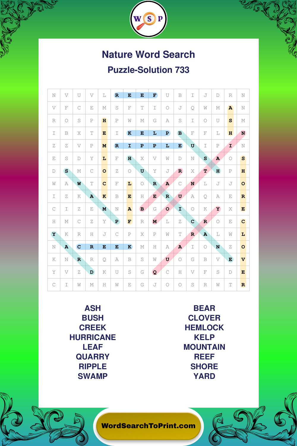 Find easy-to-read large print Nature wordsearches designed for peaceful focus and simple, enjoyable solving.