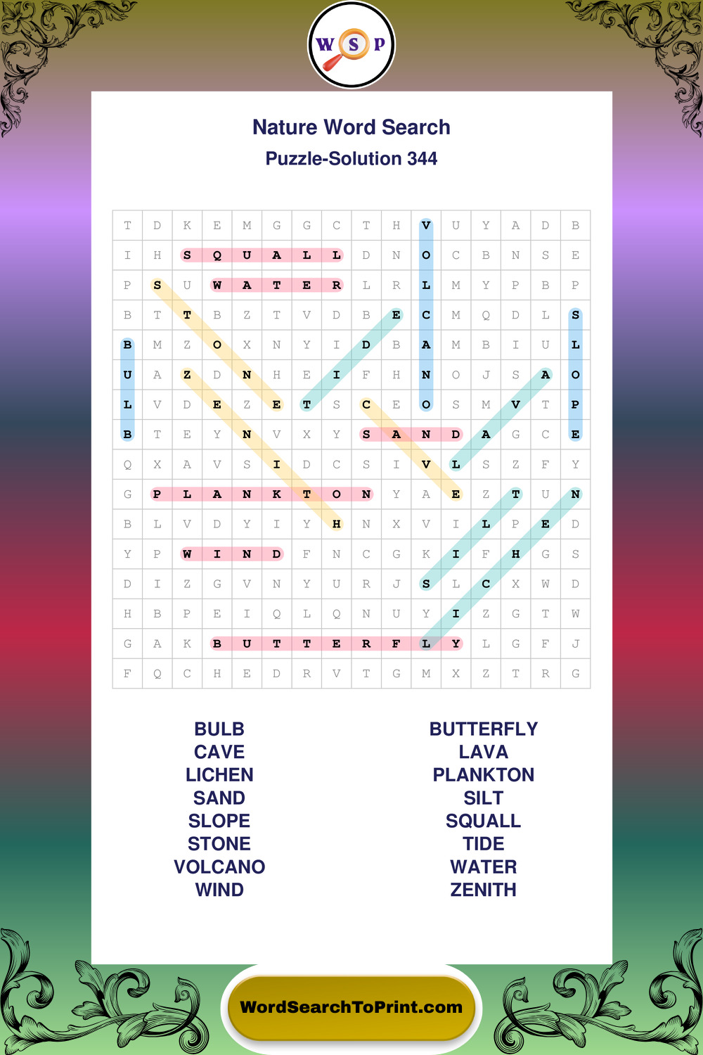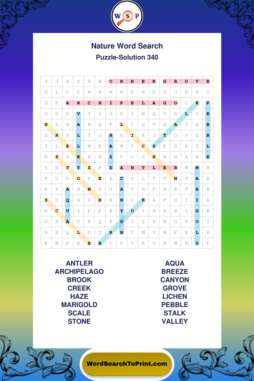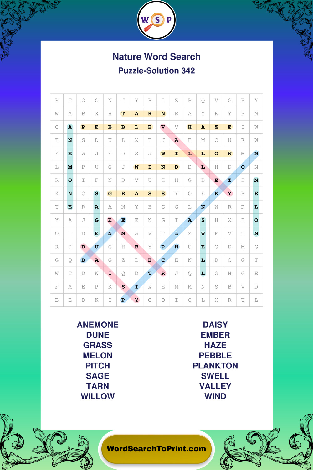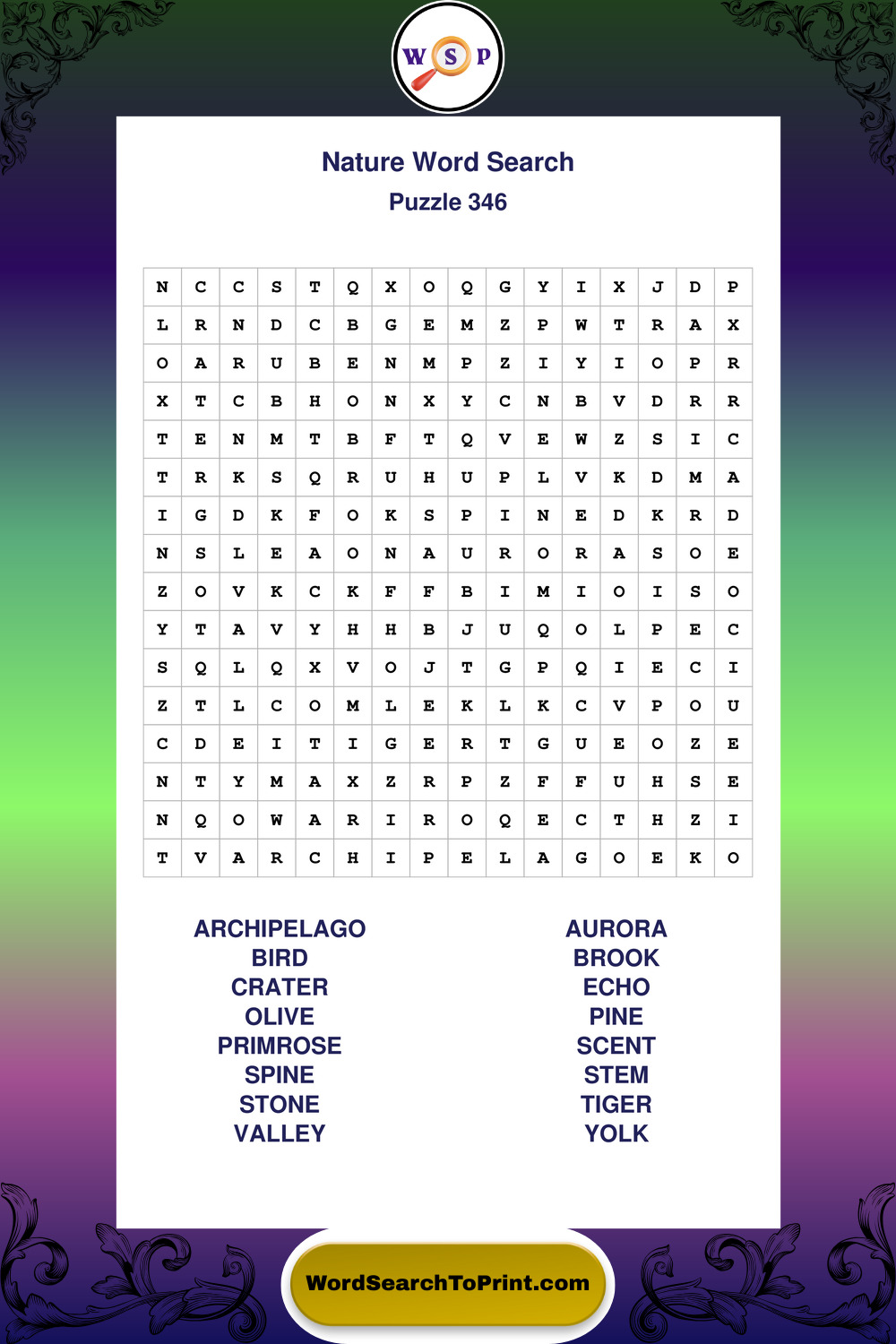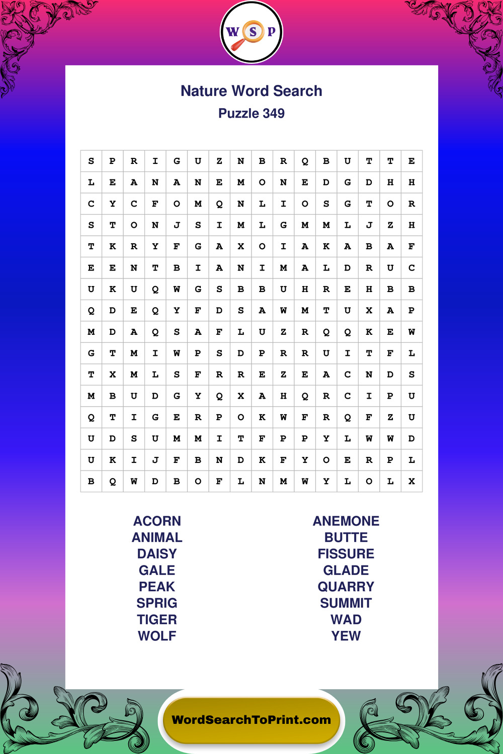 Find easy-to-read large print Nature wordsearches designed for peaceful focus and simple, enjoyable solving.