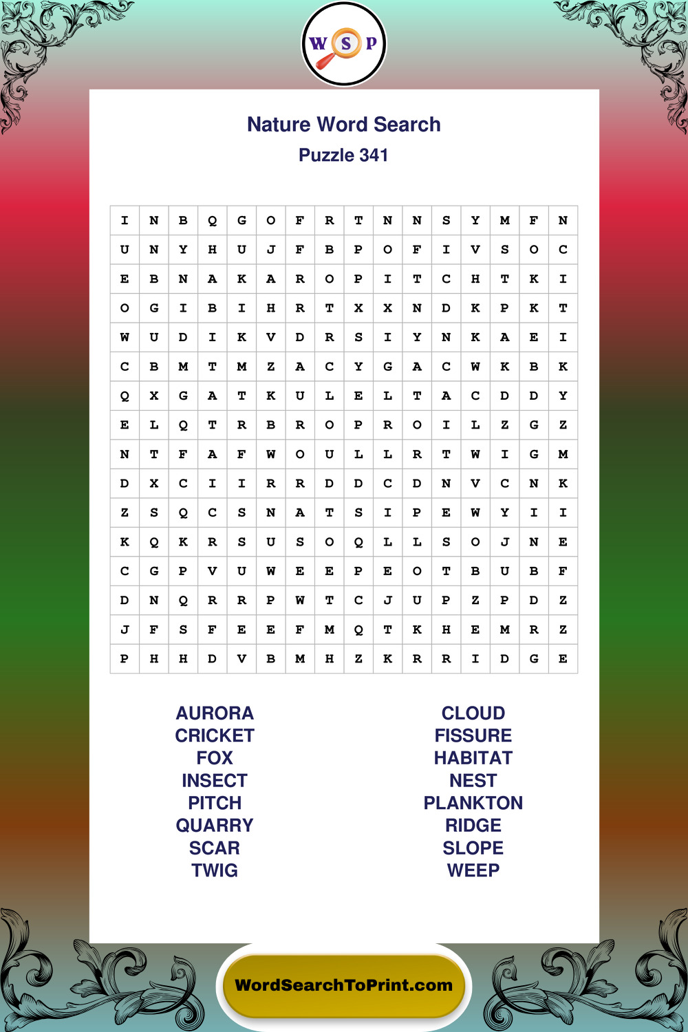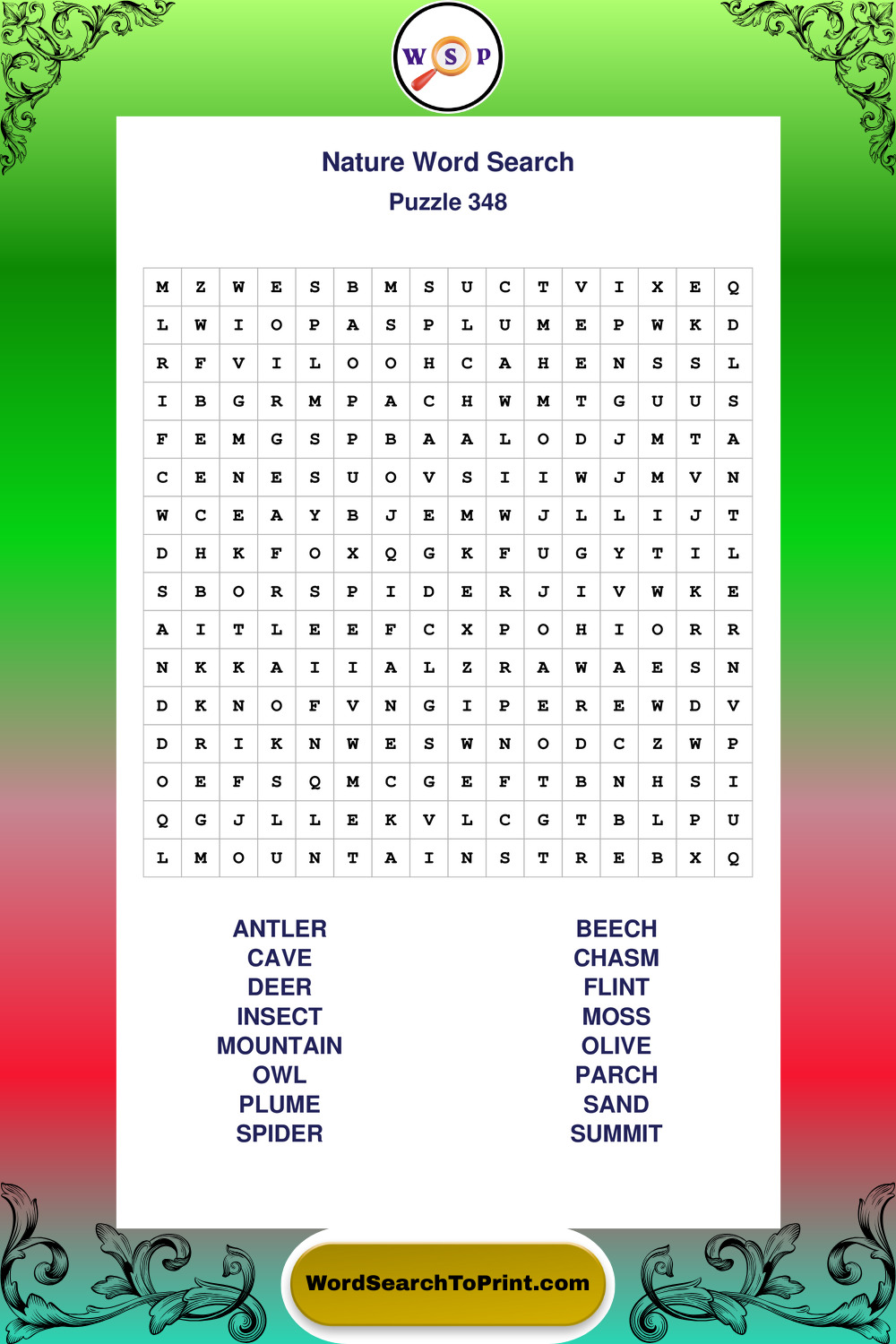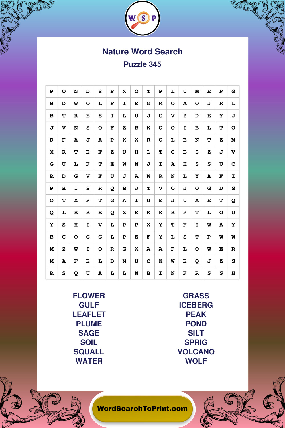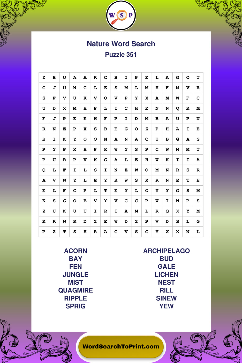 Printable Nature Wordsearch Puzzles