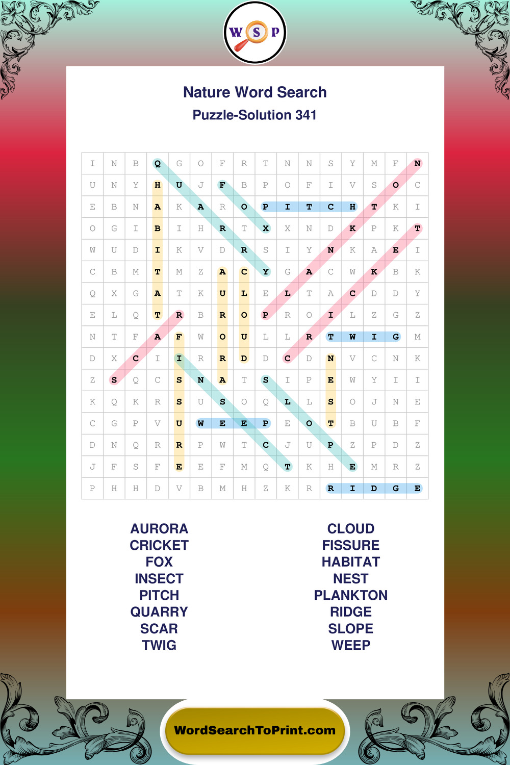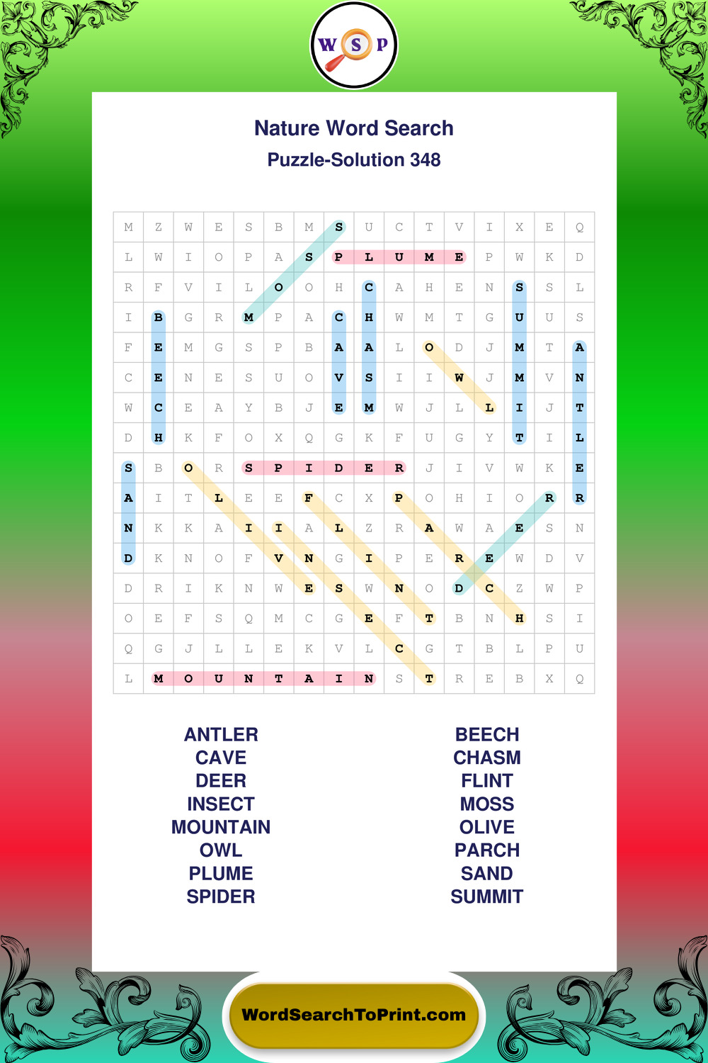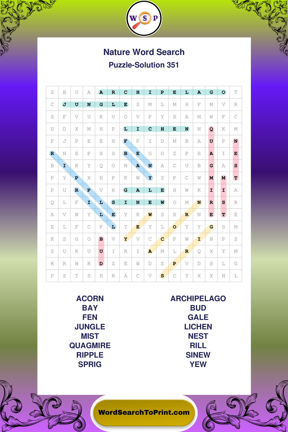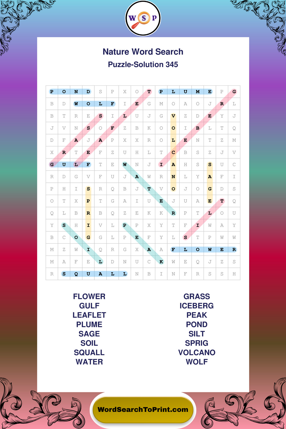 Printable Nature Wordsearch Puzzles
