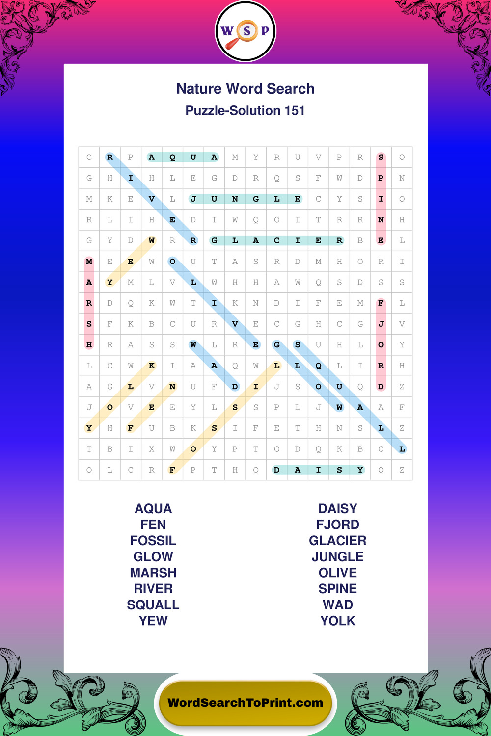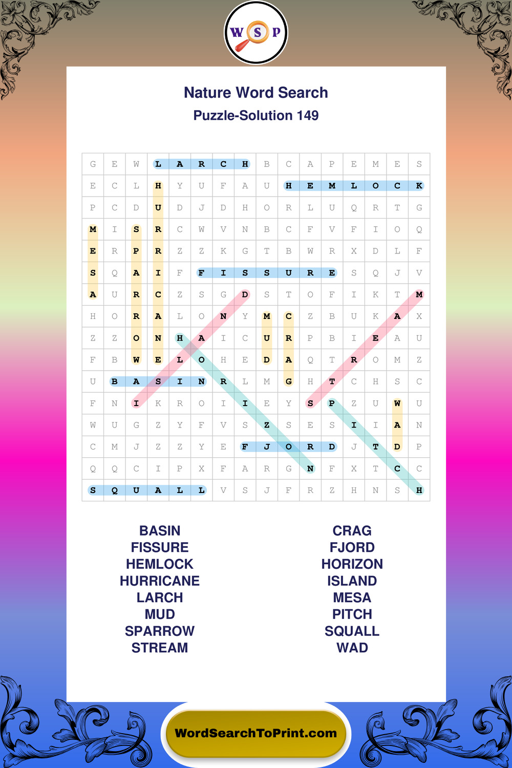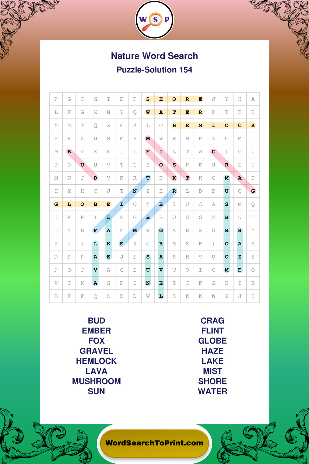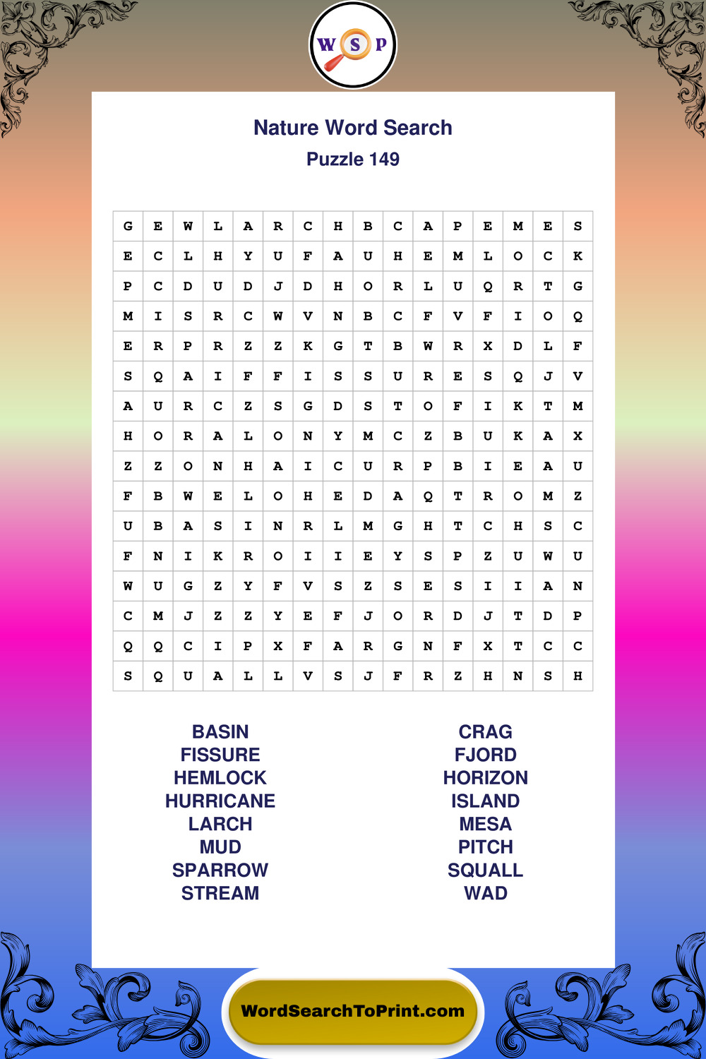 Printable Nature Wordsearch Puzzles