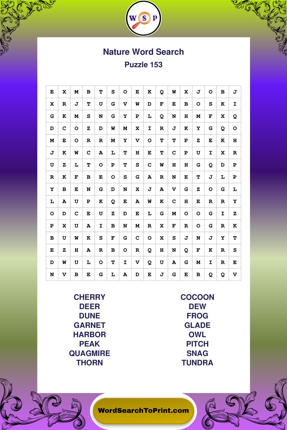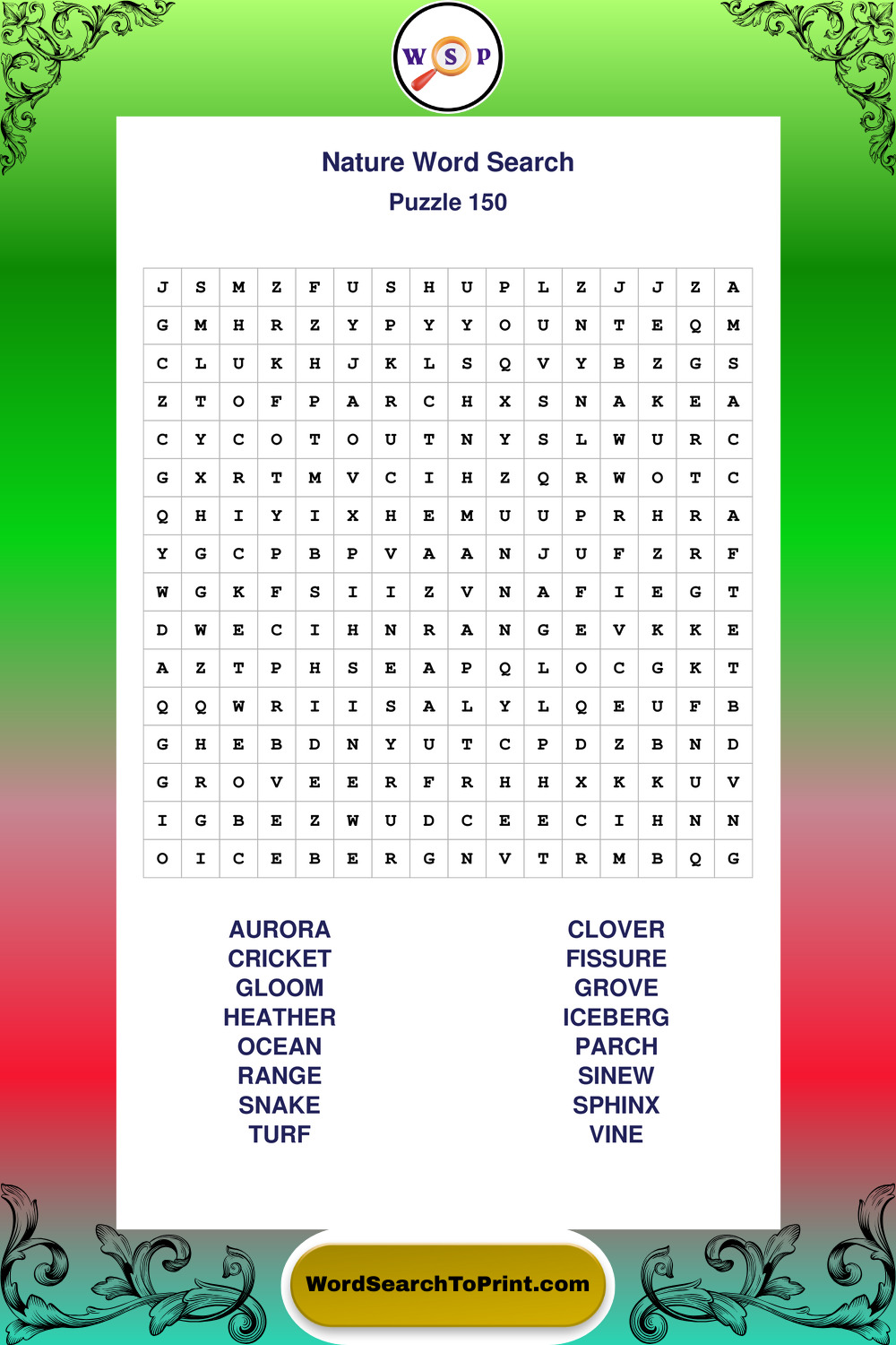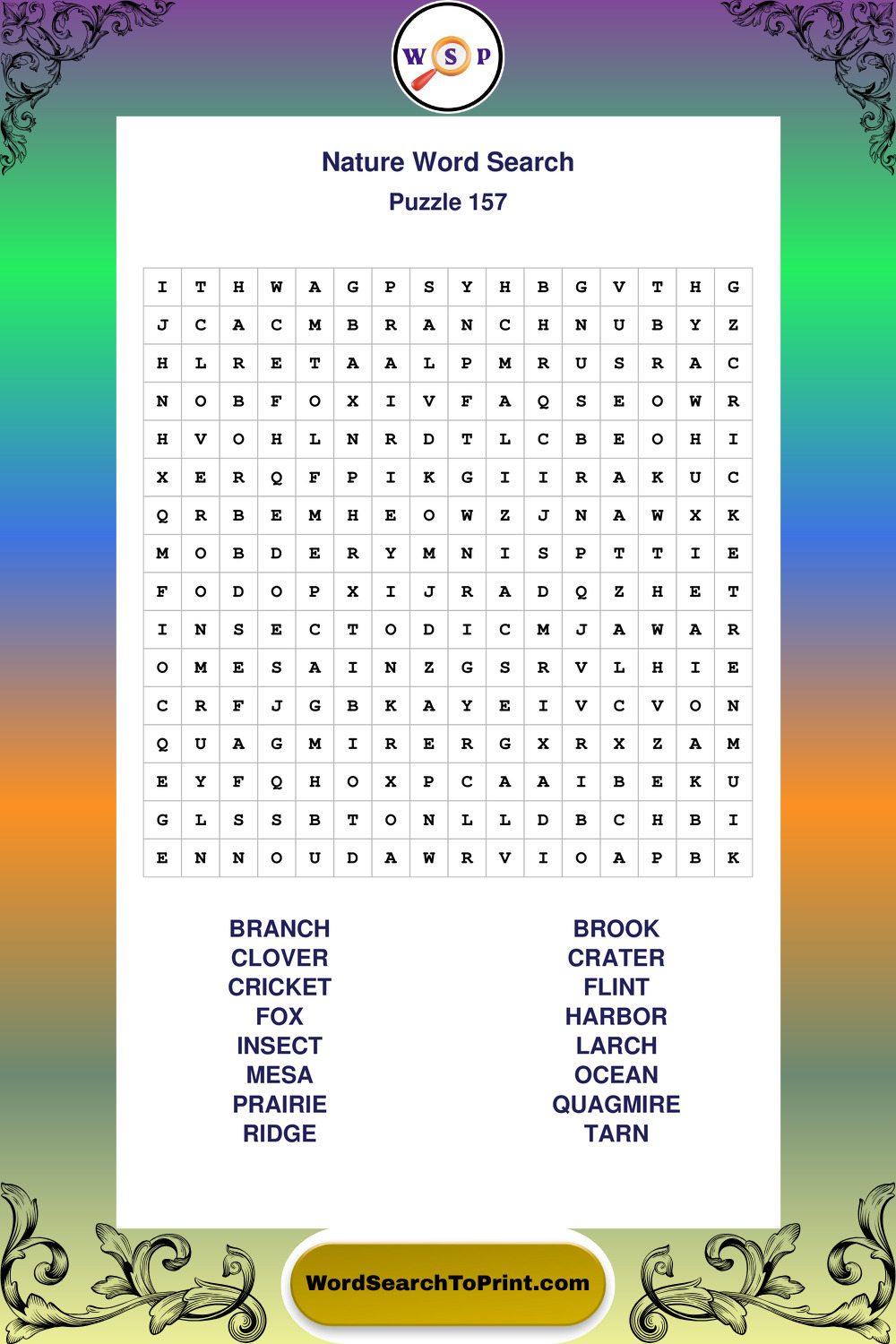 Find easy-to-read large print Nature wordsearches designed for peaceful focus and simple, enjoyable solving.