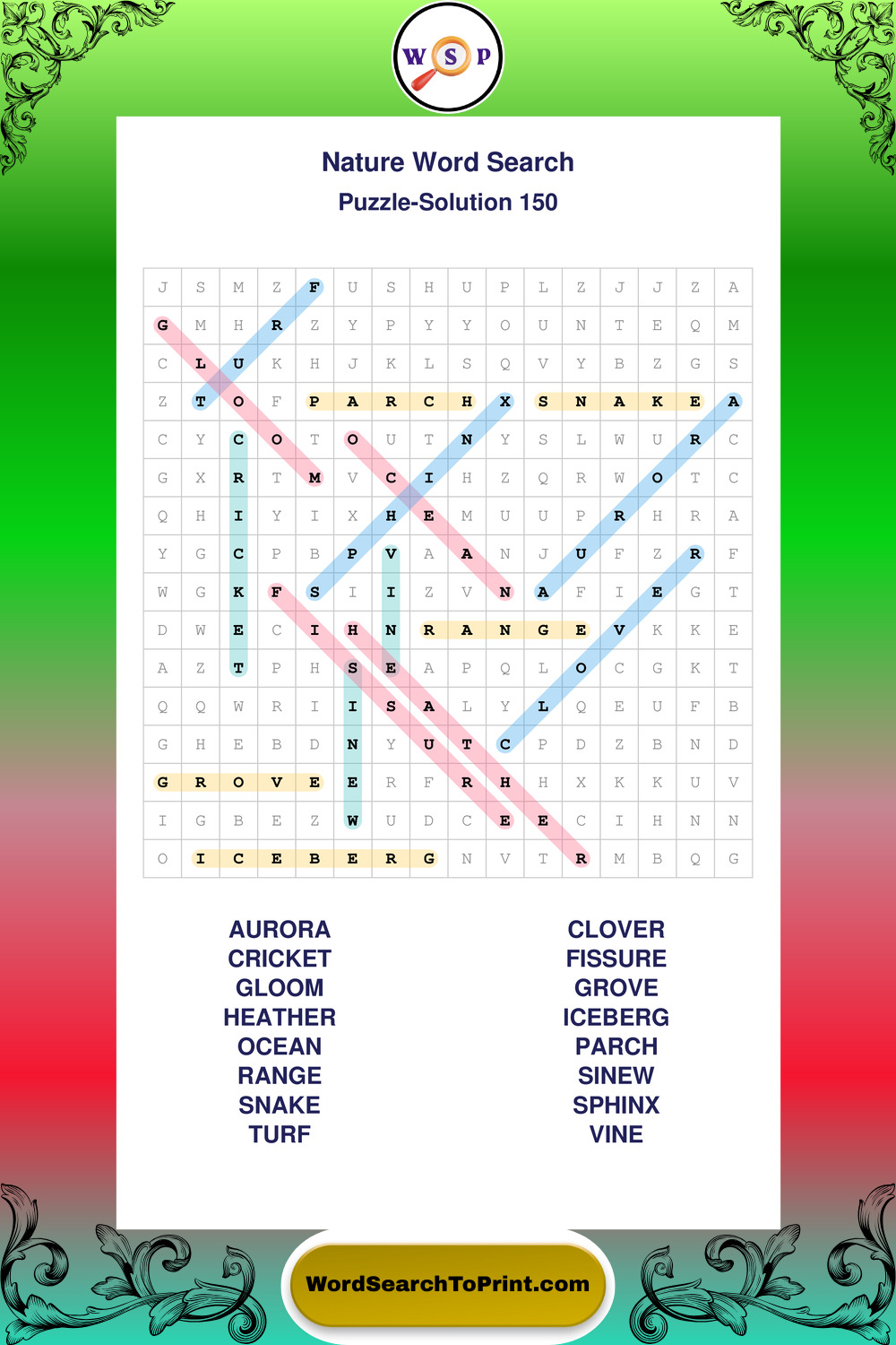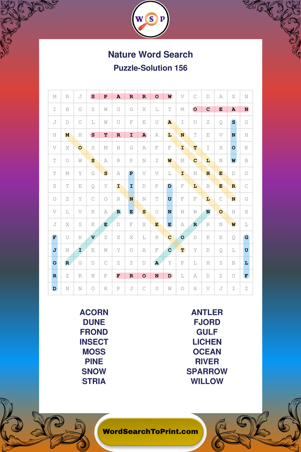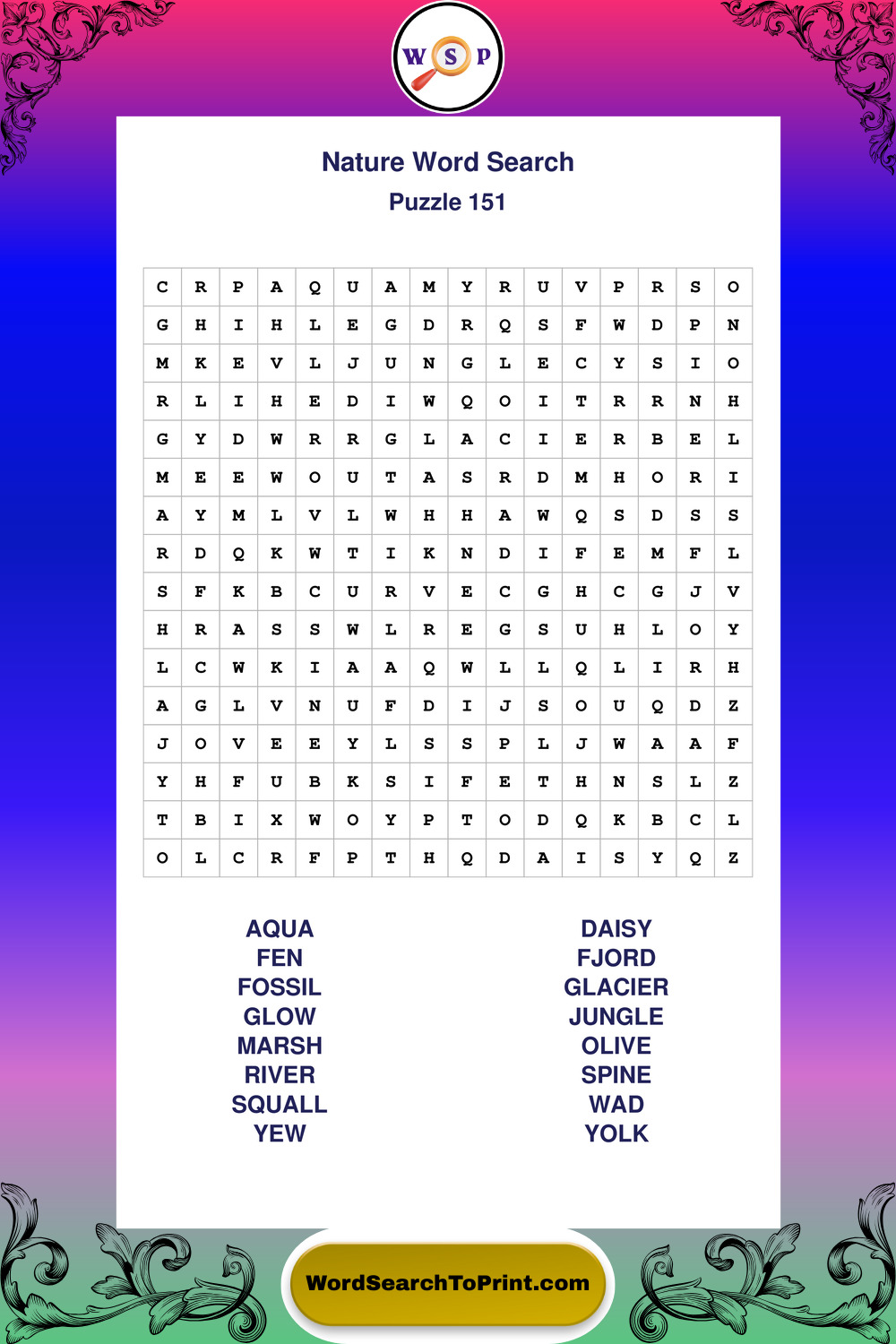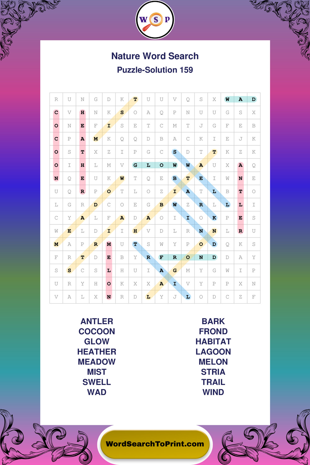 Find easy-to-read large print Nature wordsearches designed for peaceful focus and simple, enjoyable solving.