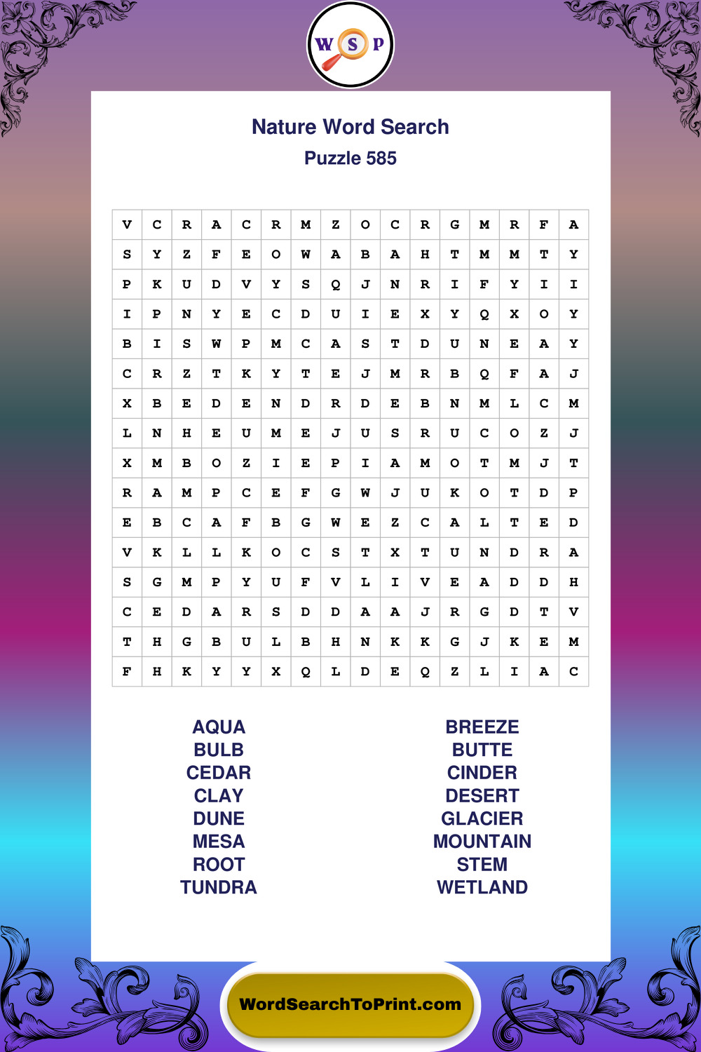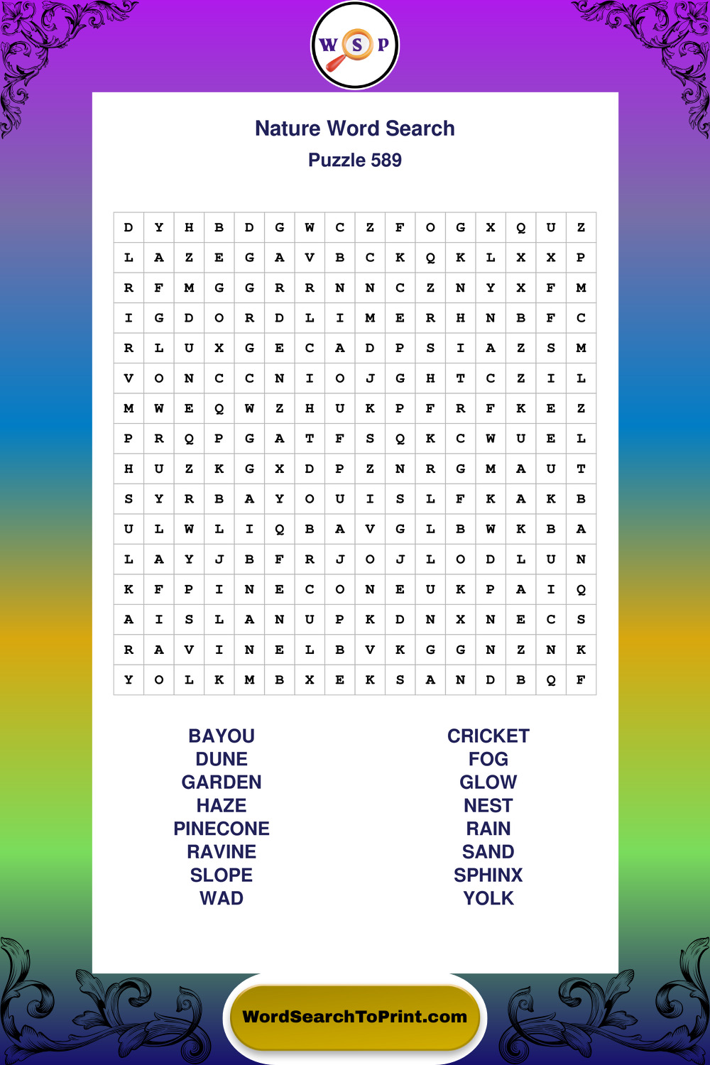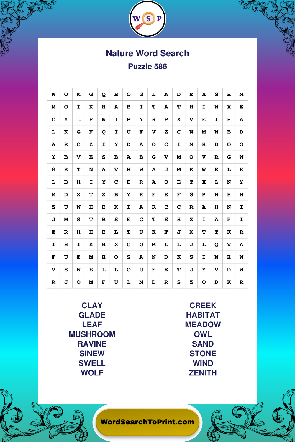 Find easy-to-read large print Nature wordsearches designed for peaceful focus and simple, enjoyable solving.
