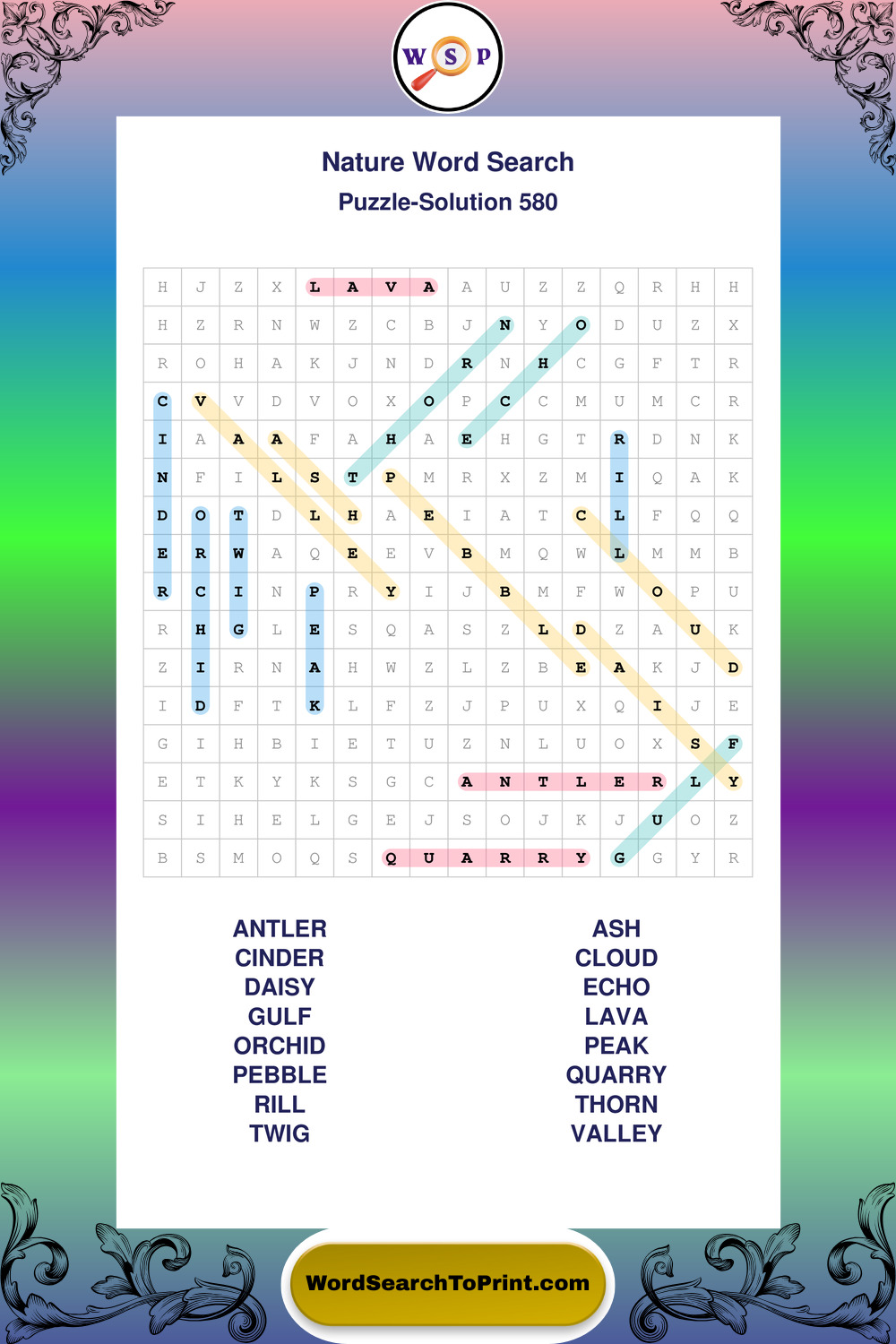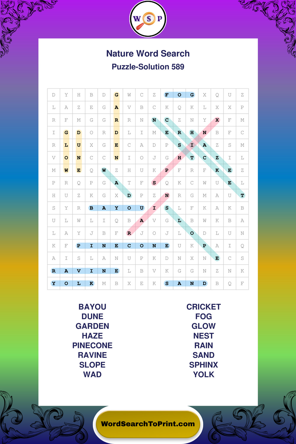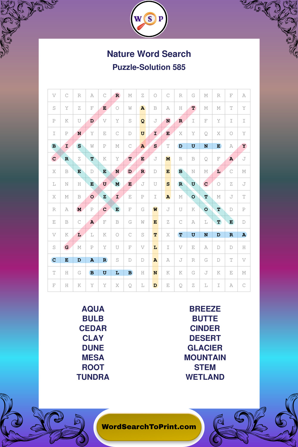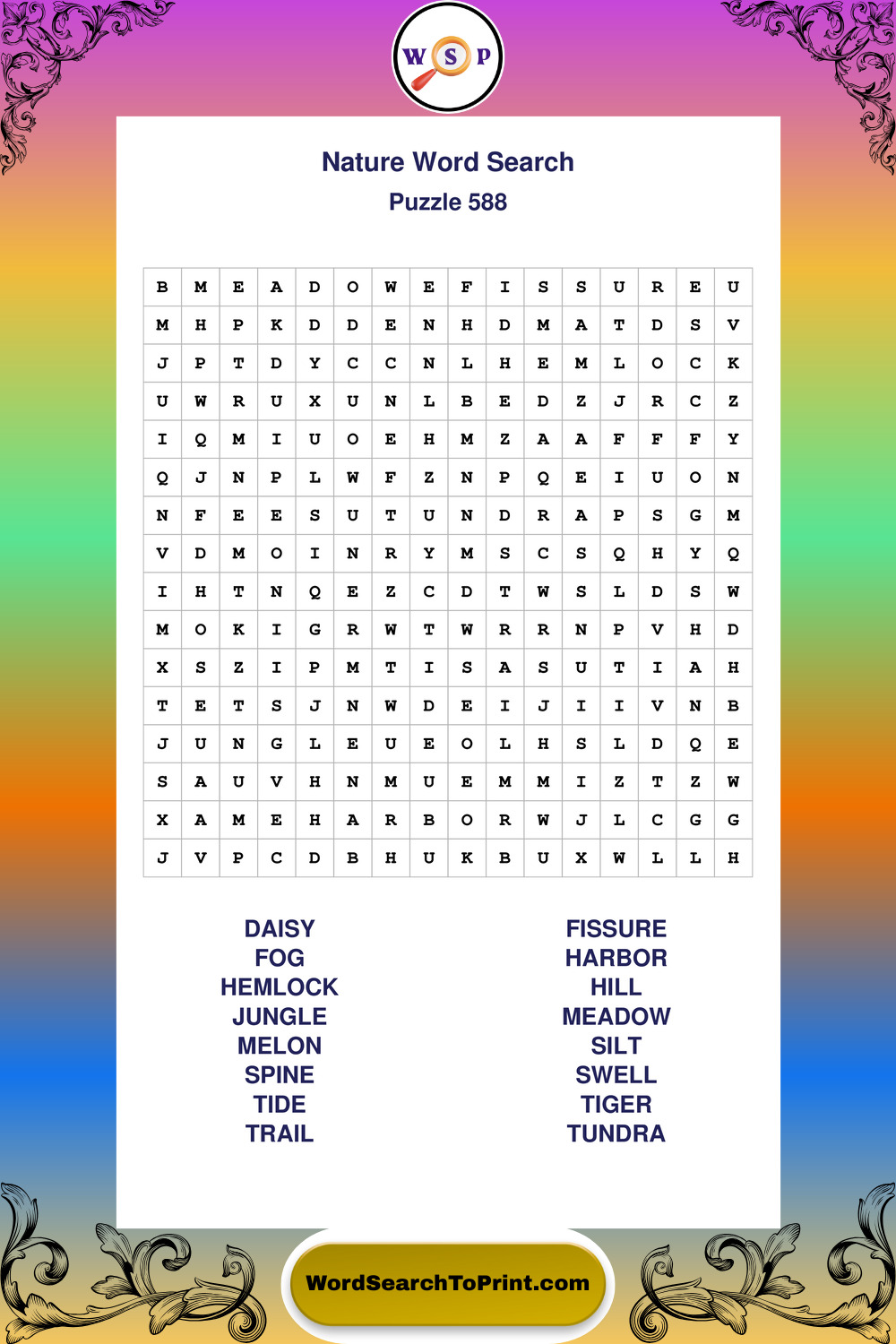 Find easy-to-read large print Nature wordsearches designed for peaceful focus and simple, enjoyable solving.