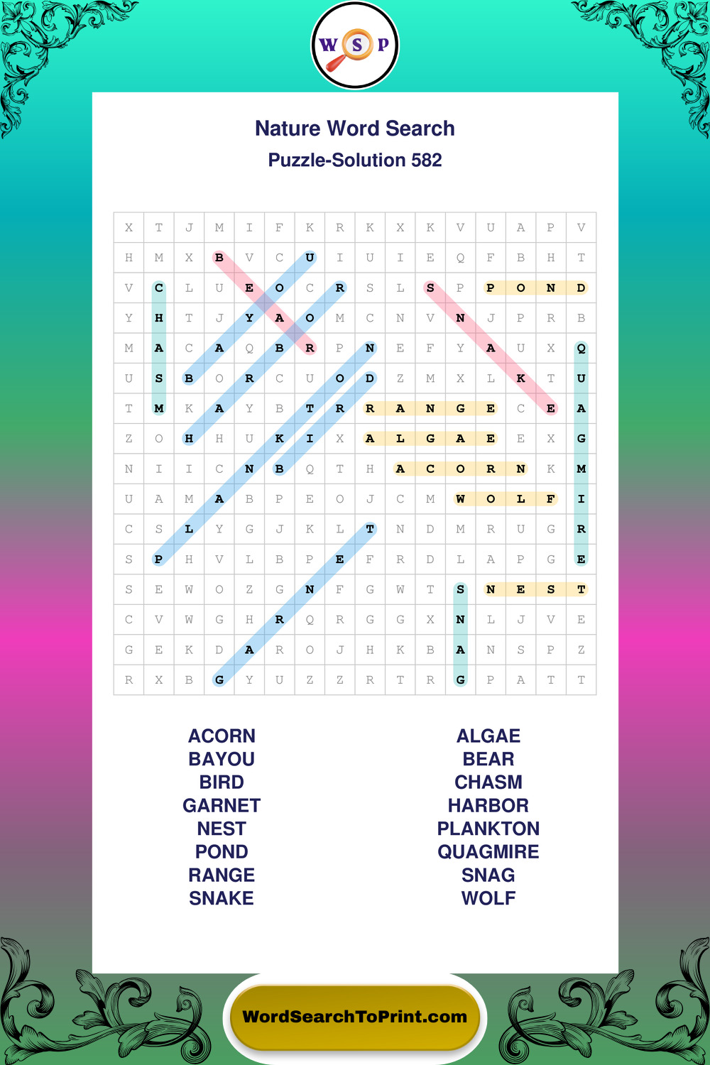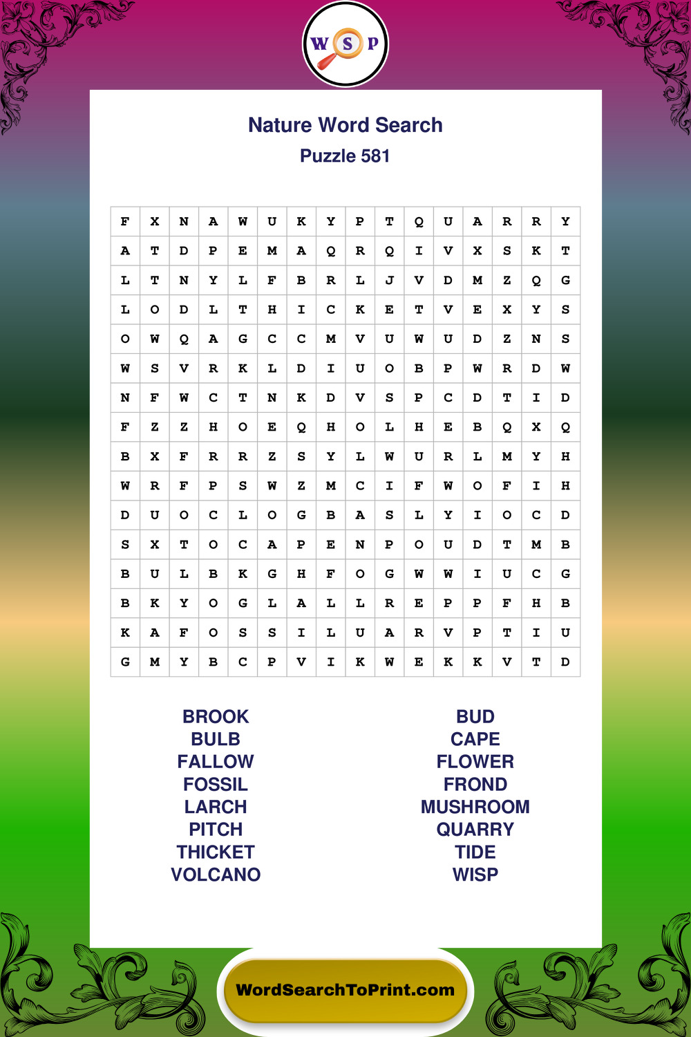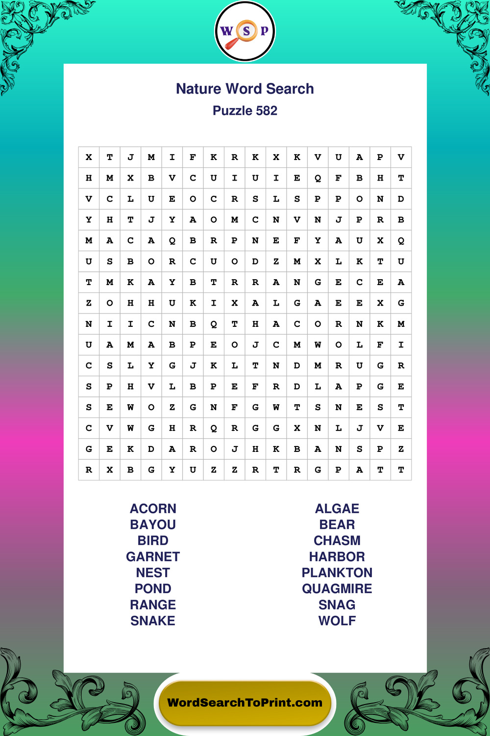Printable Nature Wordsearch Puzzles