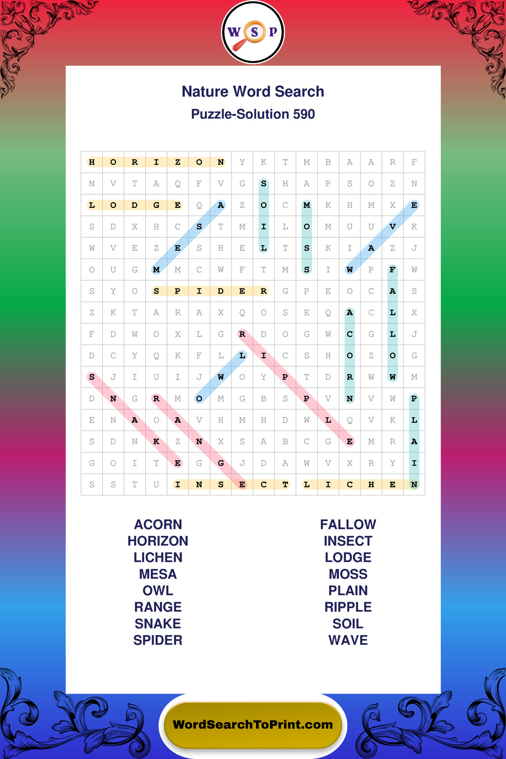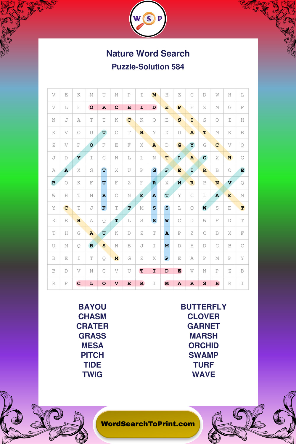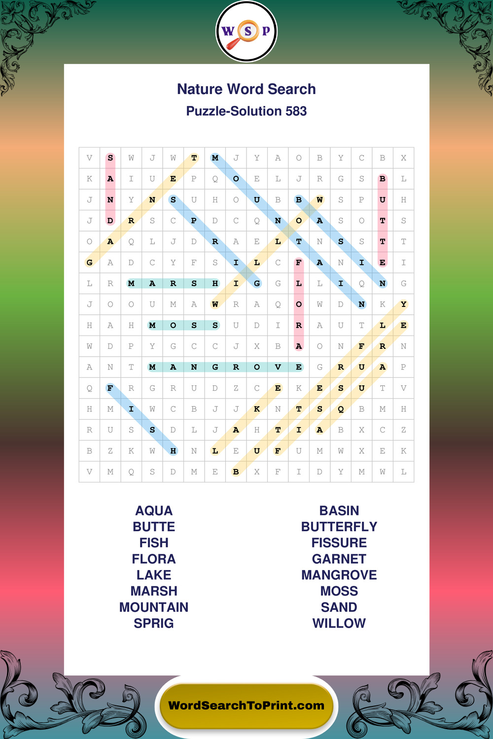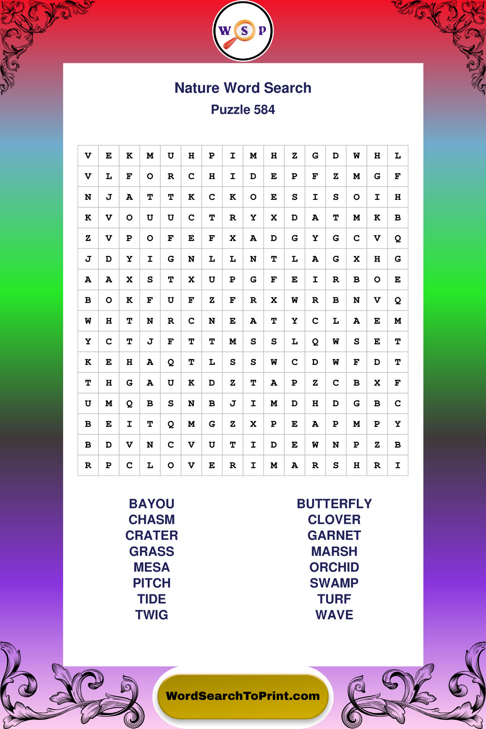 Printable Nature Wordsearch Puzzles