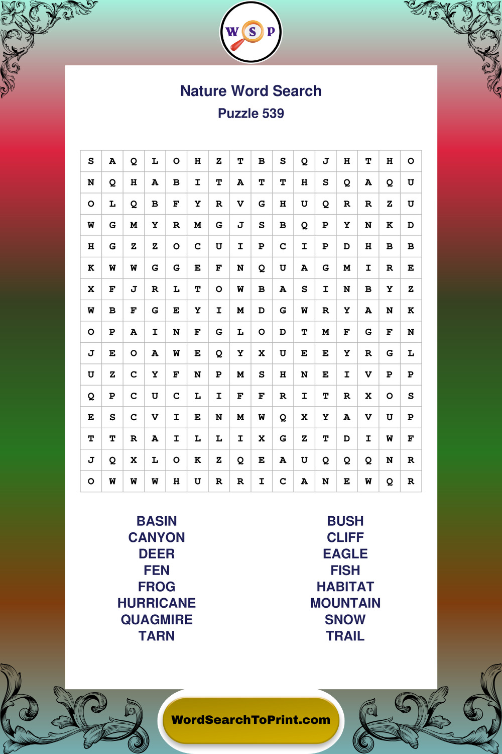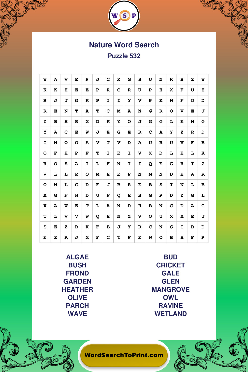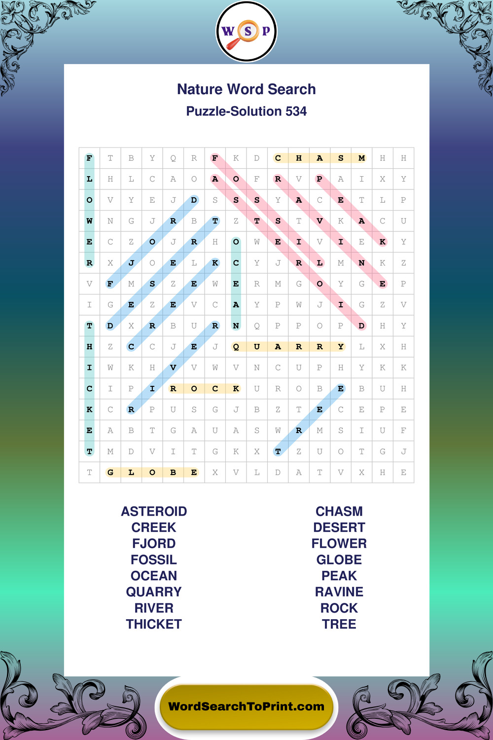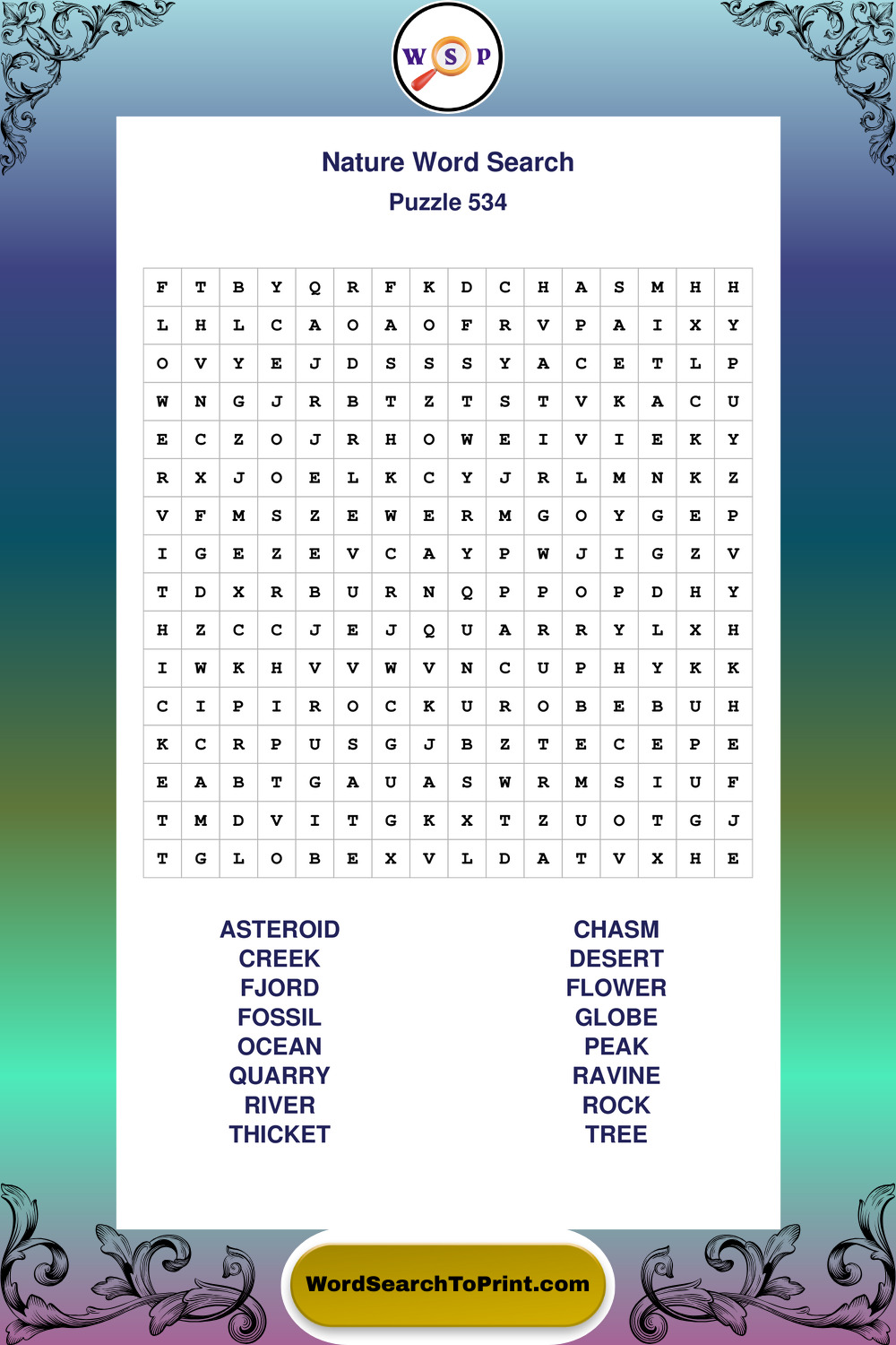 Printable Nature Wordsearch Puzzles