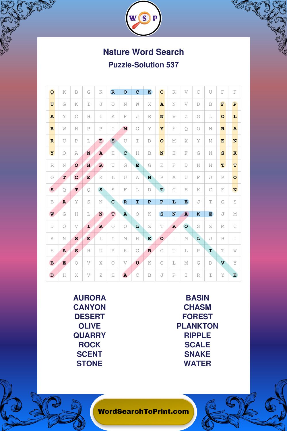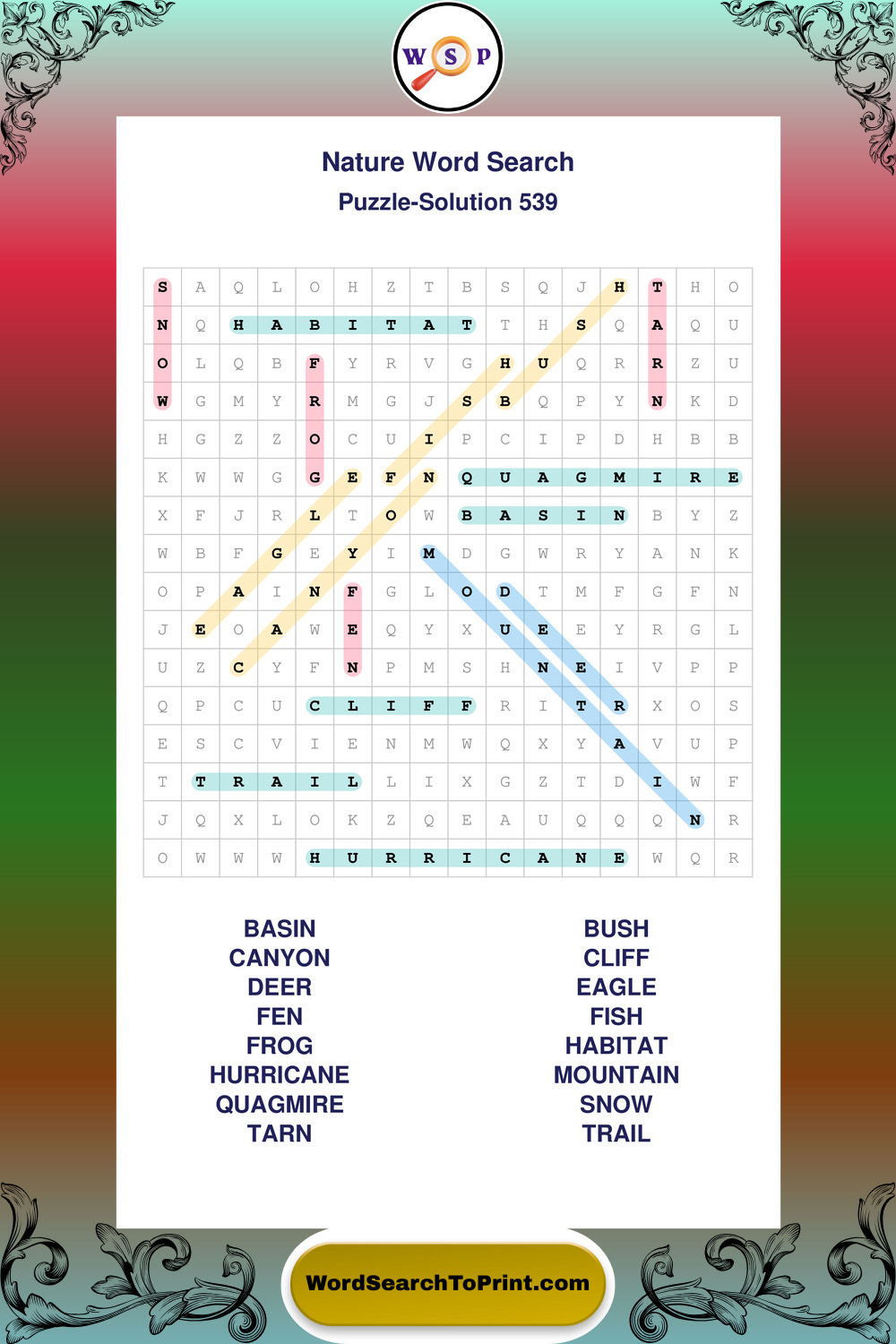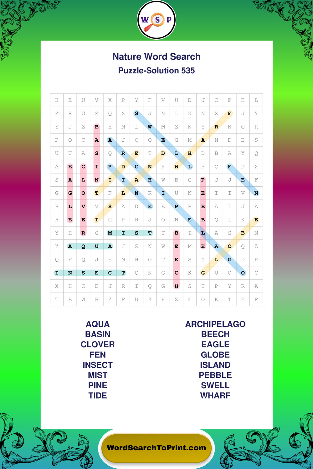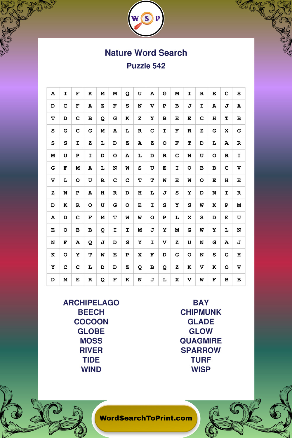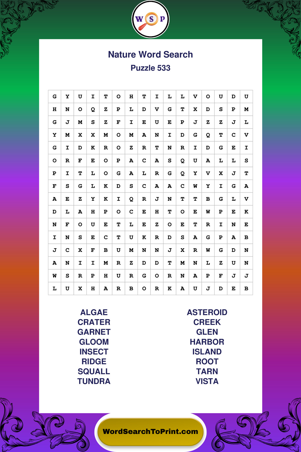 Printable Nature Wordsearch Puzzles