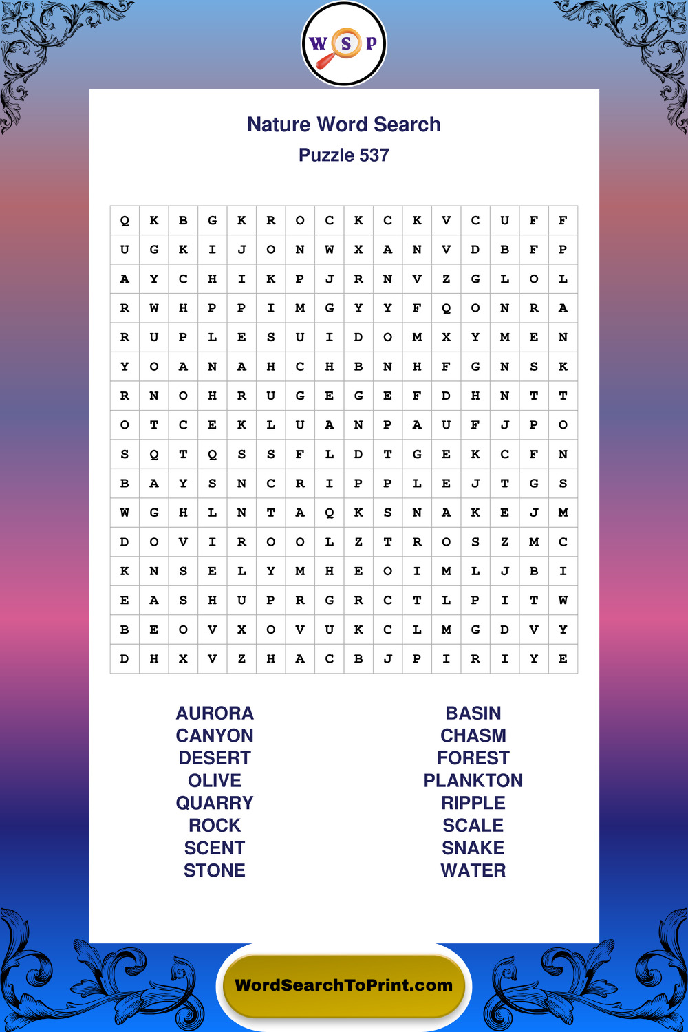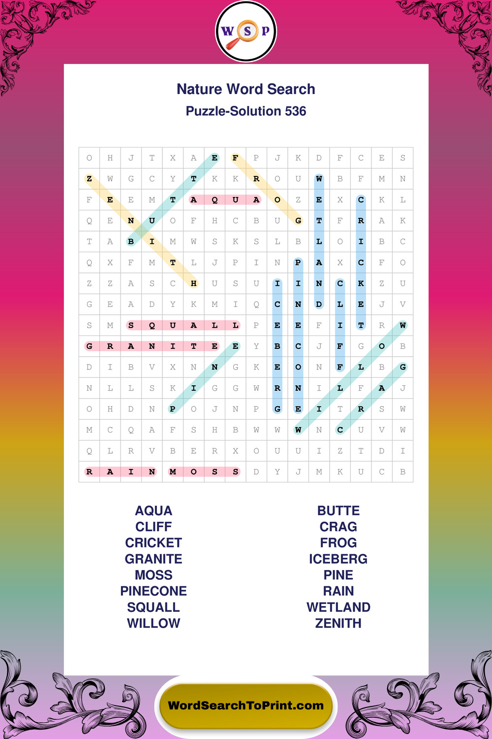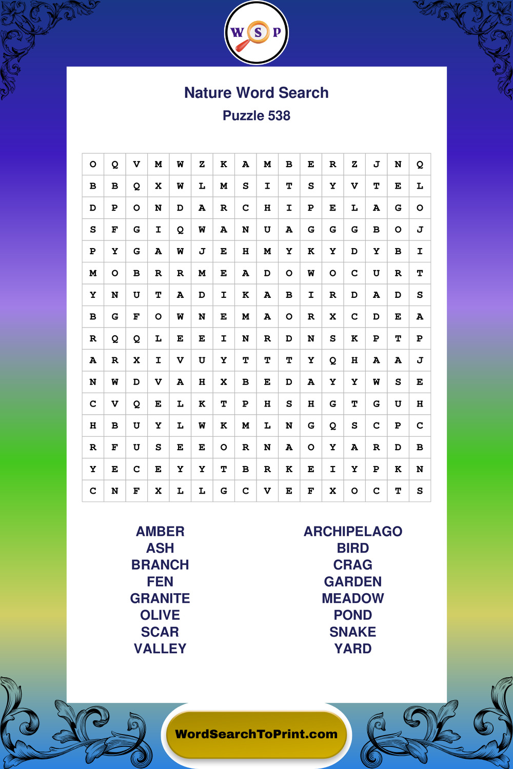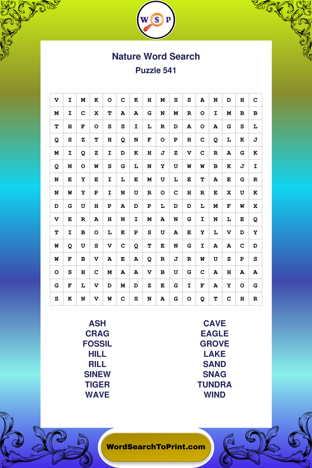 Find easy-to-read large print Nature wordsearches designed for peaceful focus and simple, enjoyable solving.
