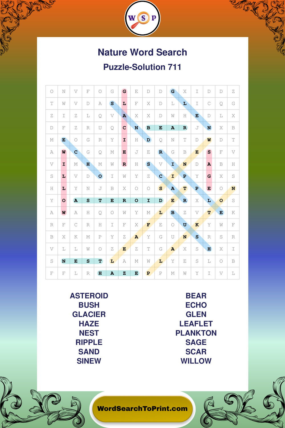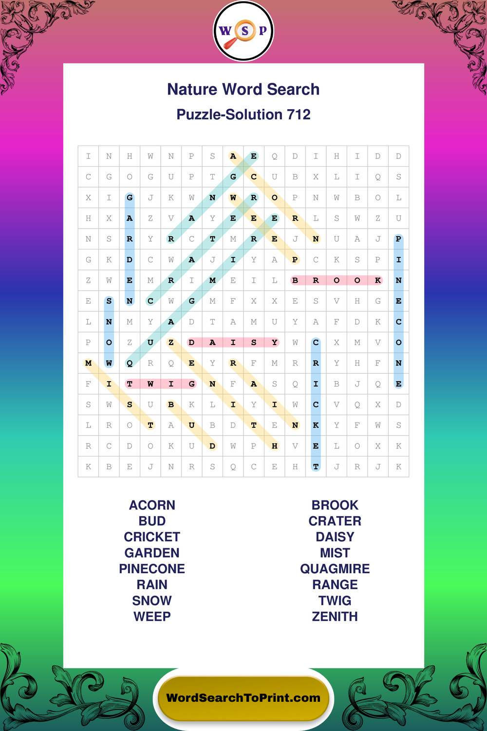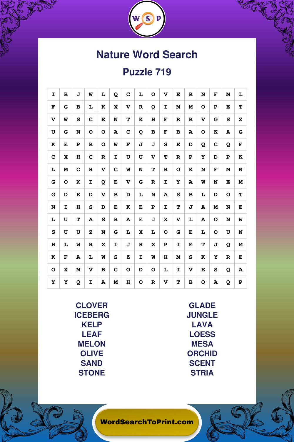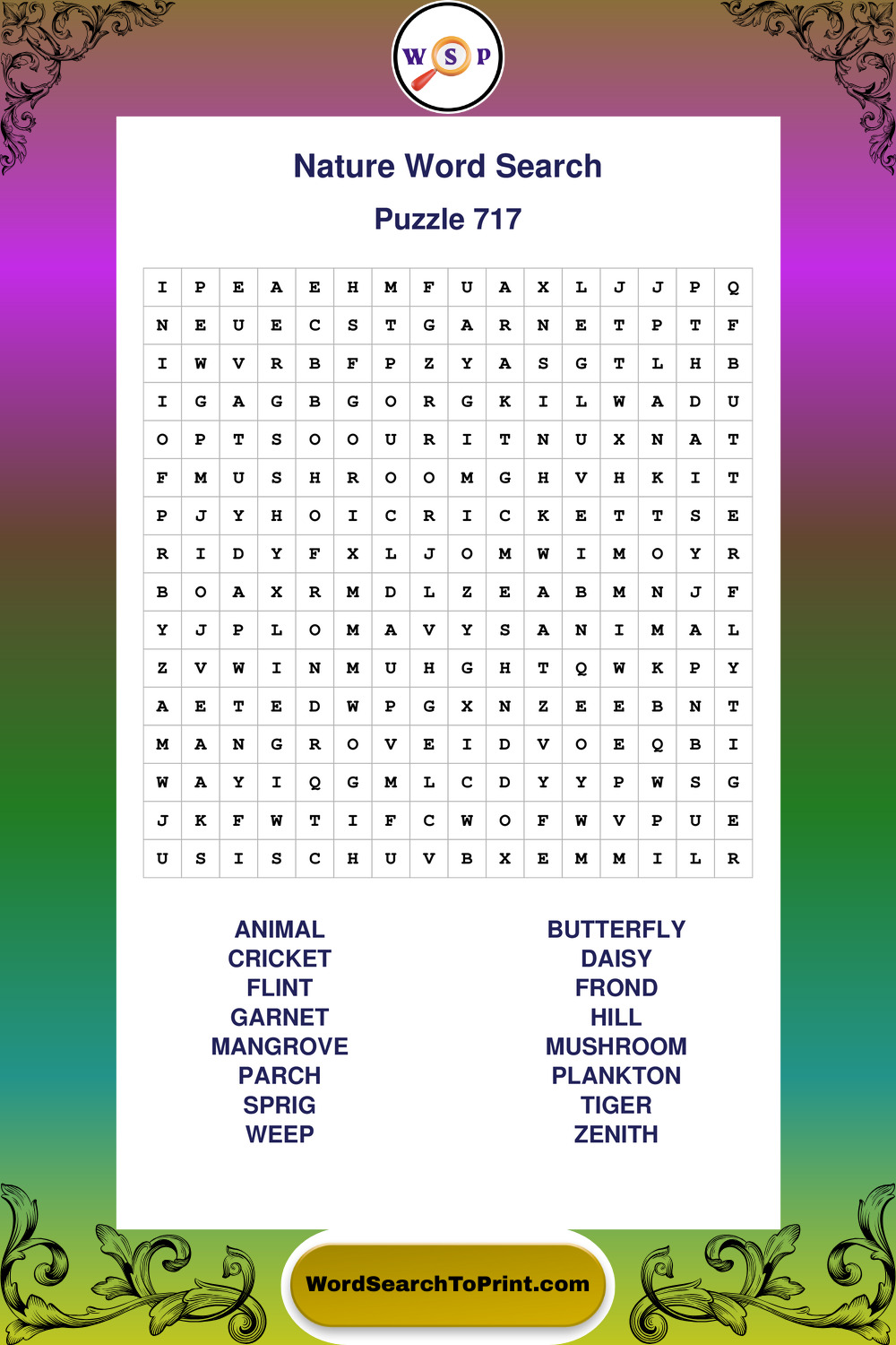 Find easy-to-read large print Nature wordsearches designed for peaceful focus and simple, enjoyable solving.