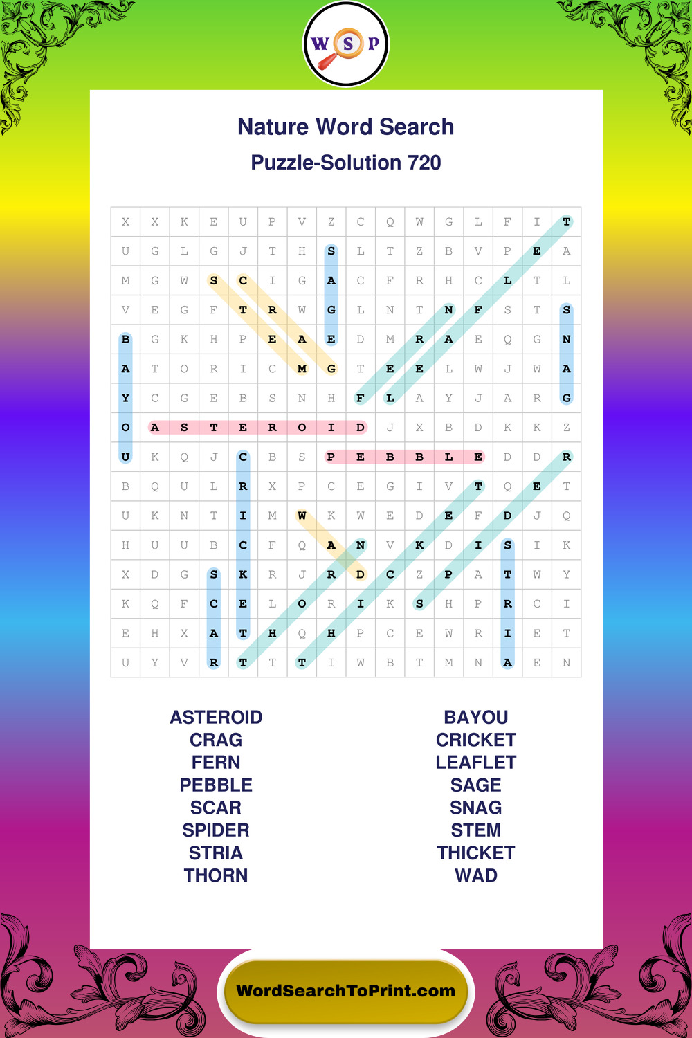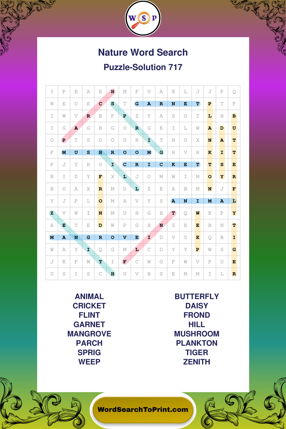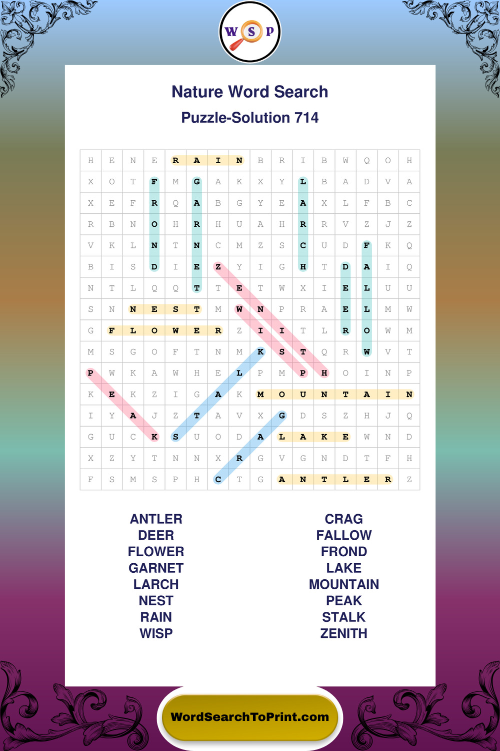 Find easy-to-read large print Nature wordsearches designed for peaceful focus and simple, enjoyable solving.