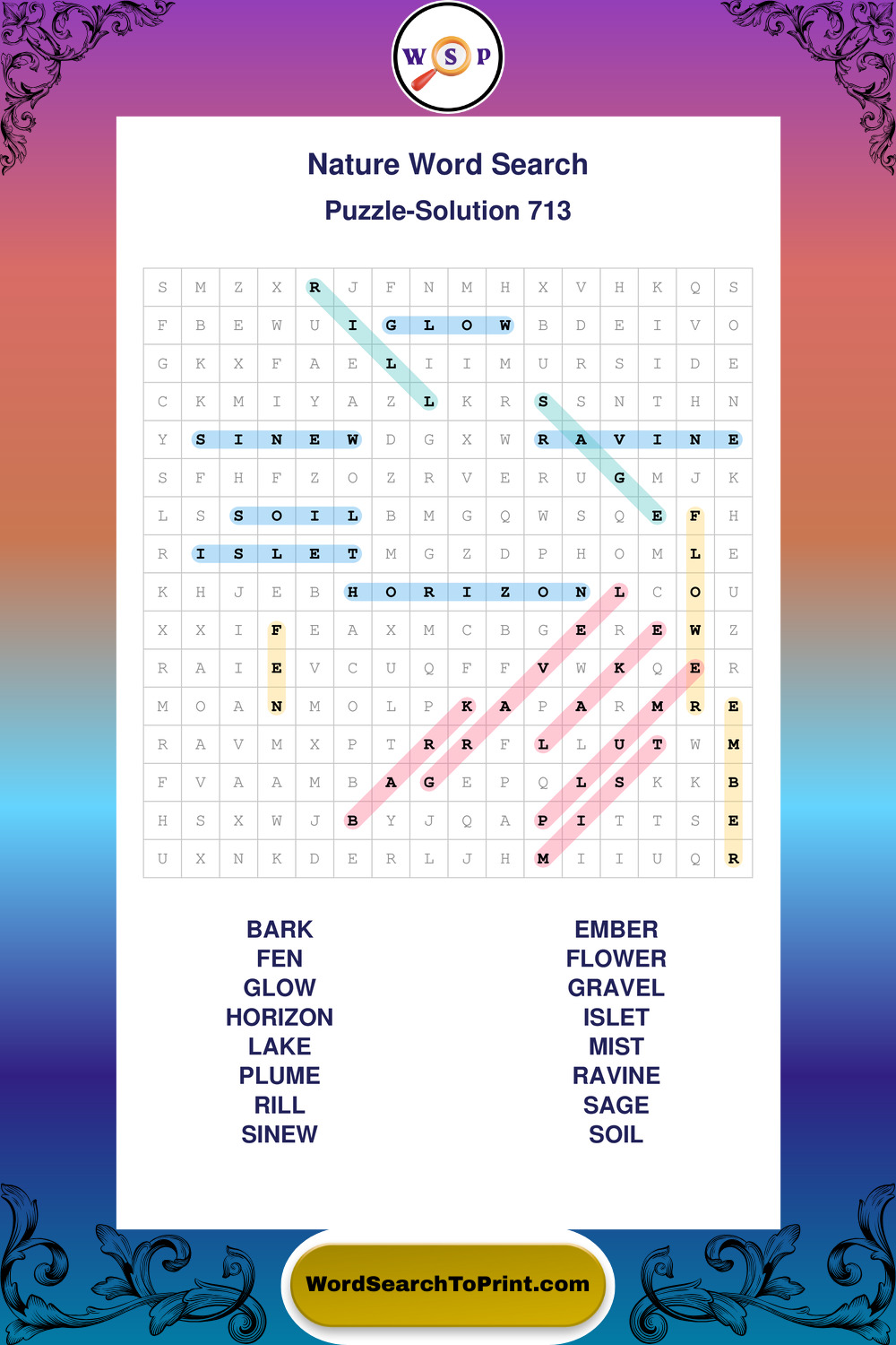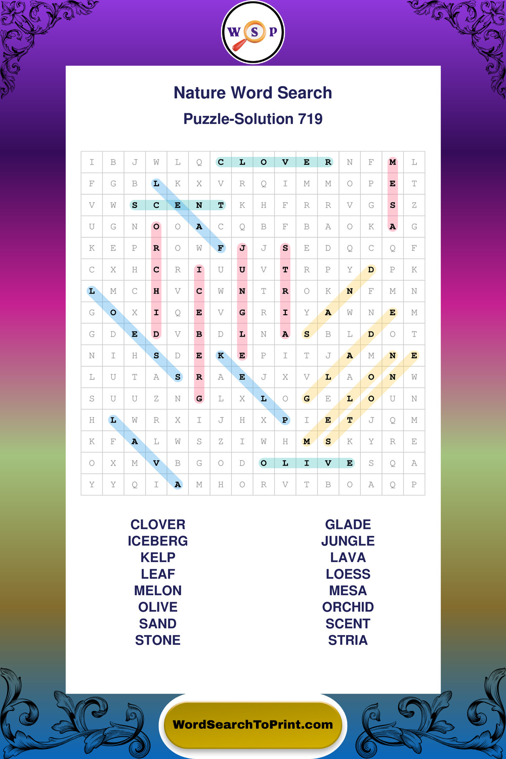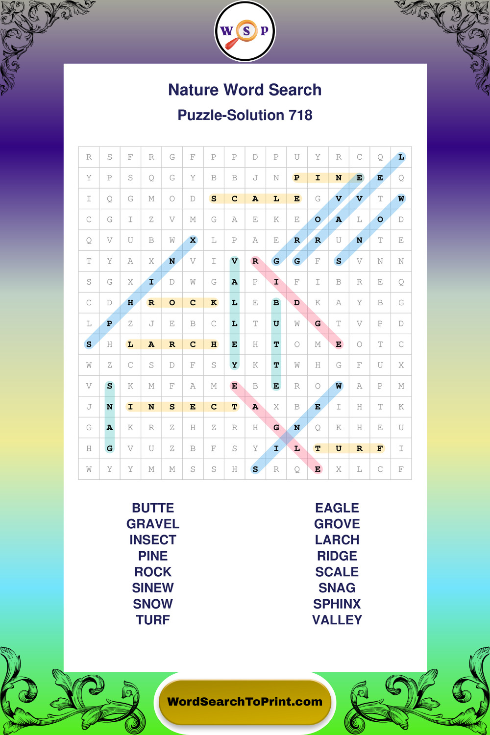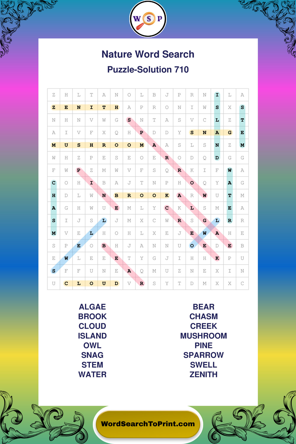 Find easy-to-read large print Nature wordsearches designed for peaceful focus and simple, enjoyable solving.