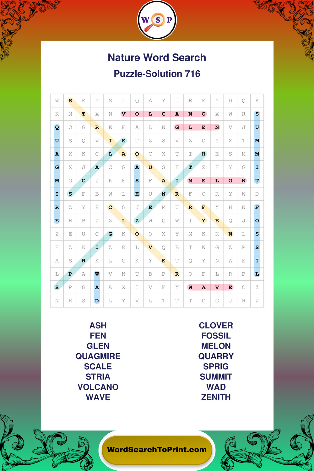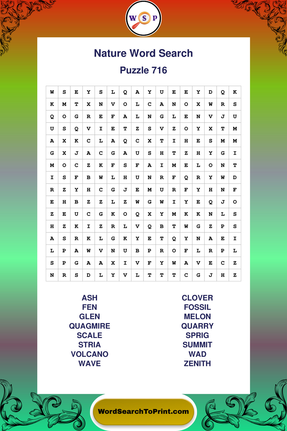 Printable Nature Wordsearch Puzzles