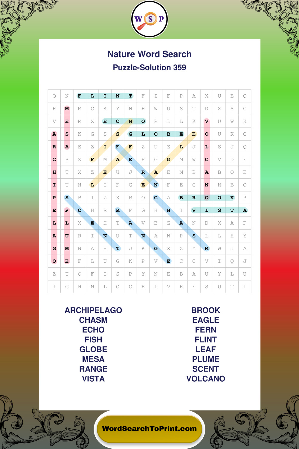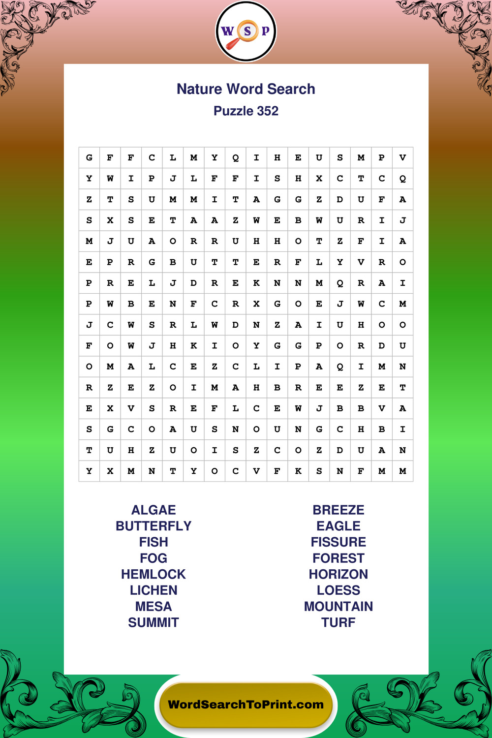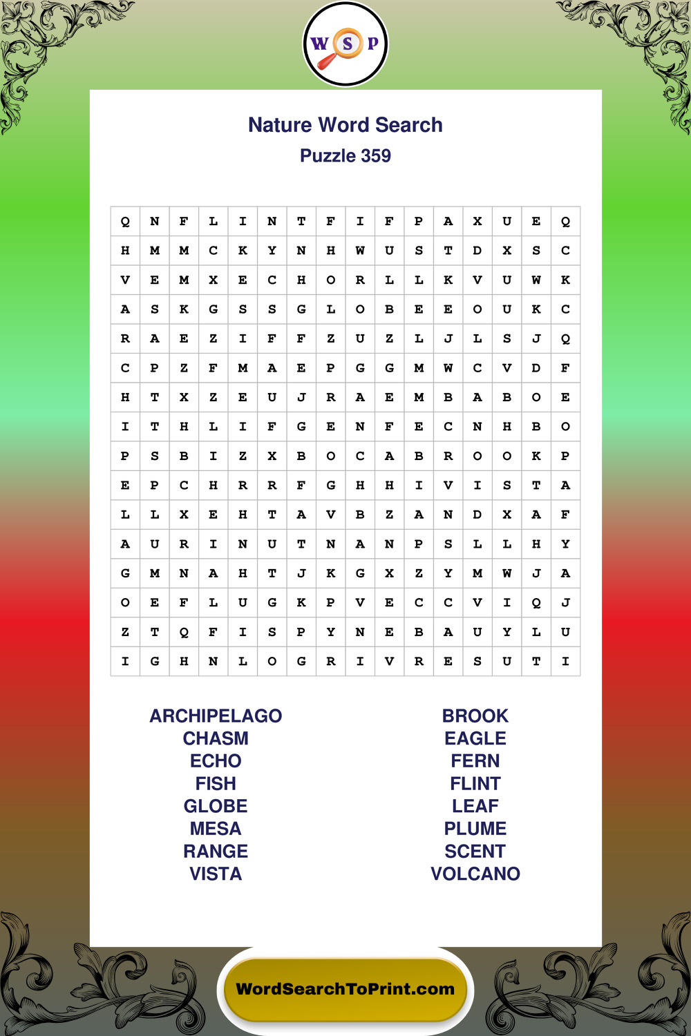 Printable Nature Wordsearch Puzzles