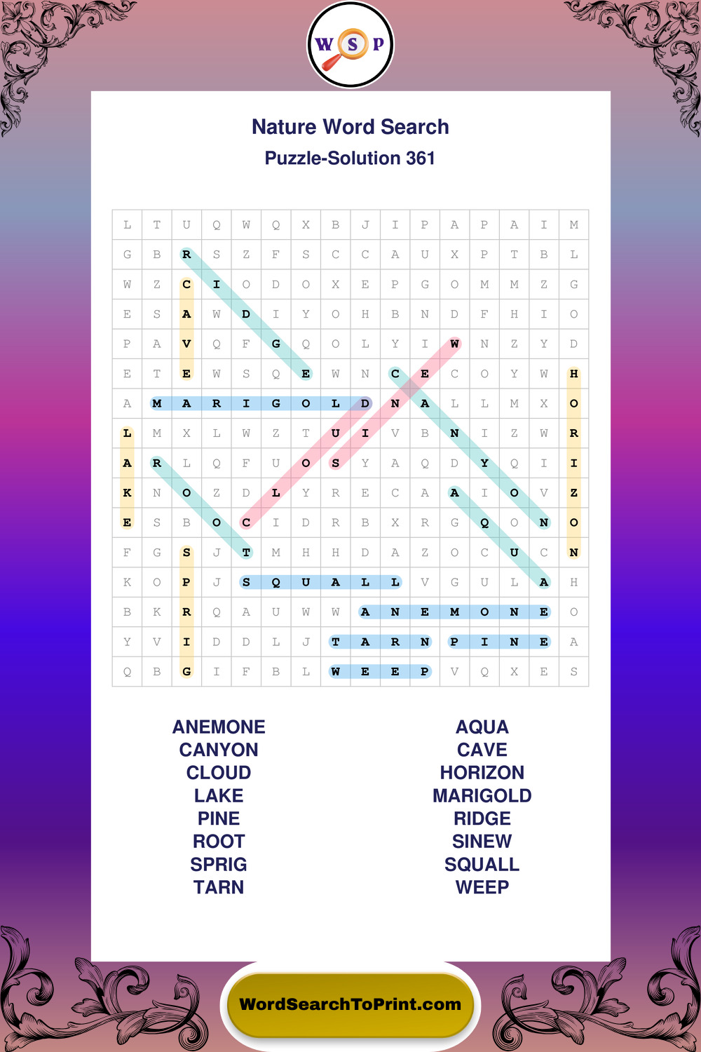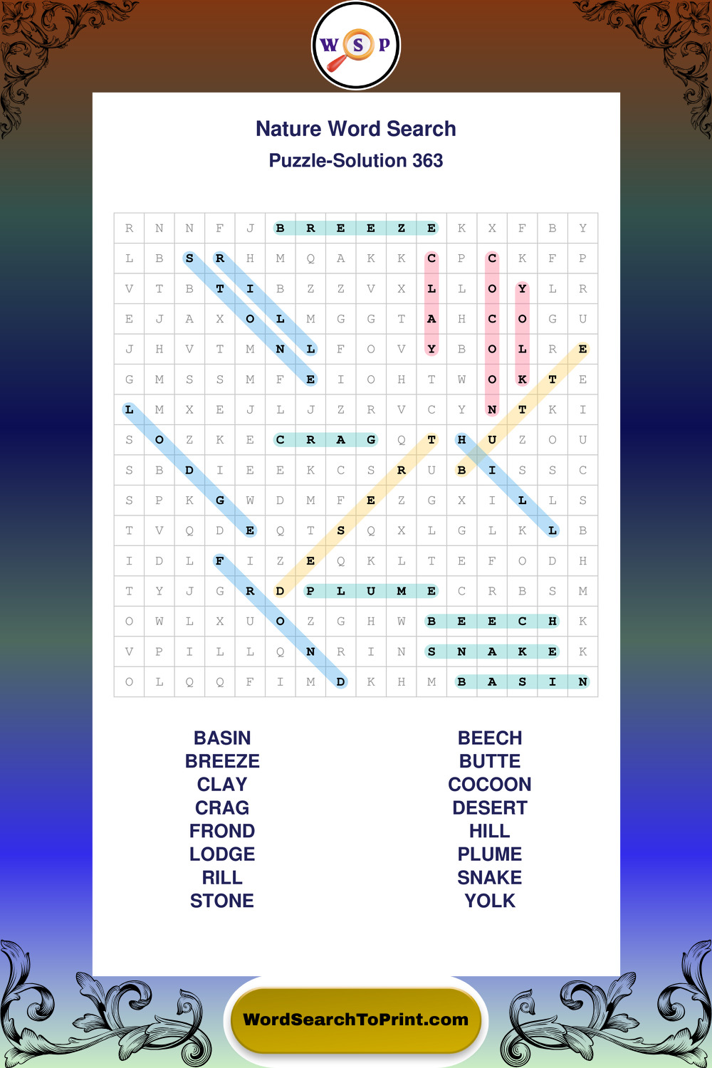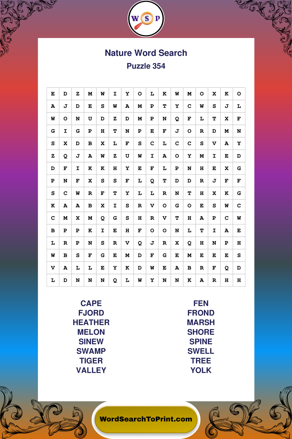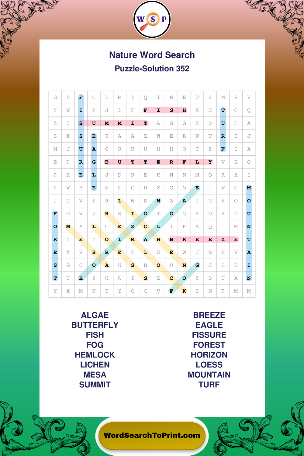 Printable Nature Wordsearch Puzzles
