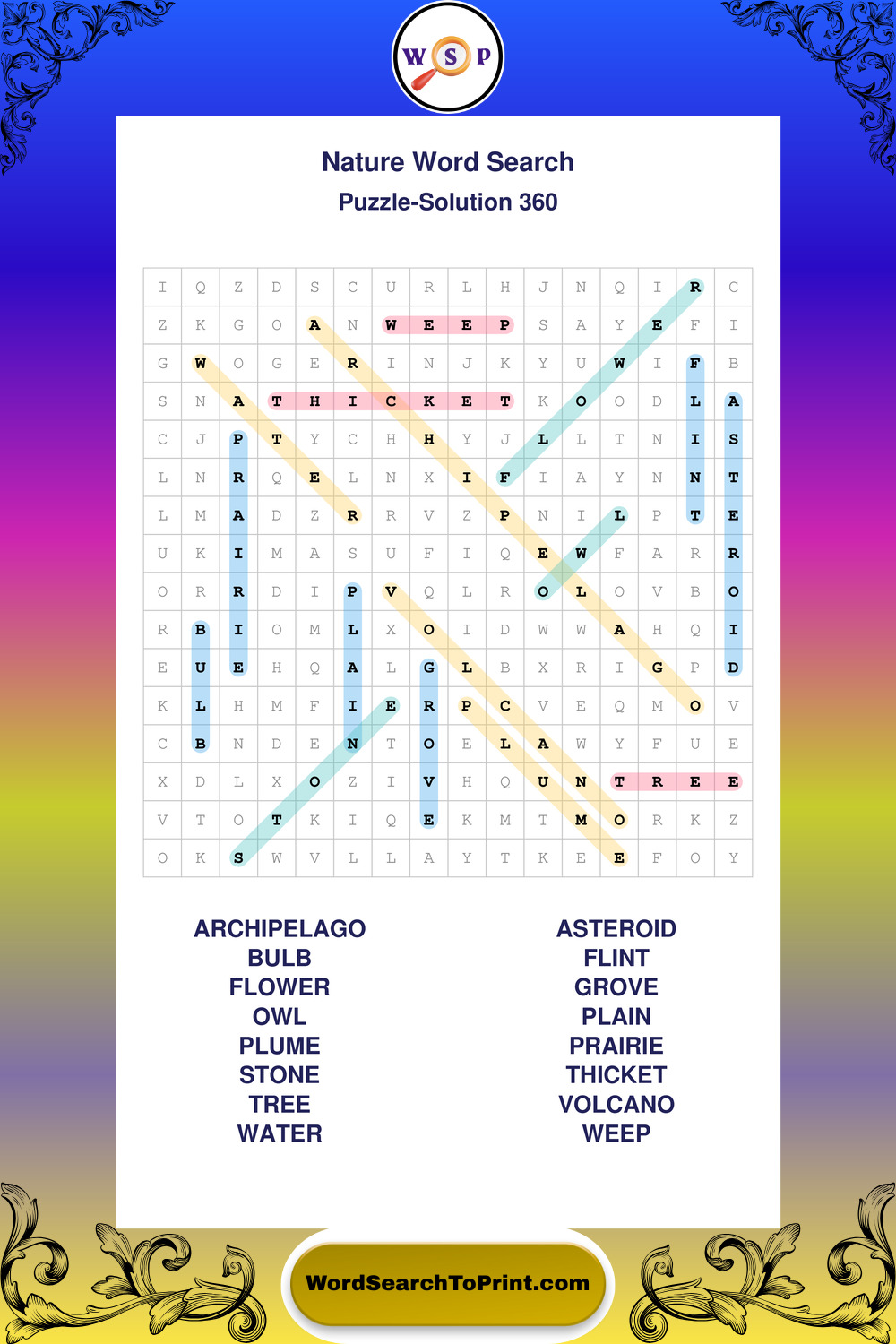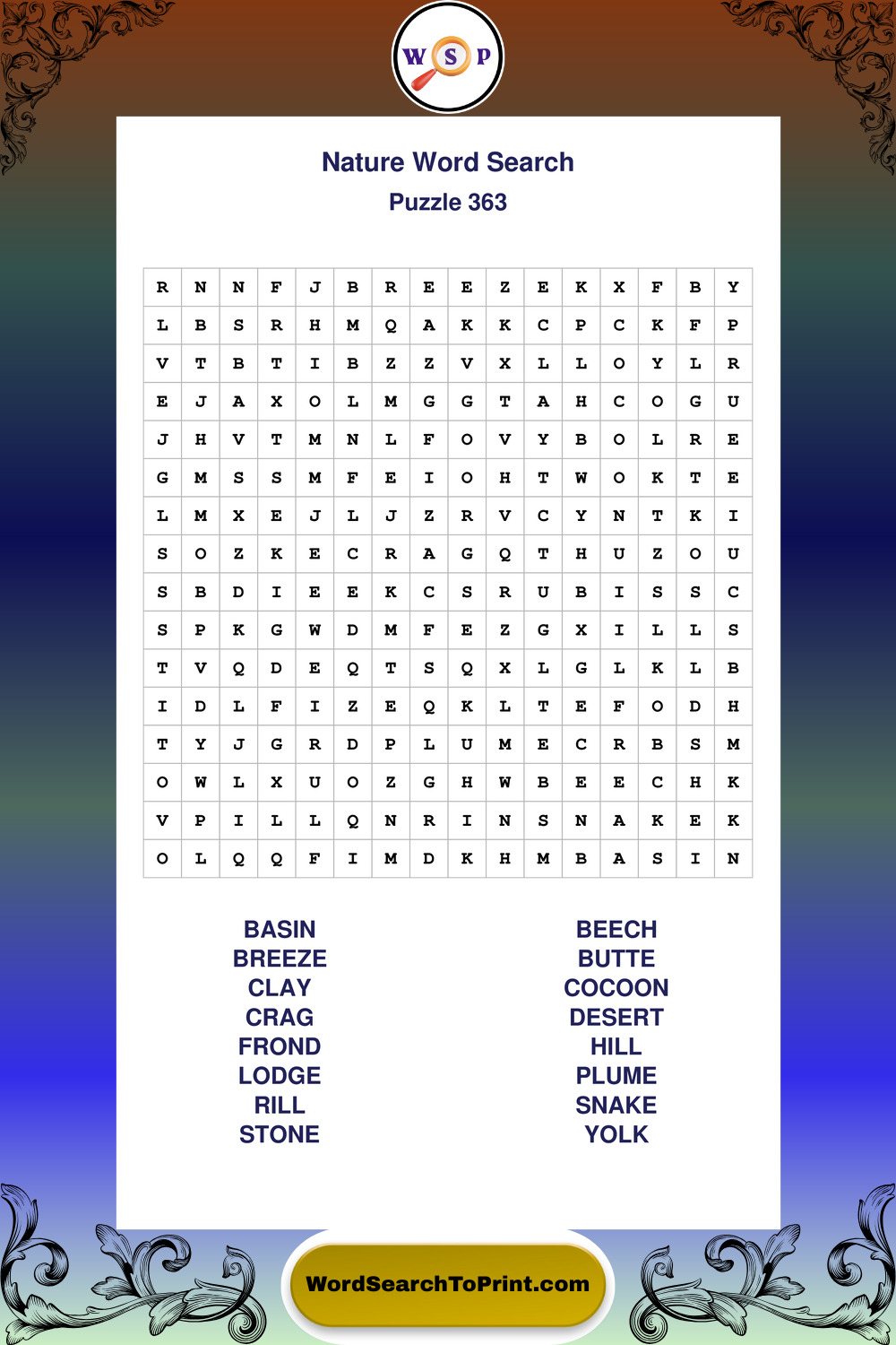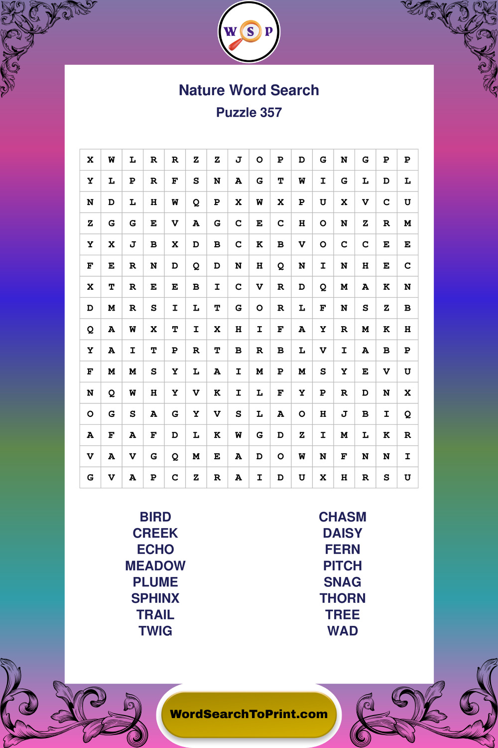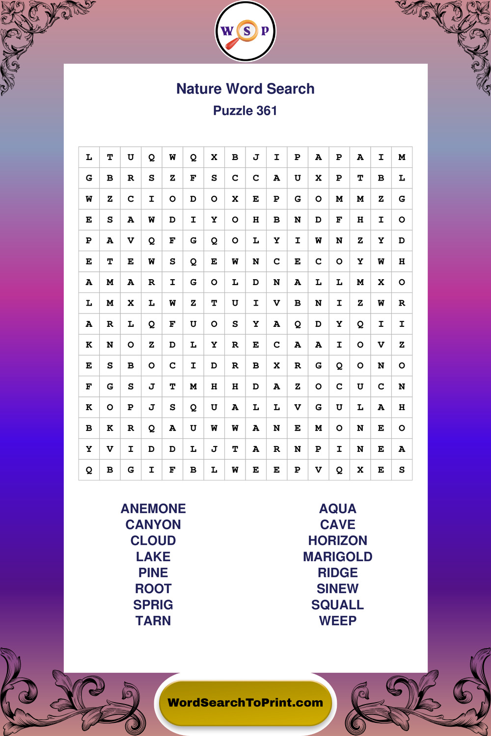Find easy-to-read large print Nature wordsearches designed for peaceful focus and simple, enjoyable solving.