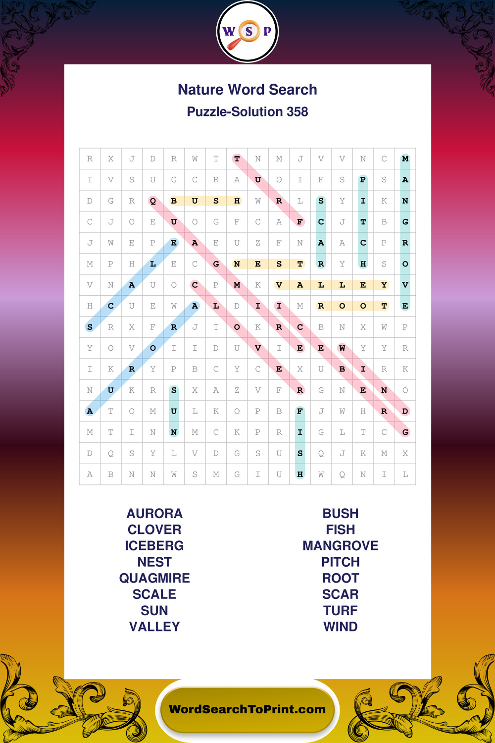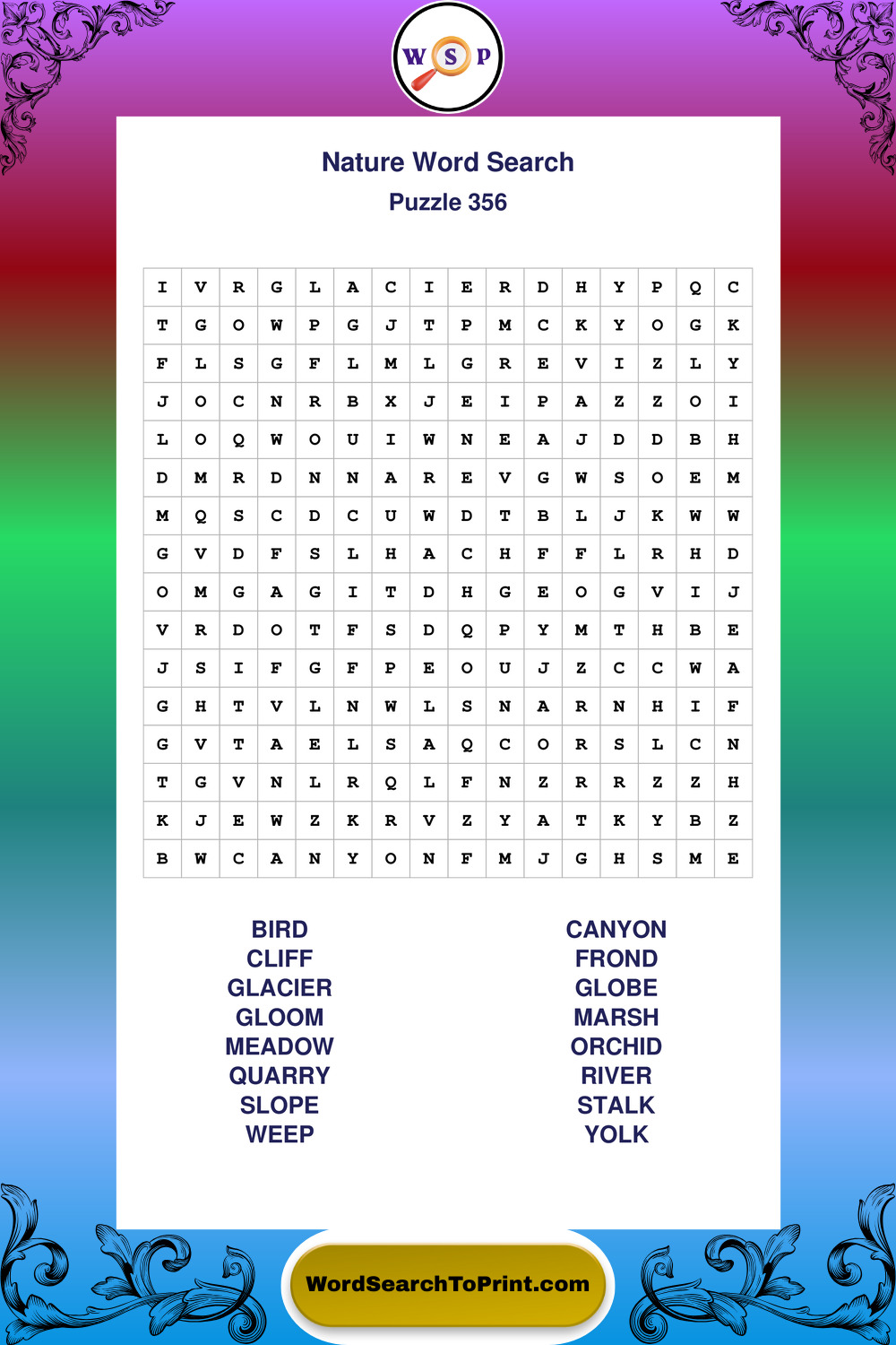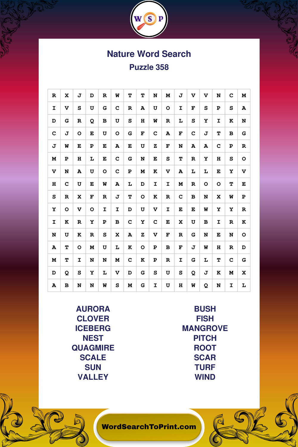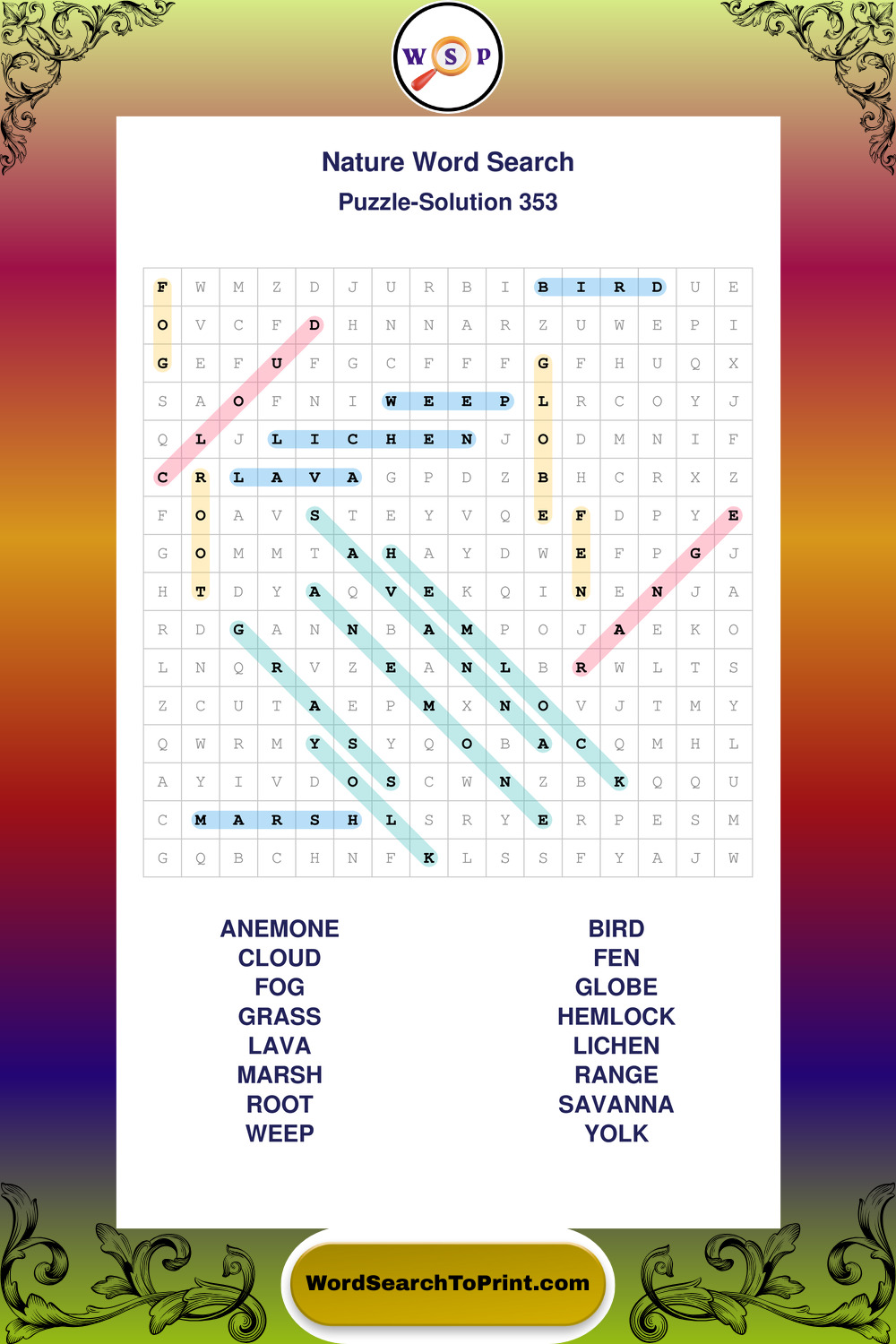 Find easy-to-read large print Nature wordsearches designed for peaceful focus and simple, enjoyable solving.