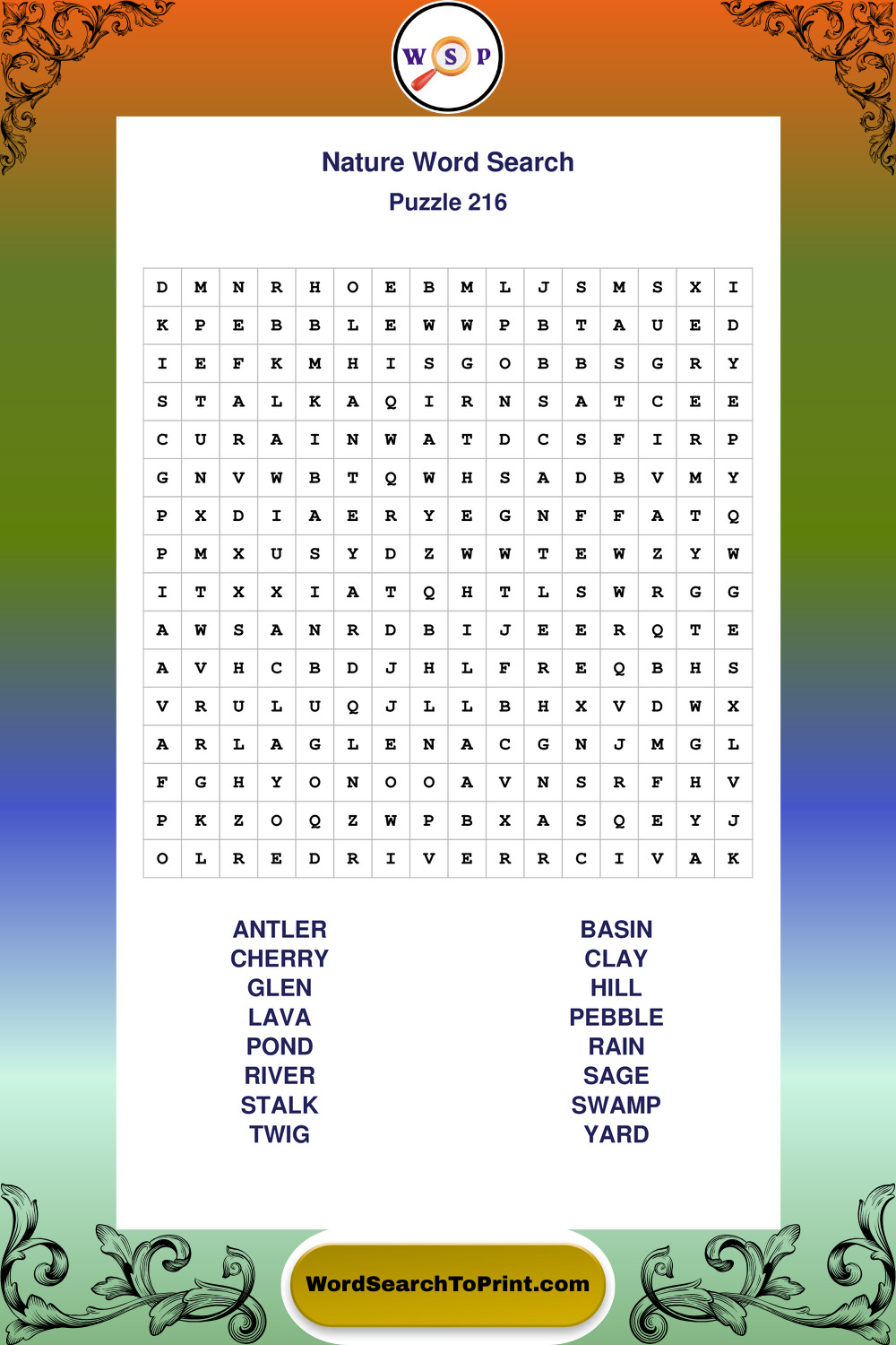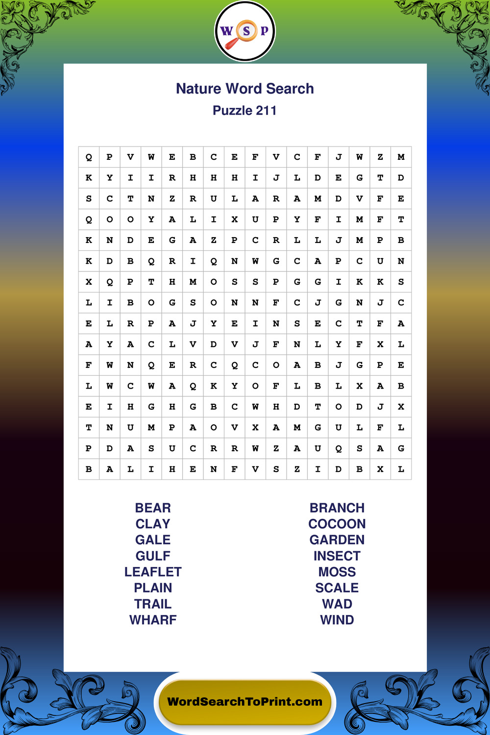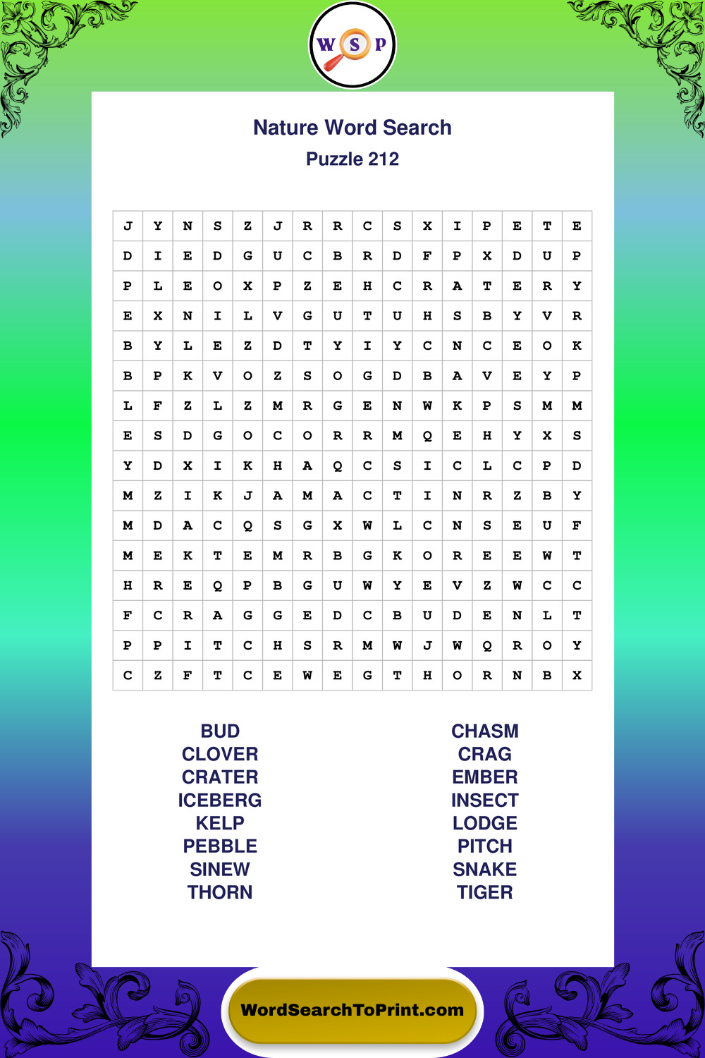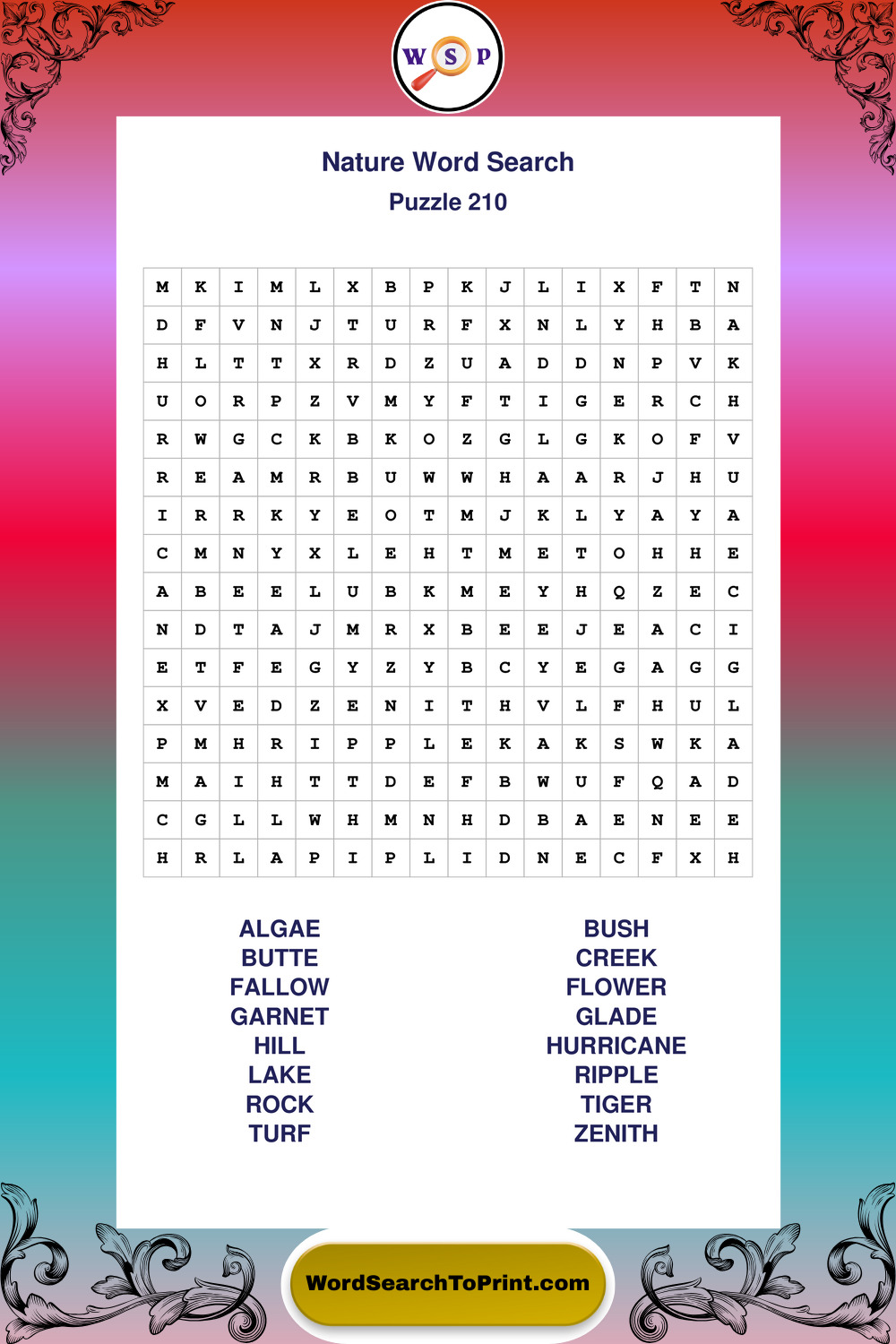 Find easy-to-read large print Nature wordsearches designed for peaceful focus and simple, enjoyable solving.