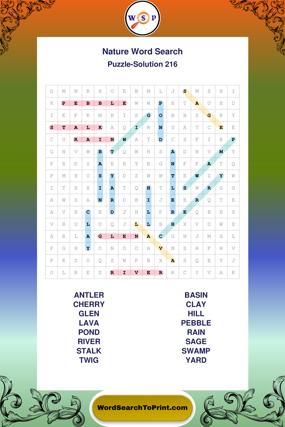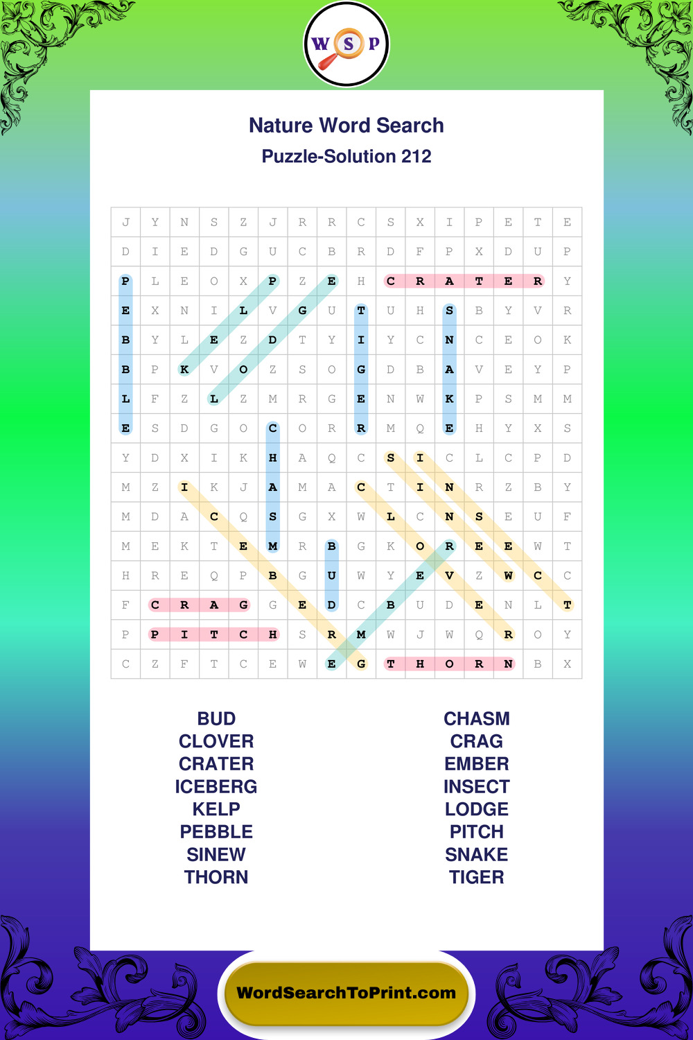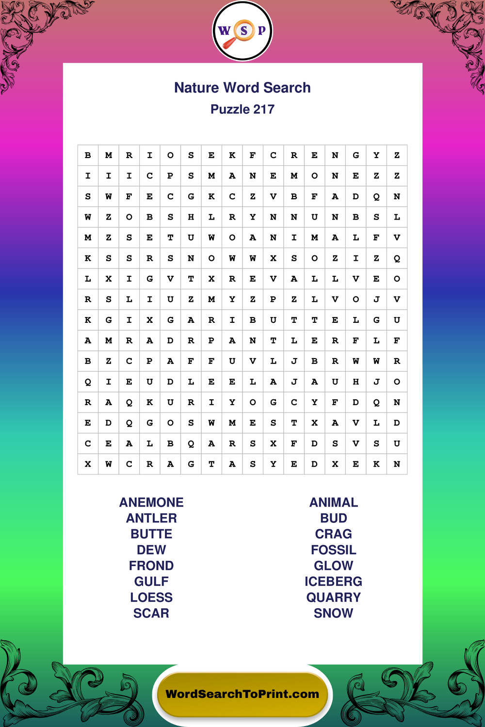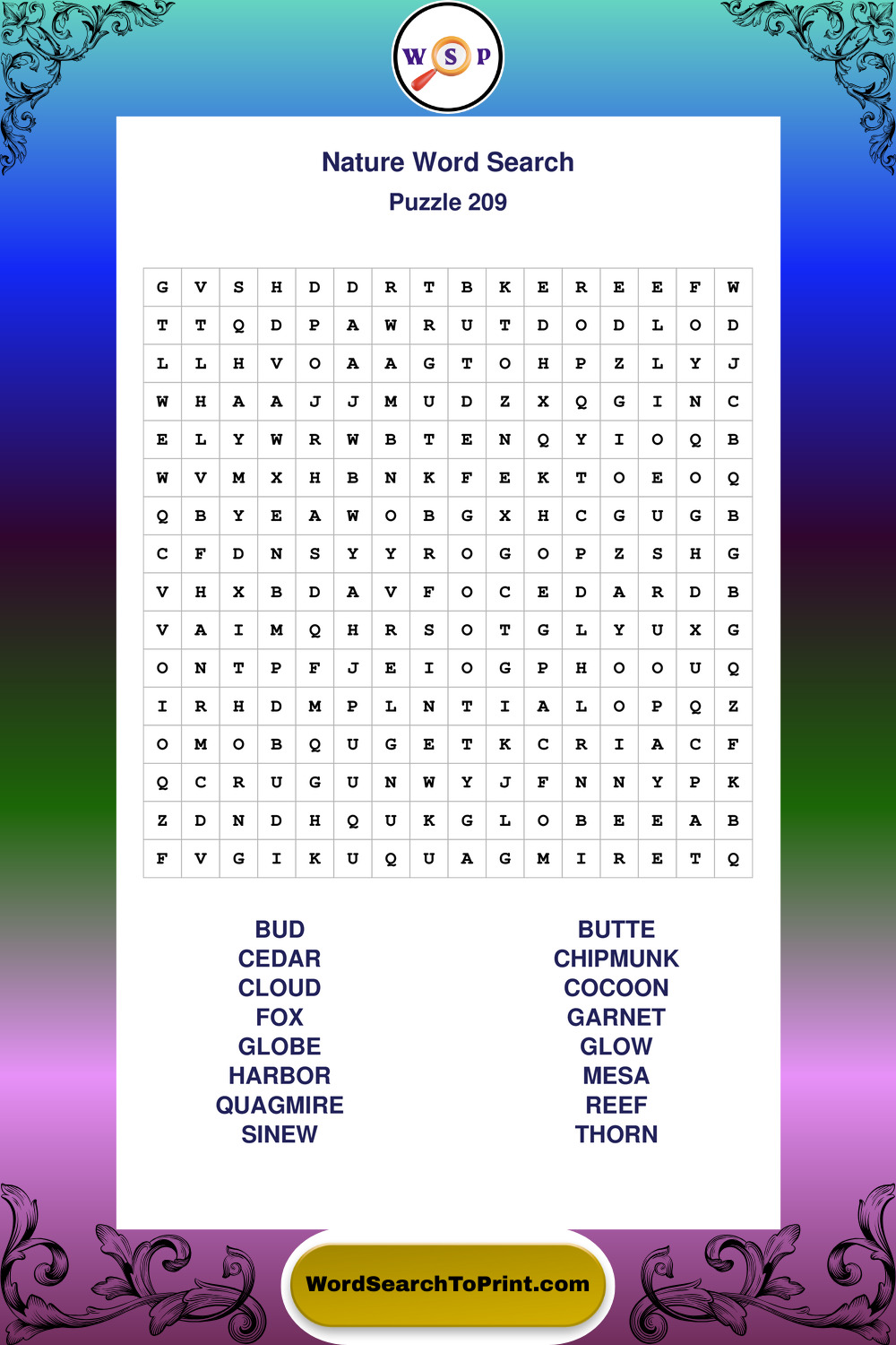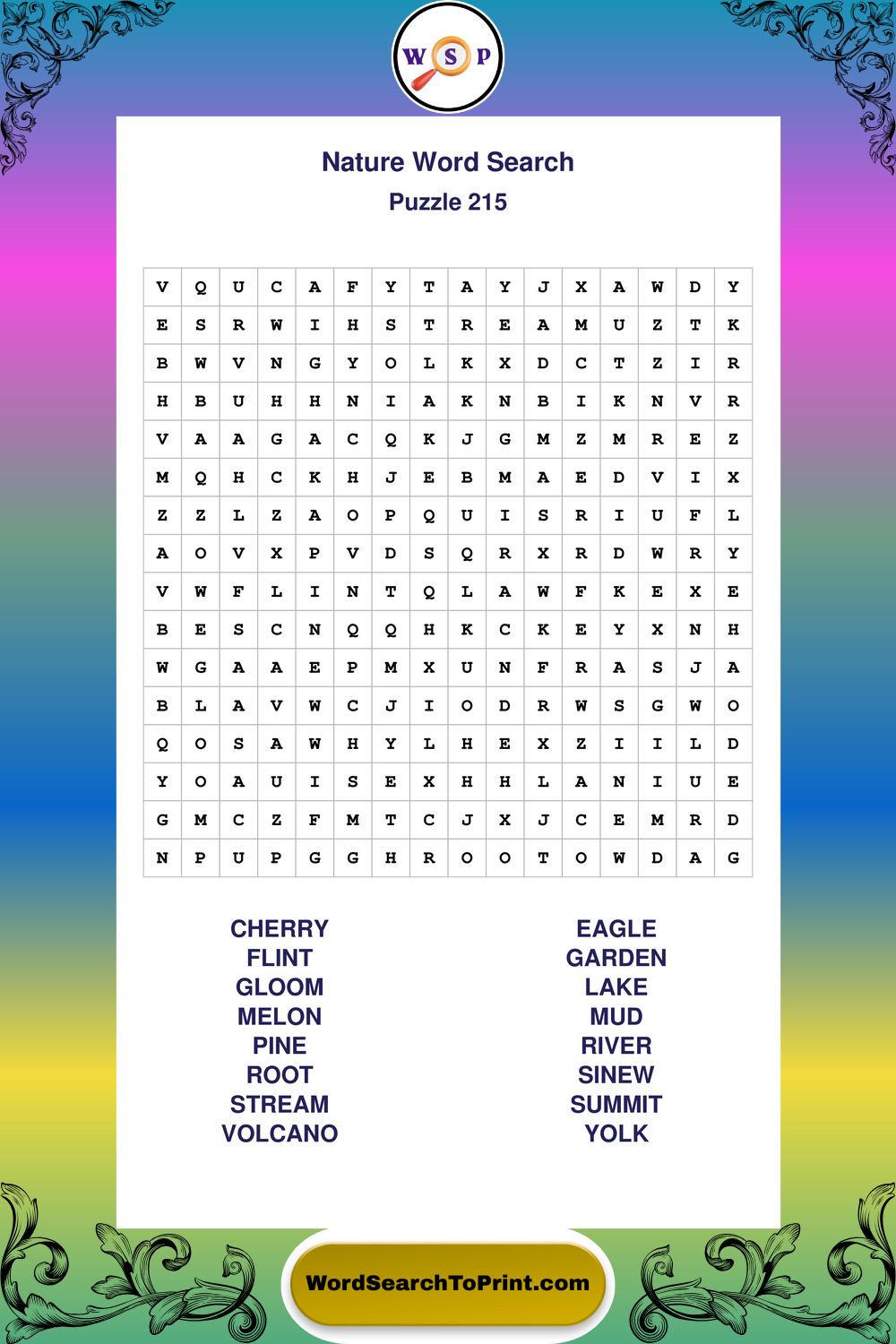 Find easy-to-read large print Nature wordsearches designed for peaceful focus and simple, enjoyable solving.