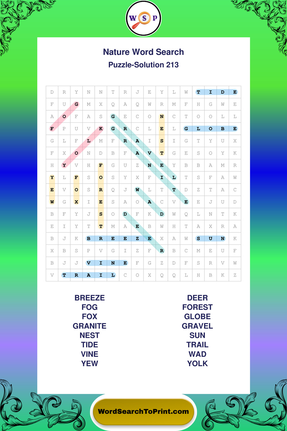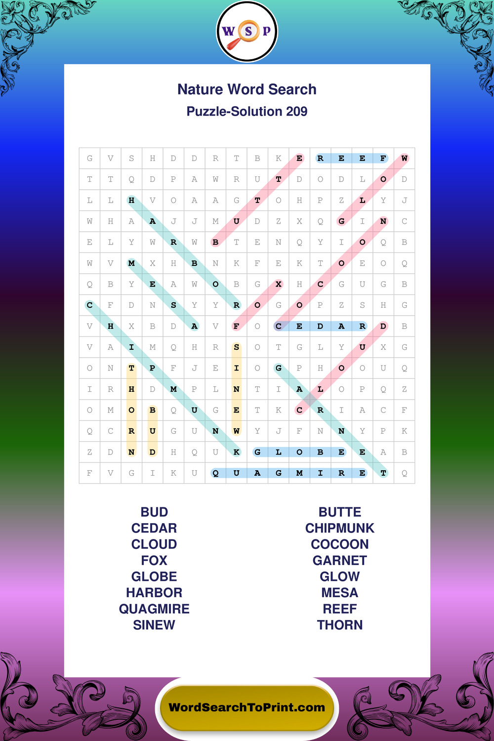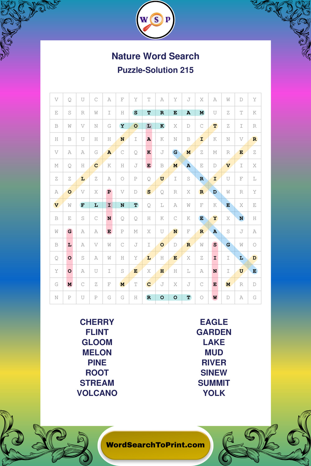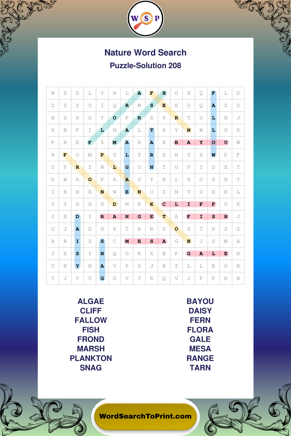 Find easy-to-read large print Nature wordsearches designed for peaceful focus and simple, enjoyable solving.