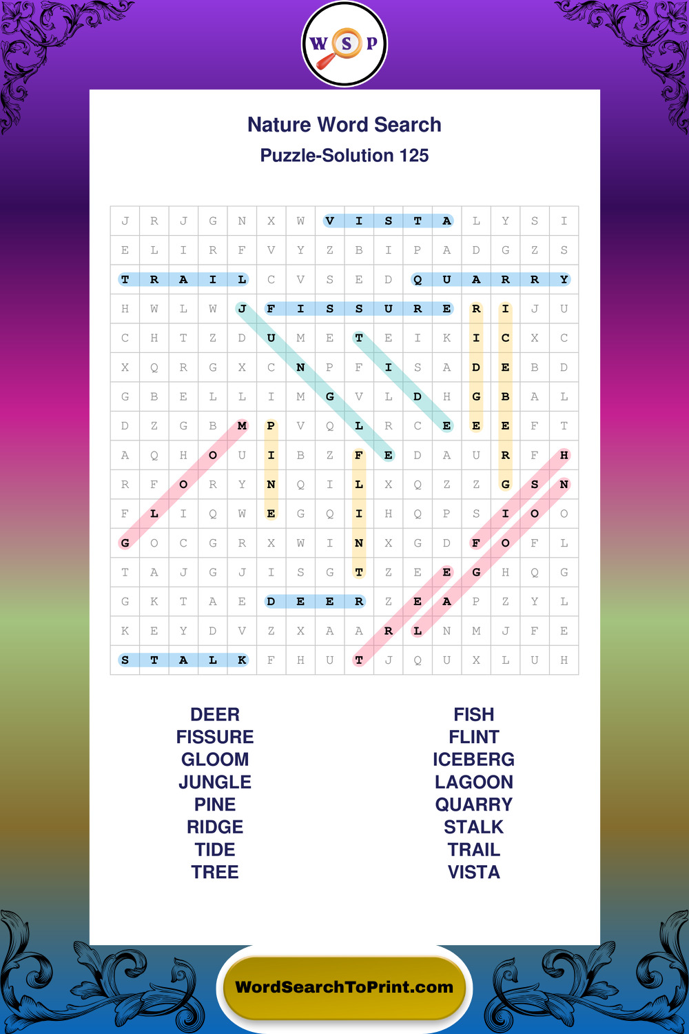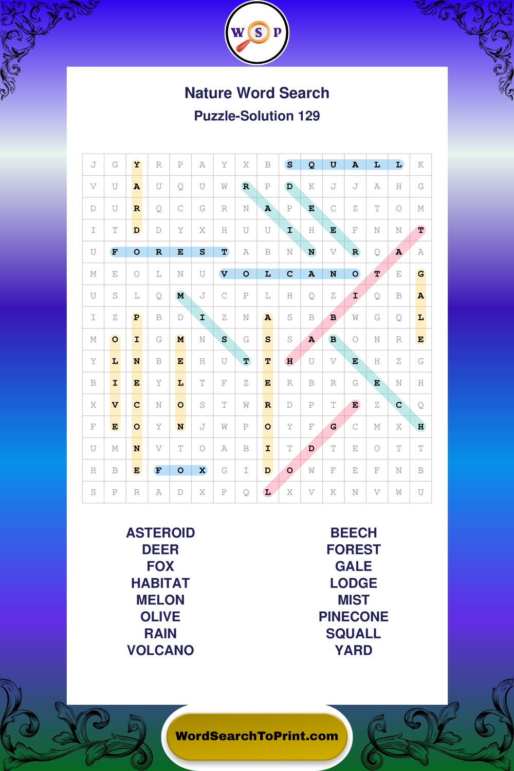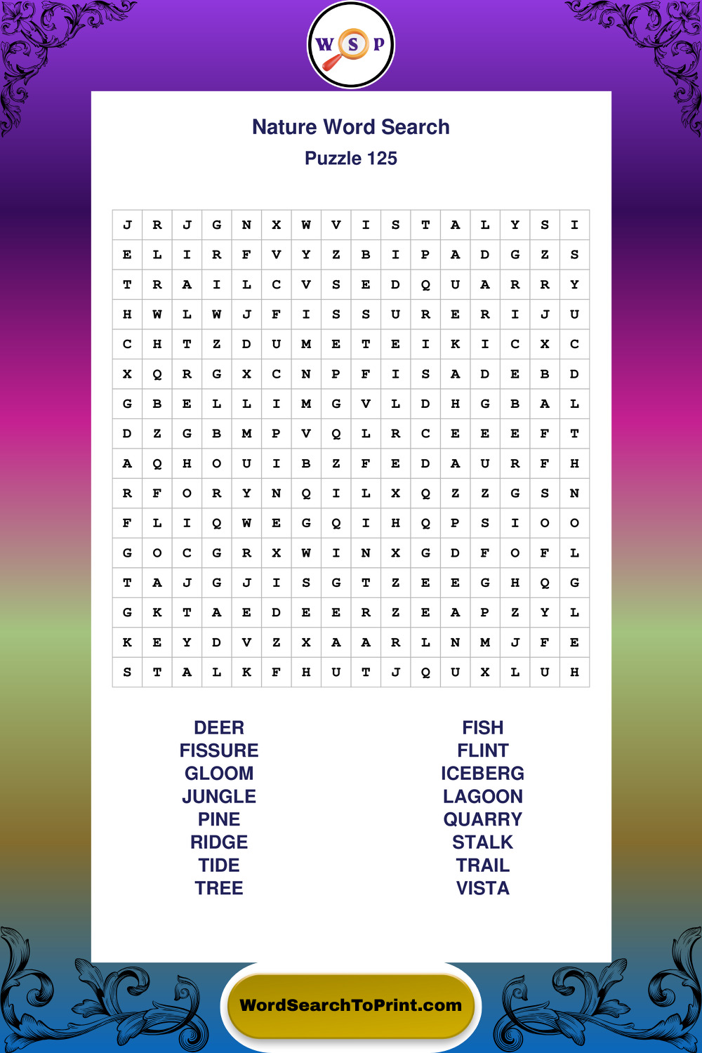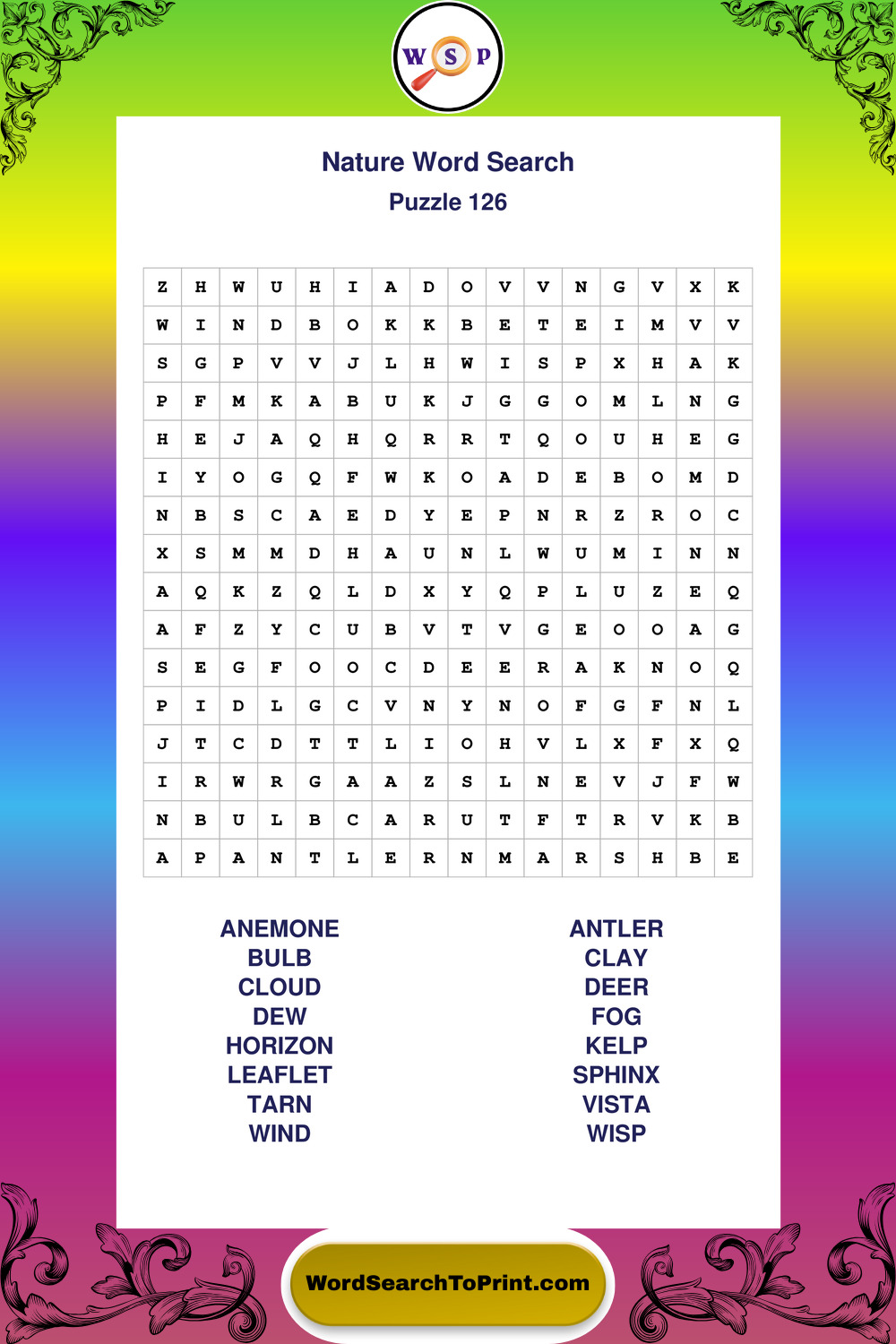 Find easy-to-read large print Nature wordsearches designed for peaceful focus and simple, enjoyable solving.