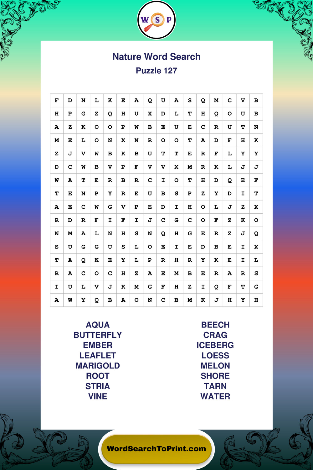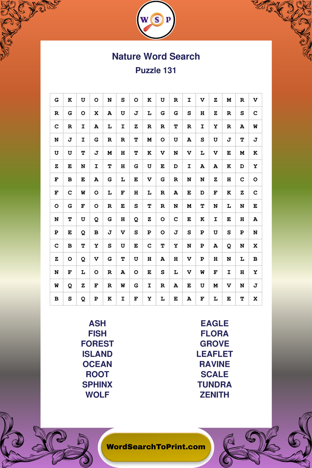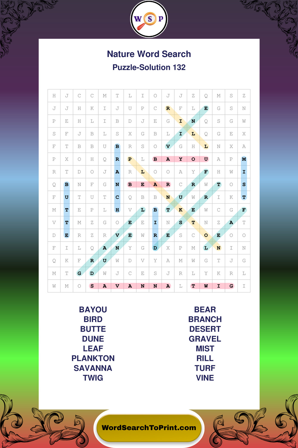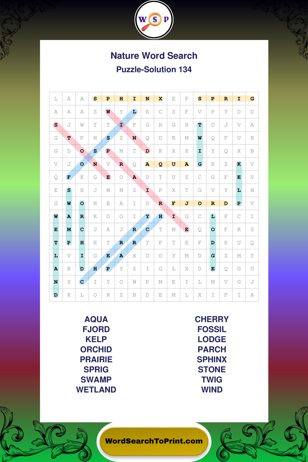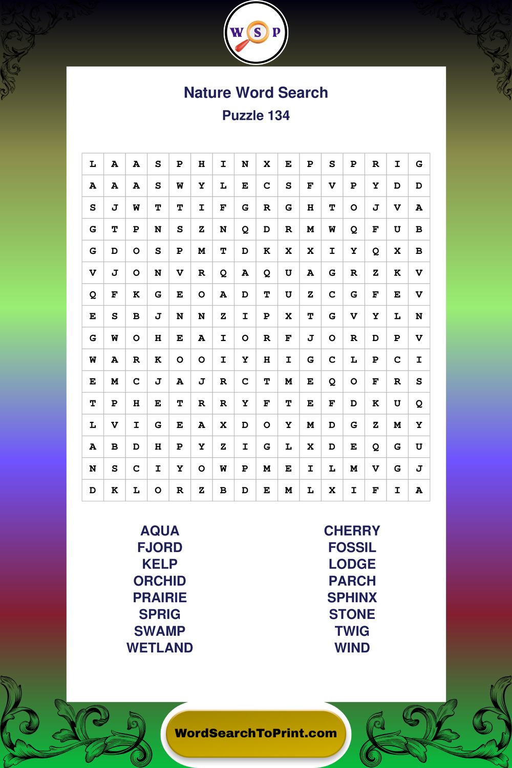 Printable Nature Wordsearch Puzzles