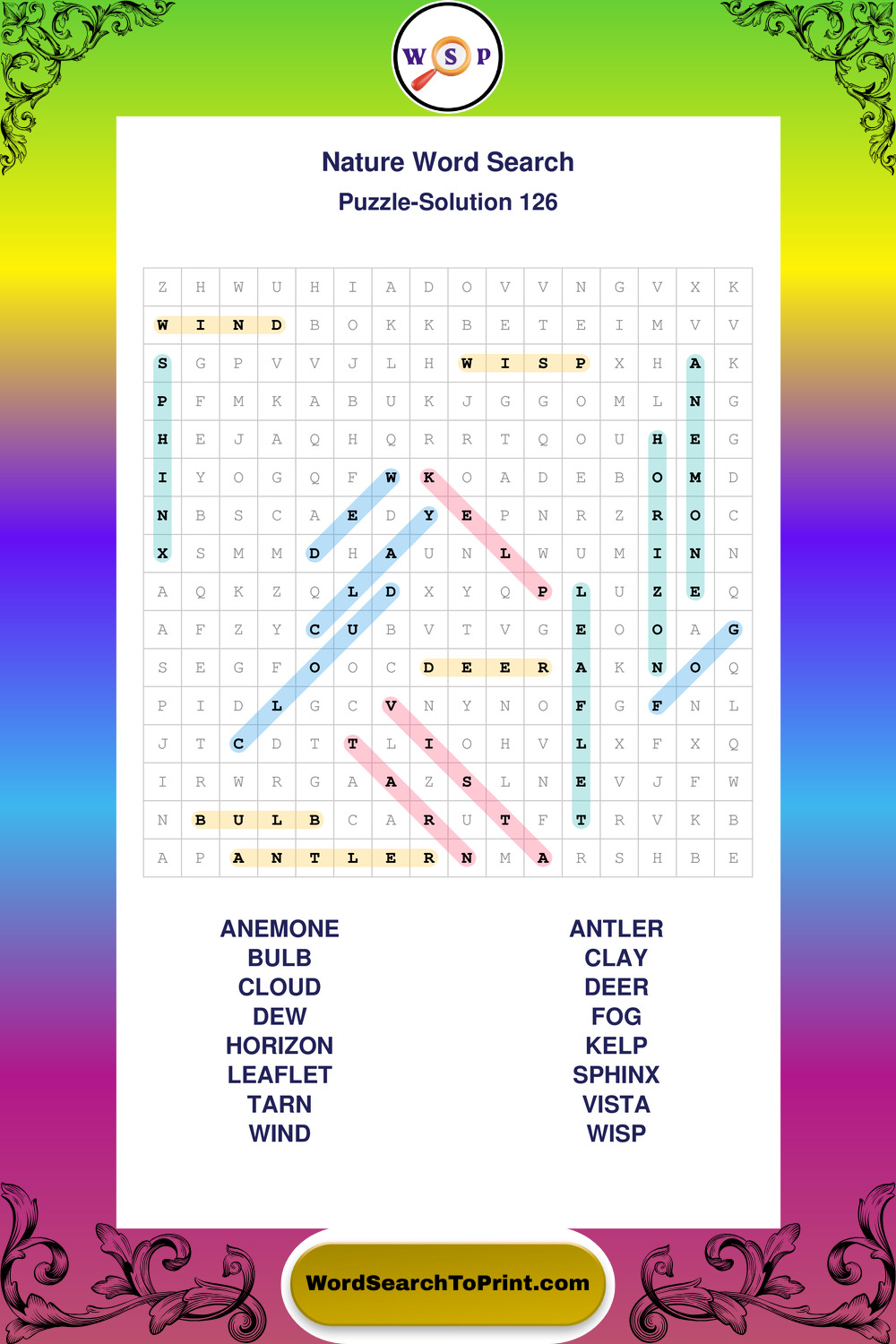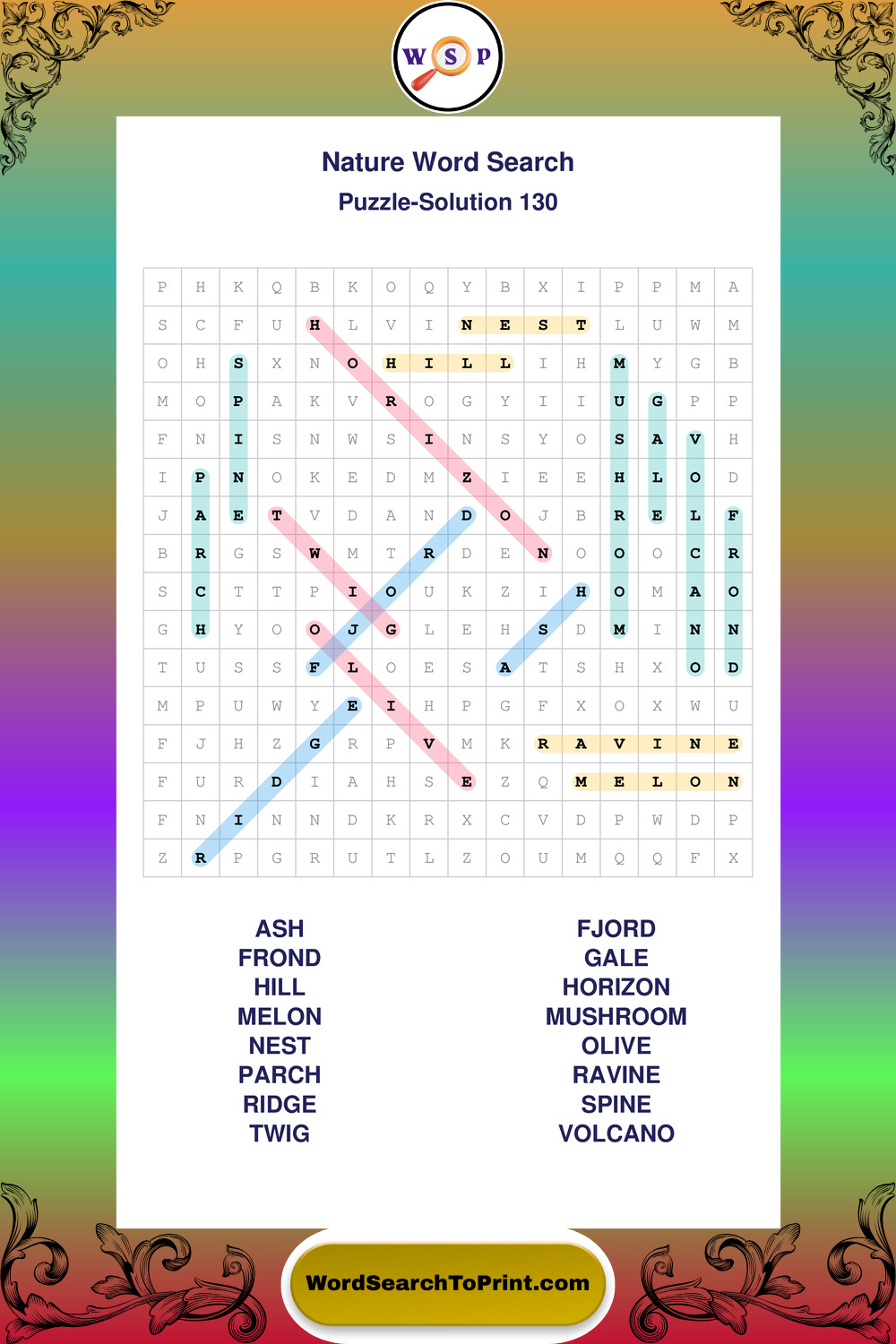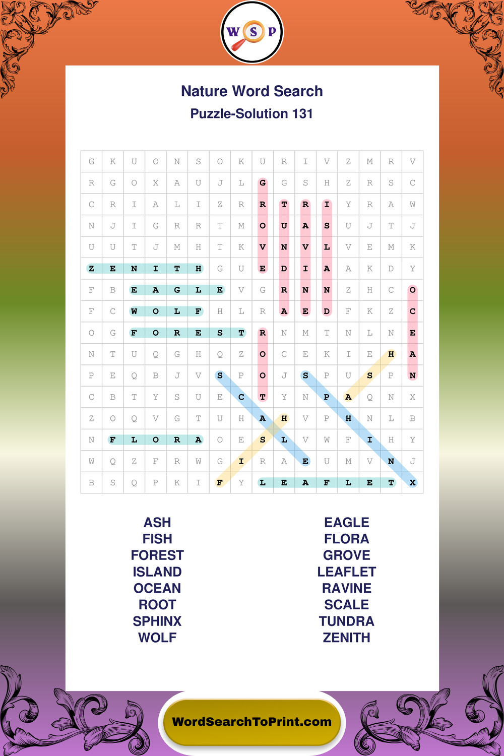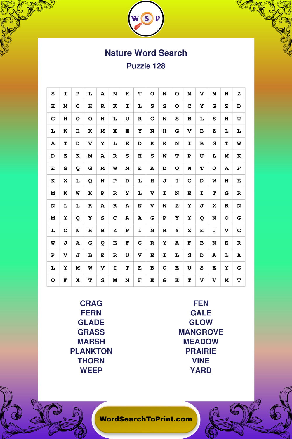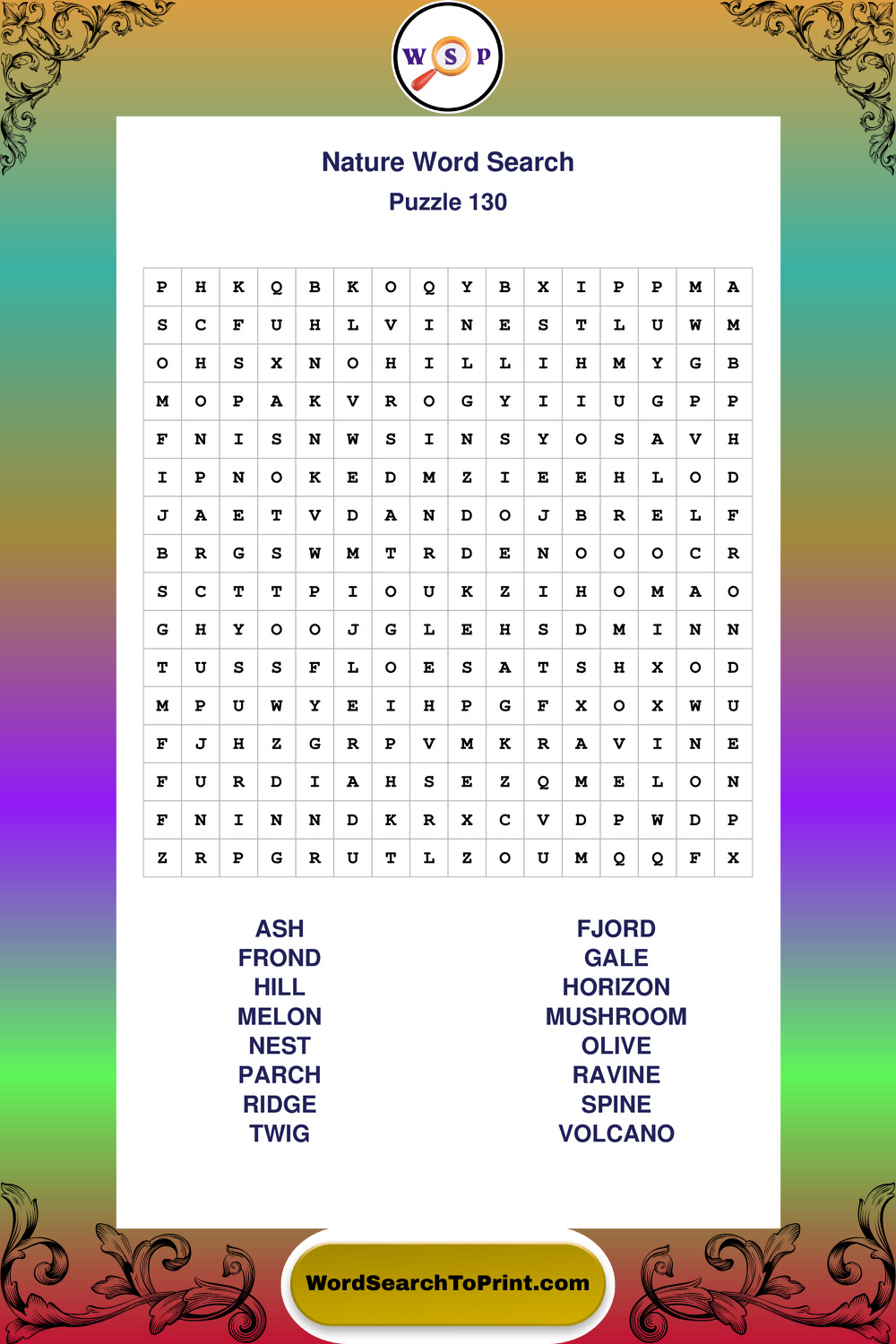 Printable Nature Wordsearch Puzzles