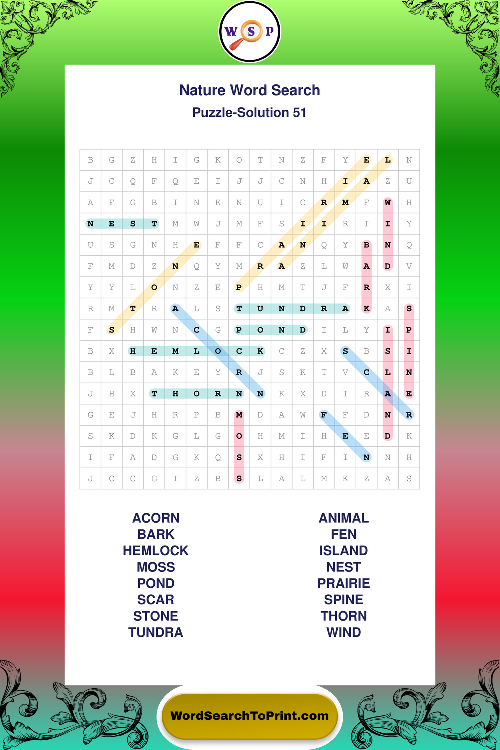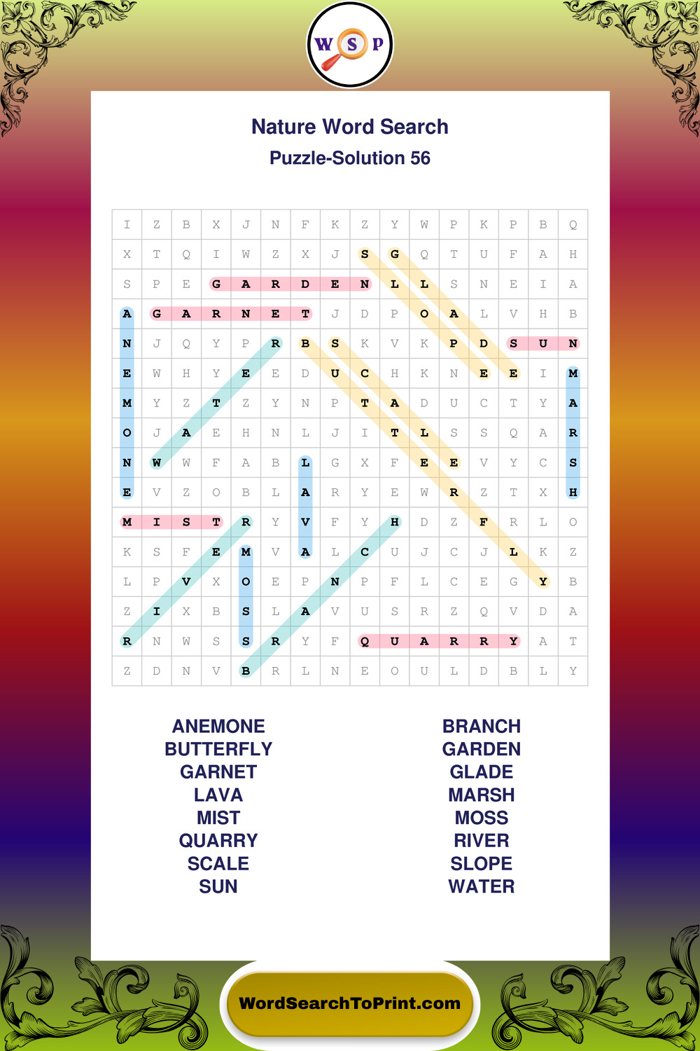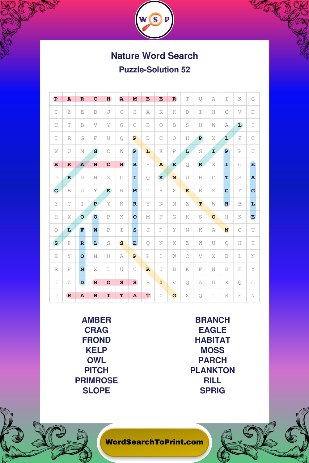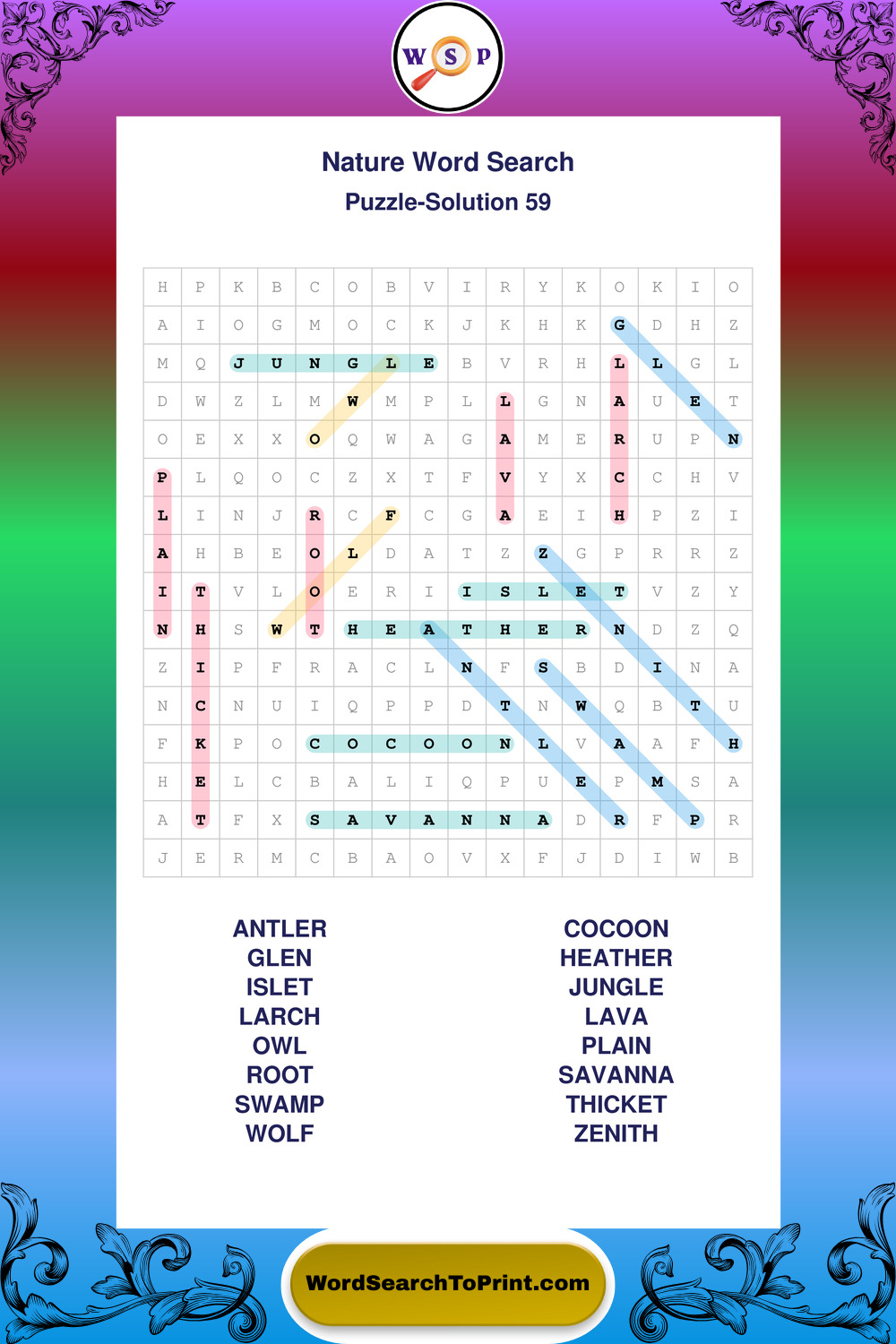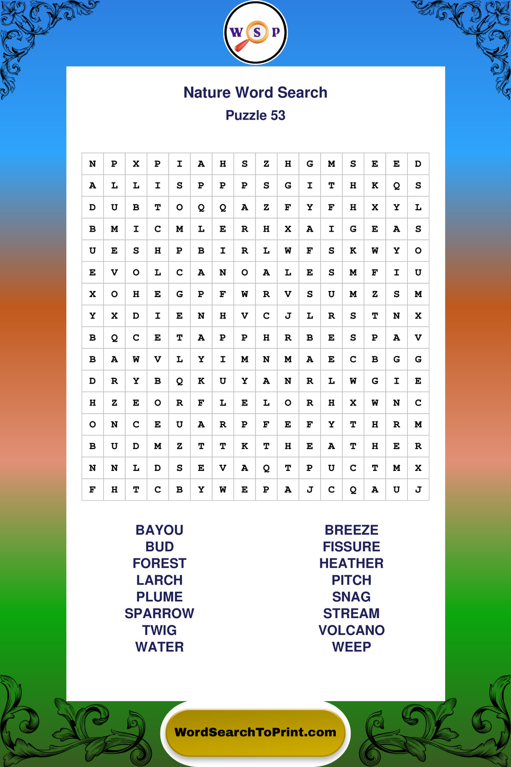 Find easy-to-read large print Nature wordsearches designed for peaceful focus and simple, enjoyable solving.