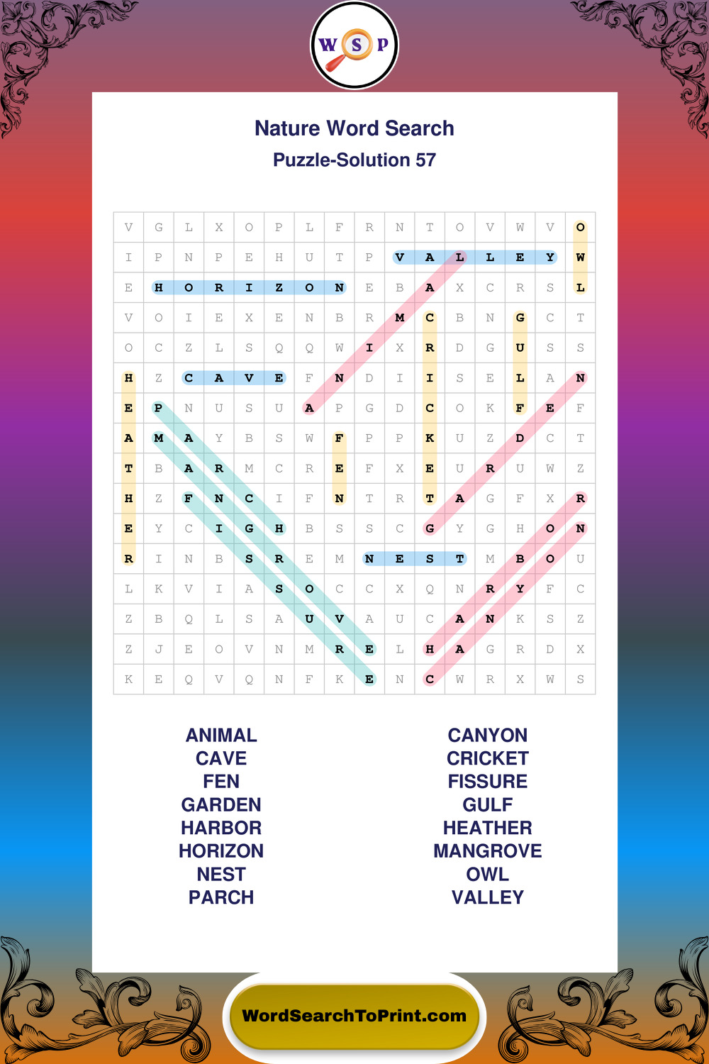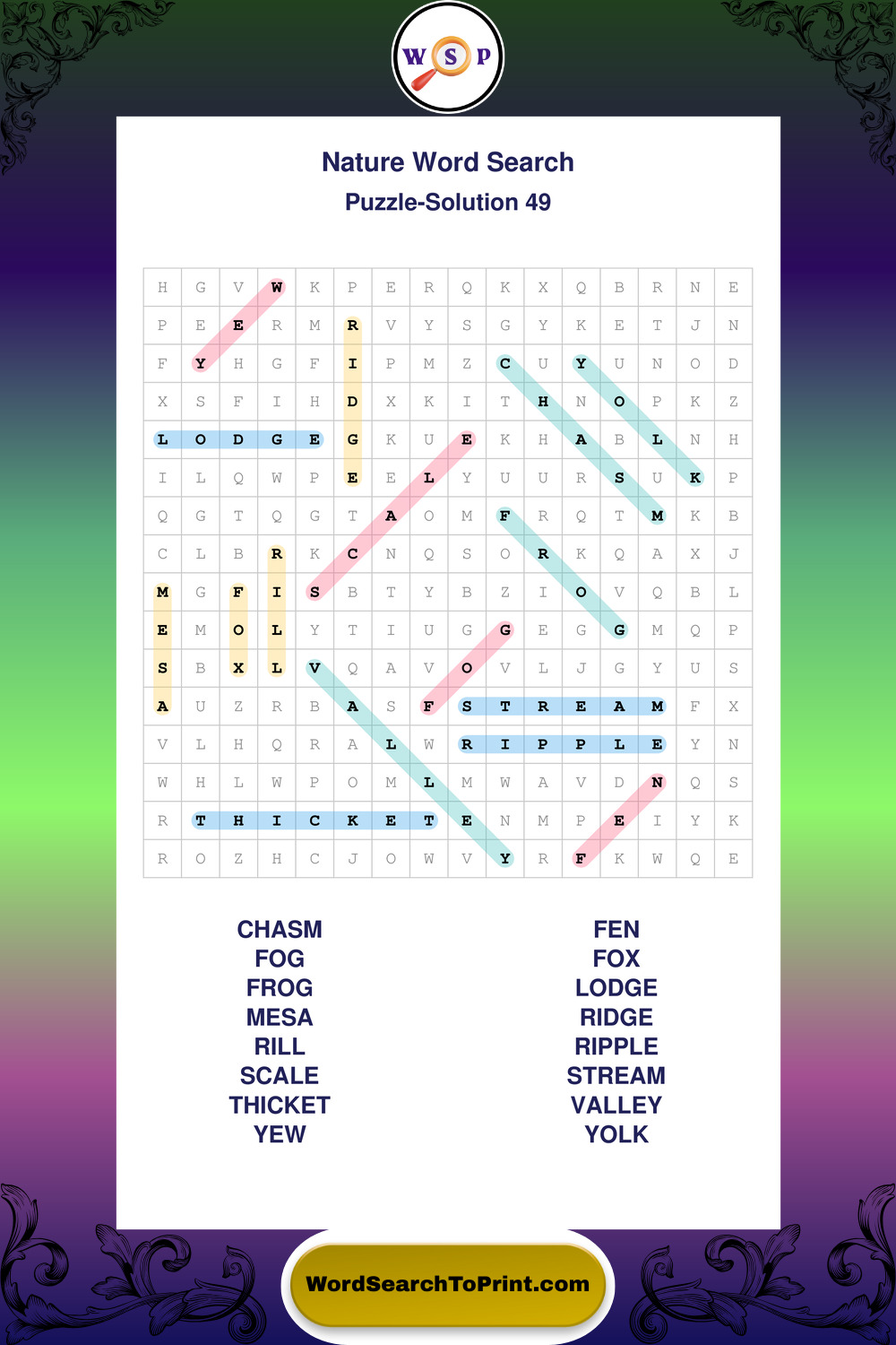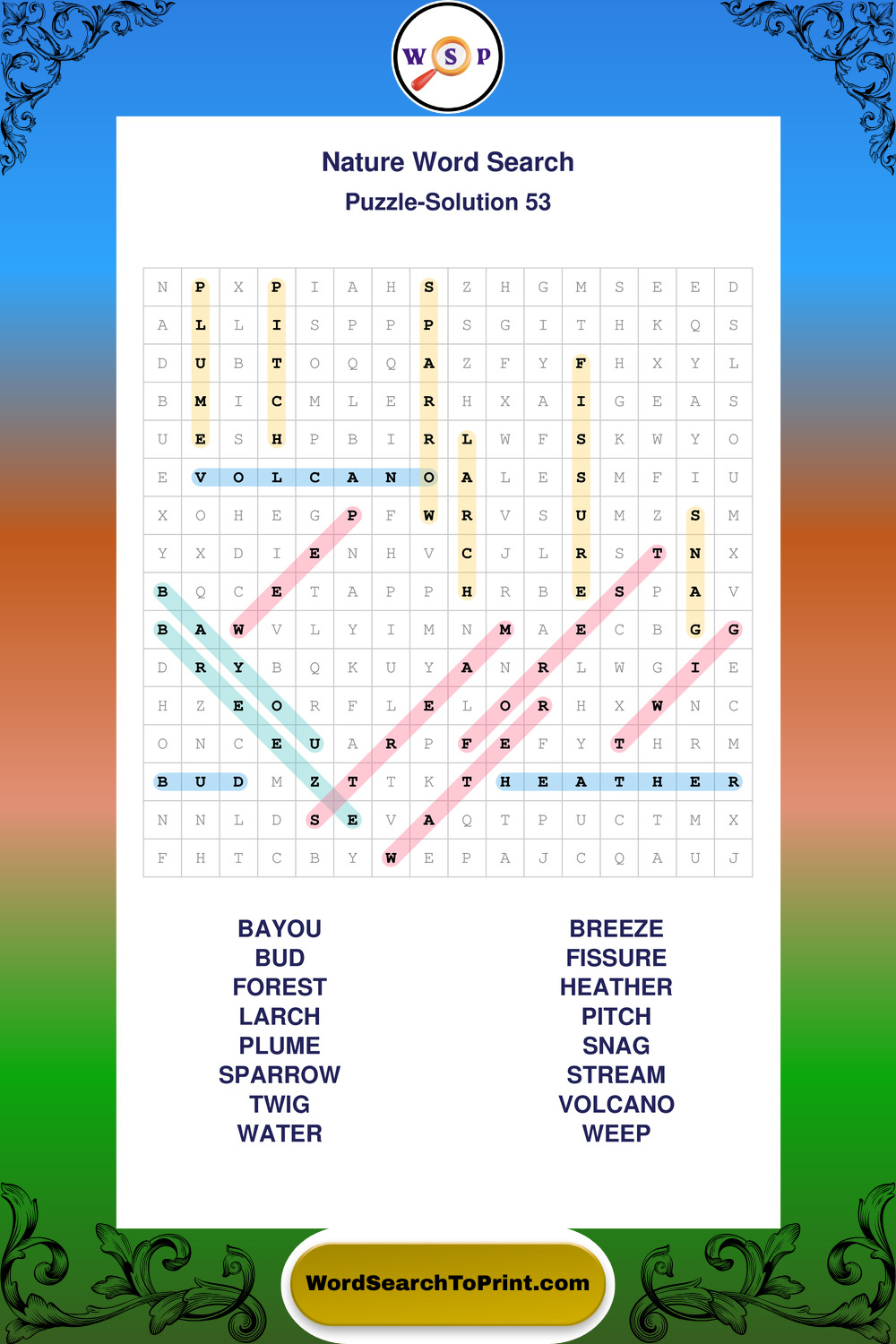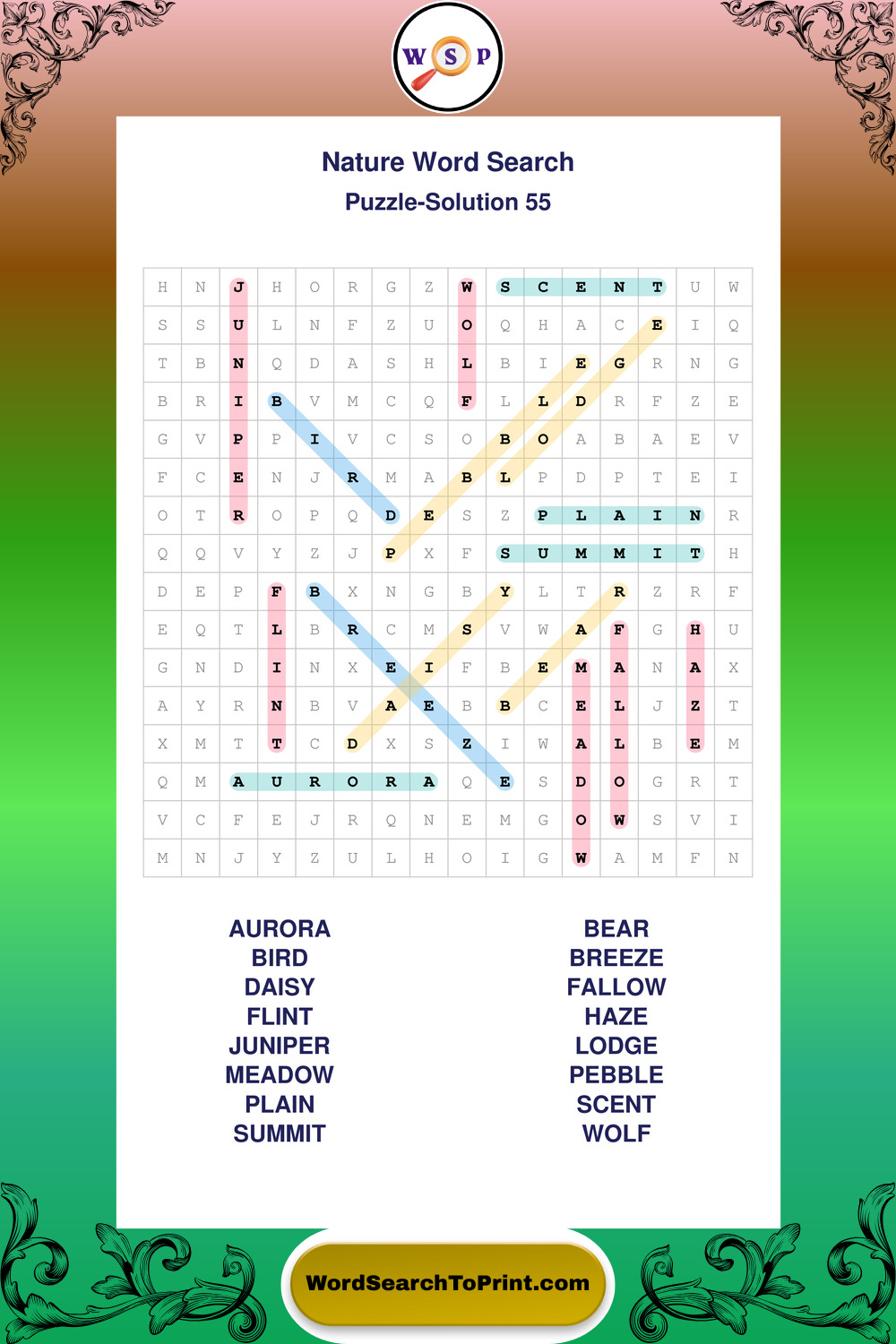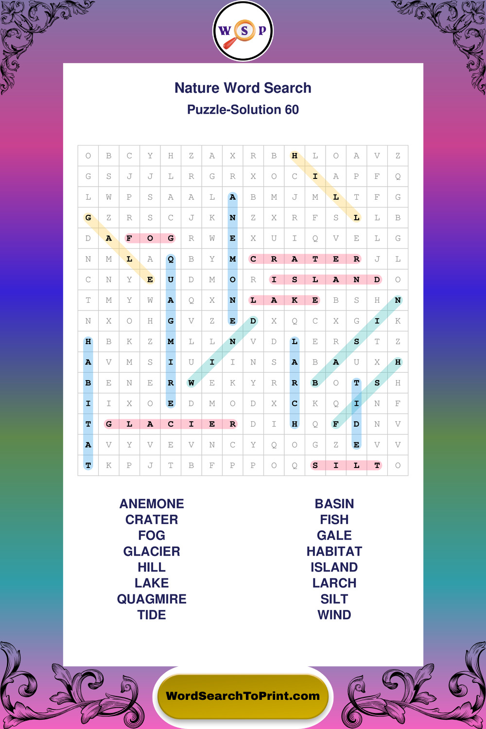Find easy-to-read large print Nature wordsearches designed for peaceful focus and simple, enjoyable solving.