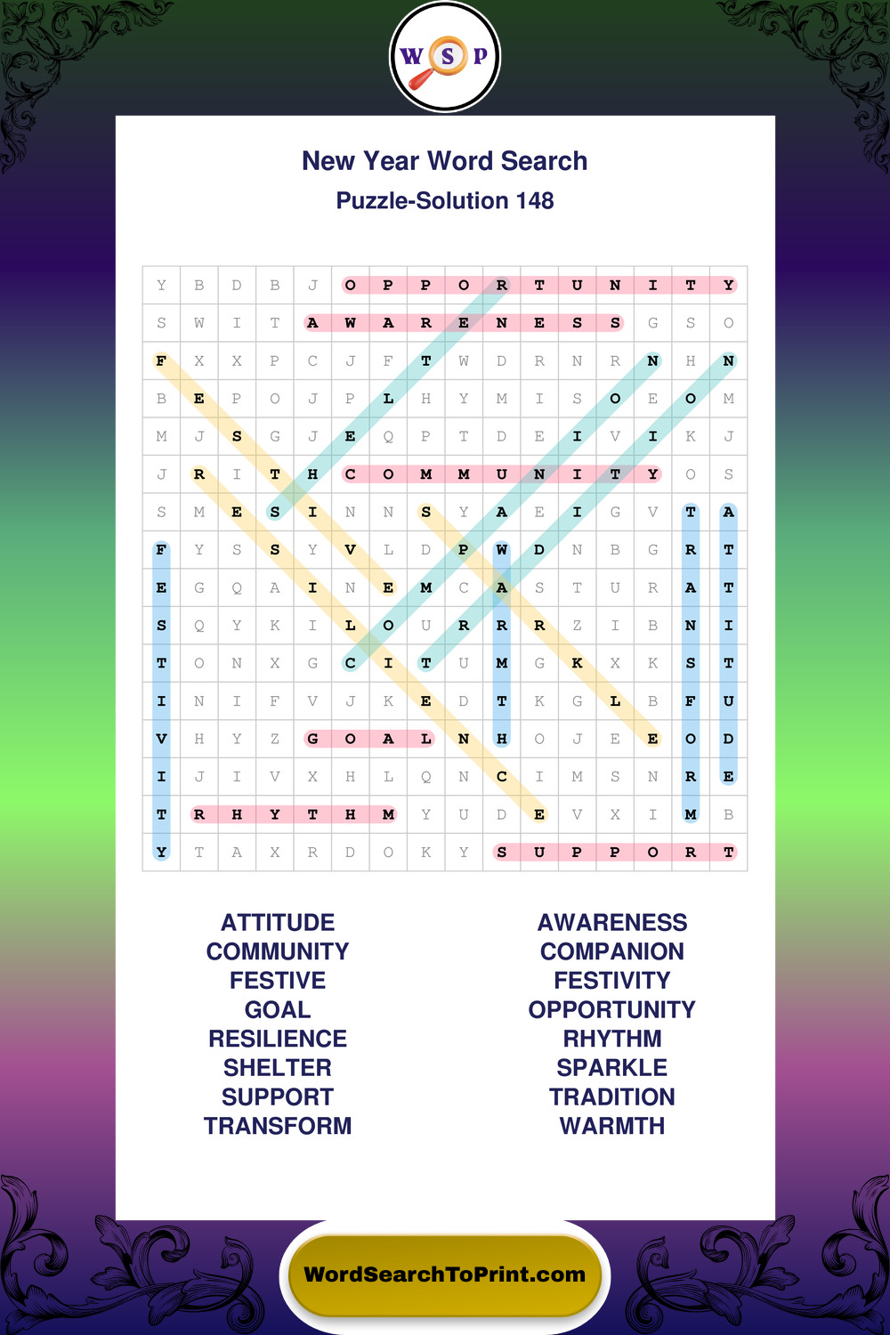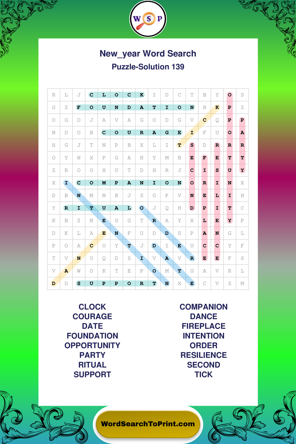 Printable New Year Wordsearch Puzzles