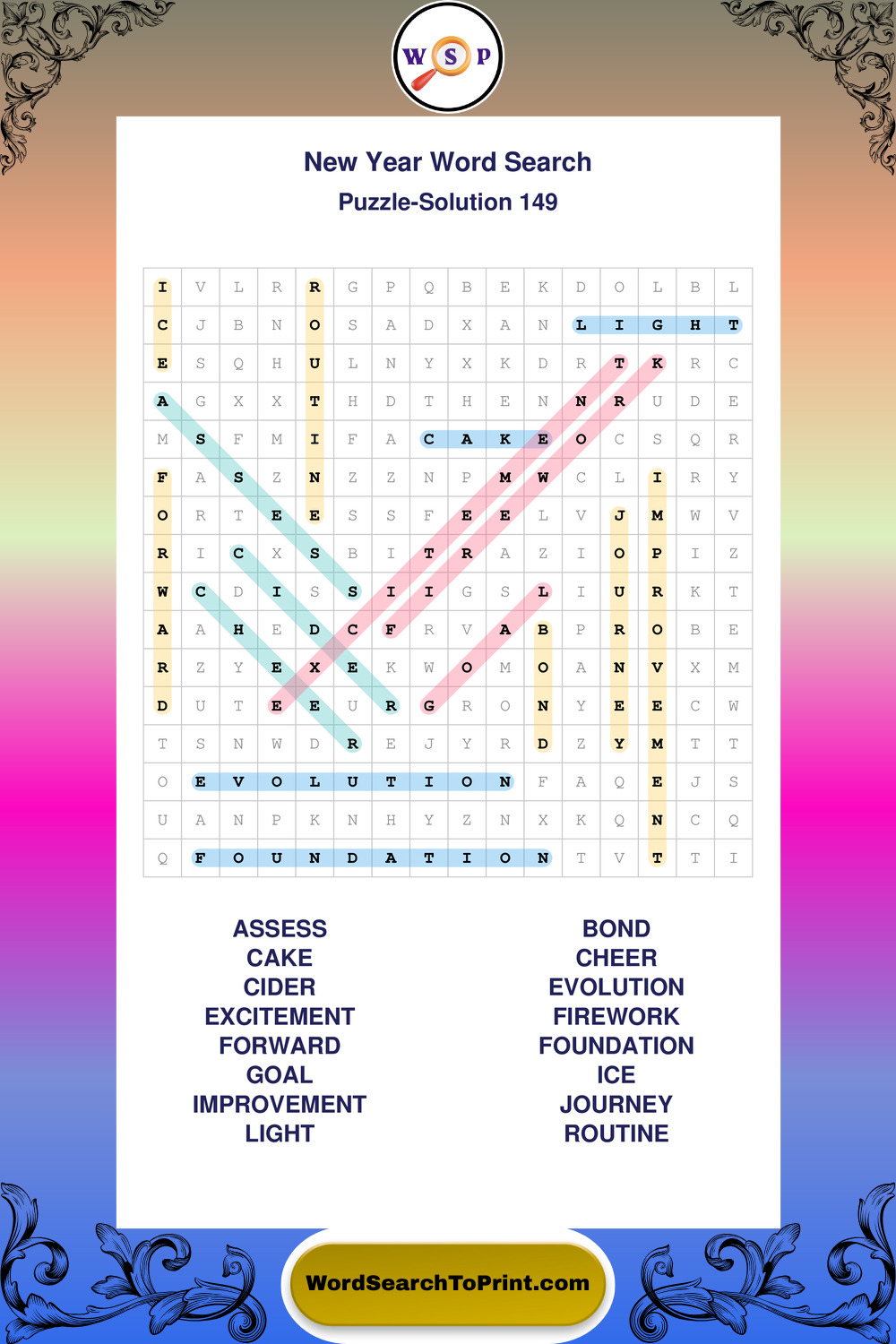 Free Large Print New Year Wordsearches