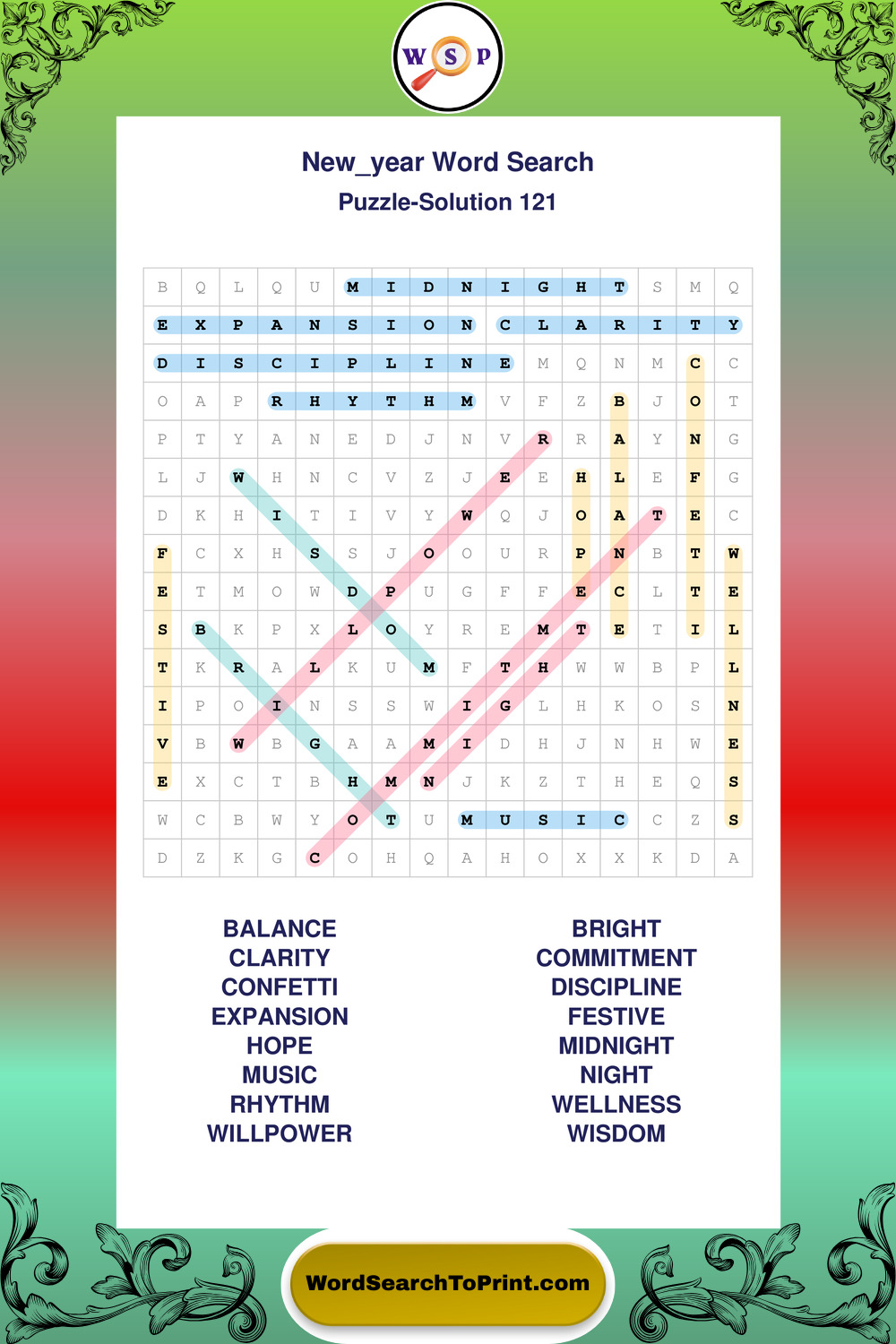 Printable New Year Wordsearch Puzzles