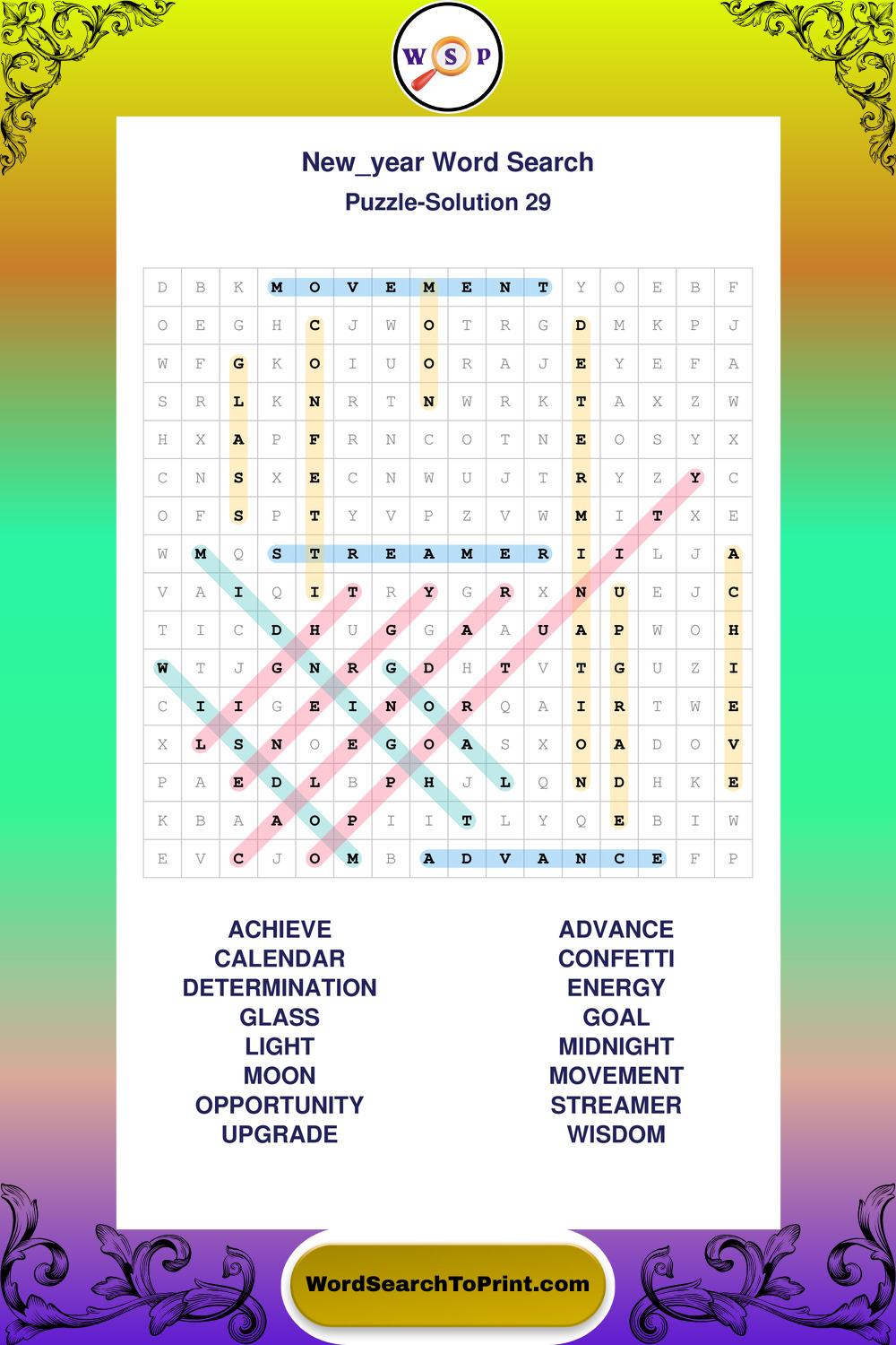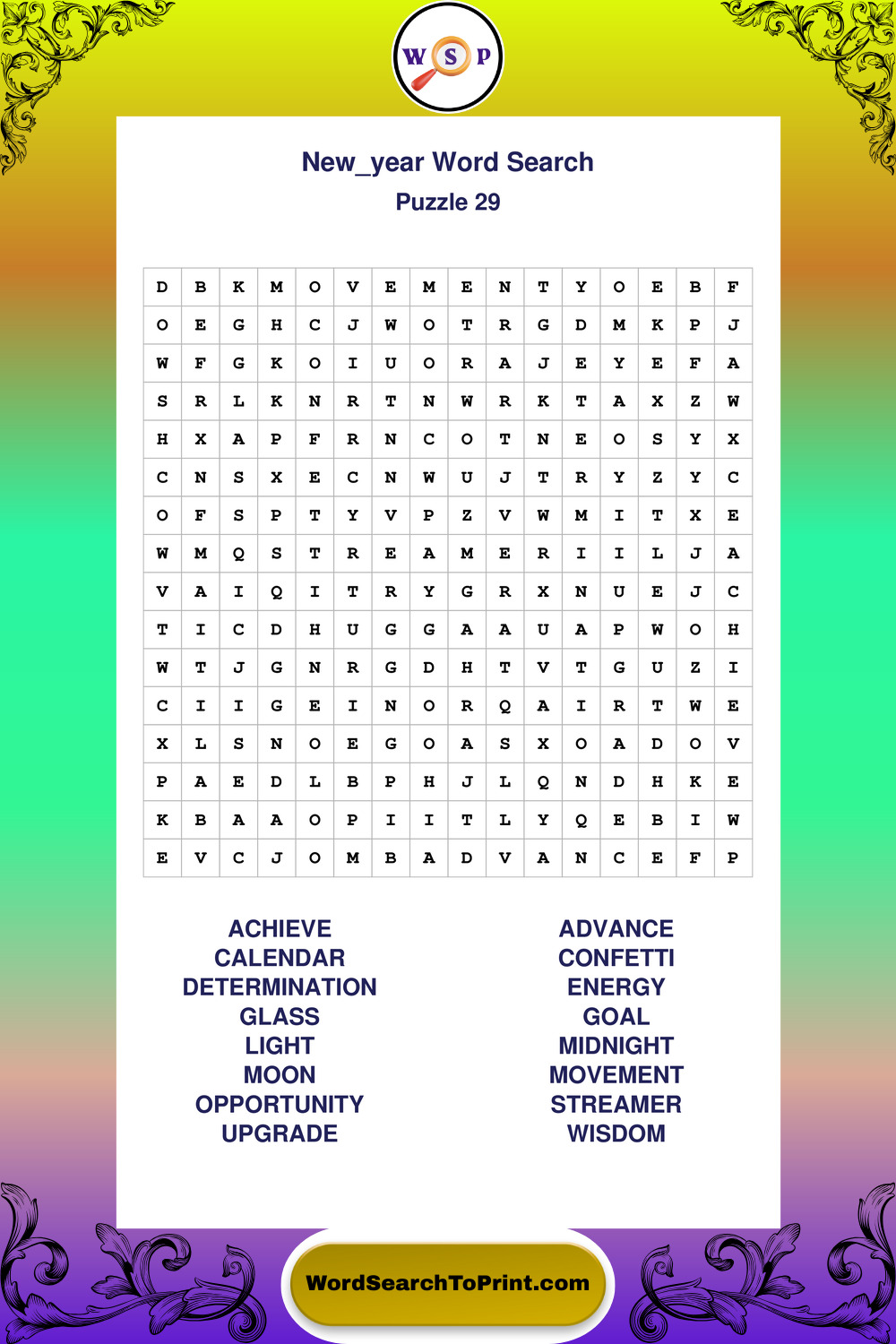 Printable New Year Wordsearch Puzzles