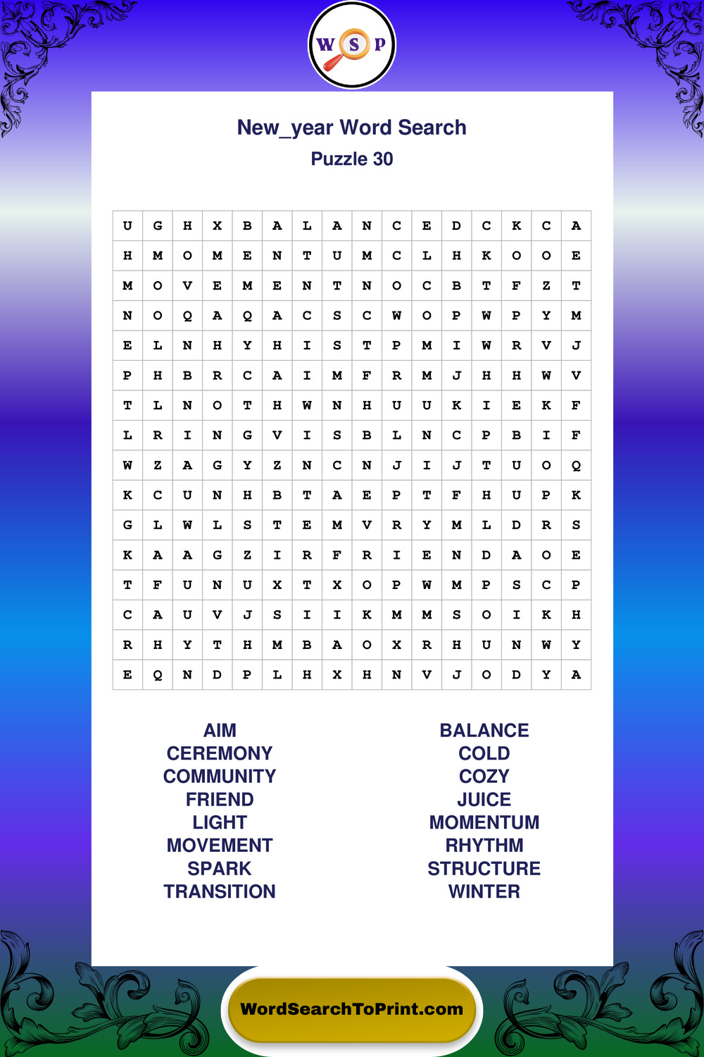 Explore a growing collection of large print New Year wordsearches created for comfortable, stress-free solving at your own pace.