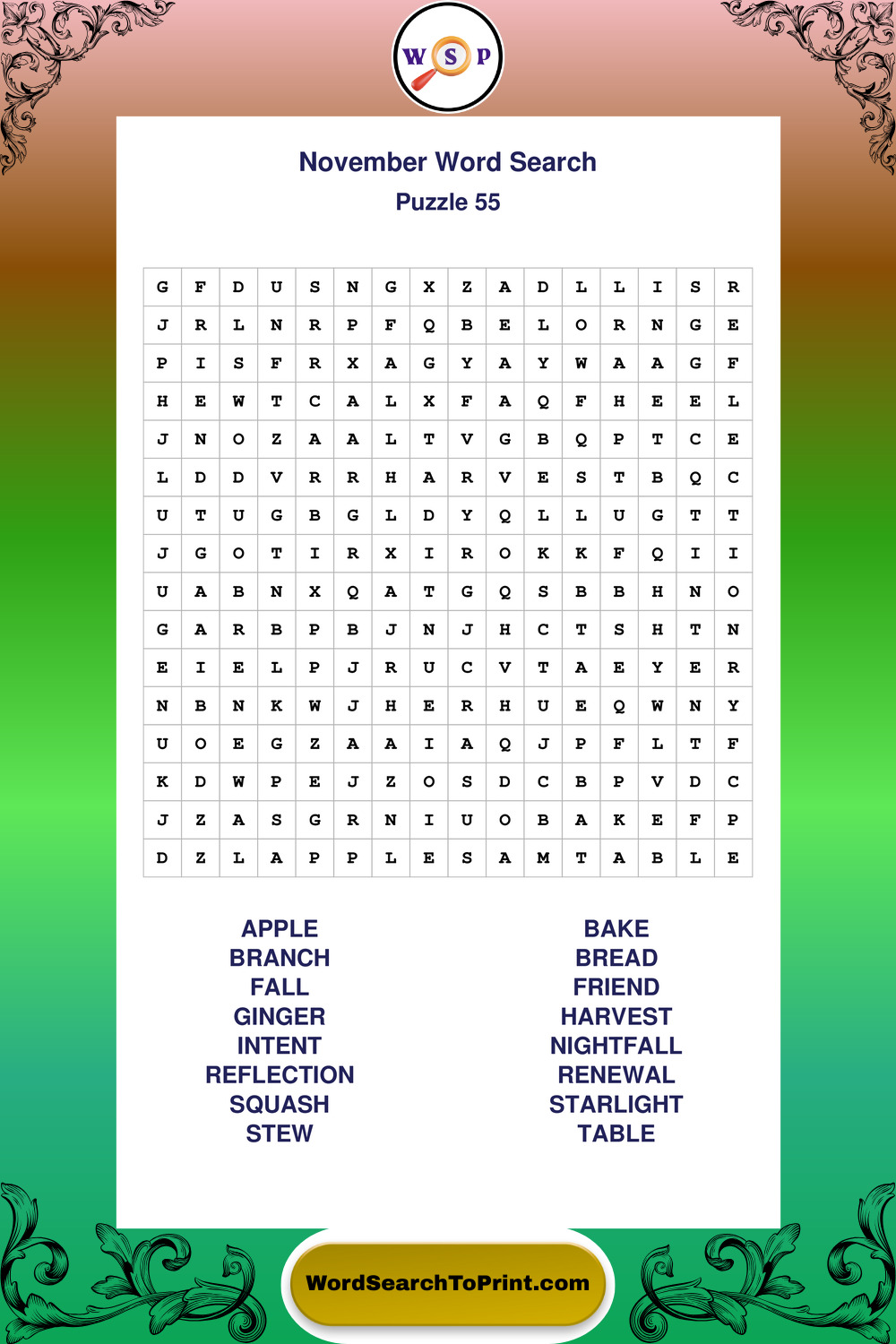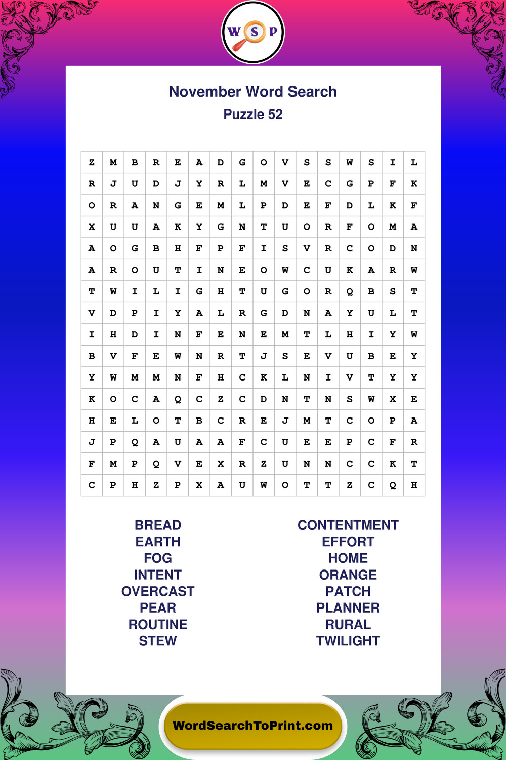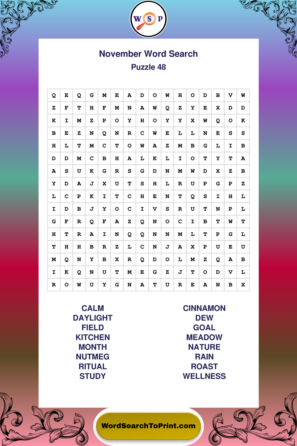 A carefully designed collection of large print November wordsearches created for comfort, clarity, and relaxed puzzle fun.