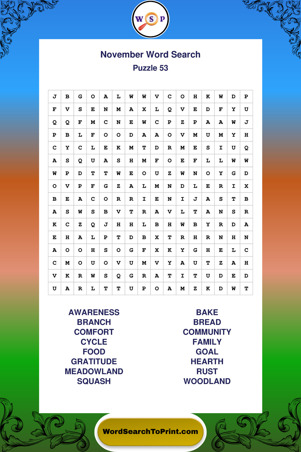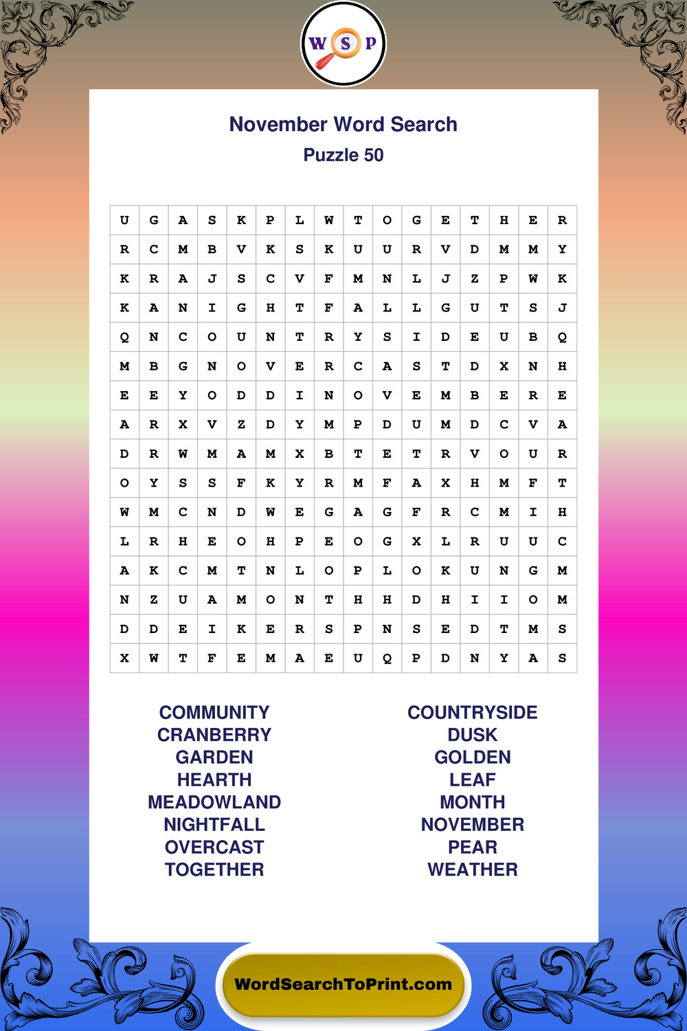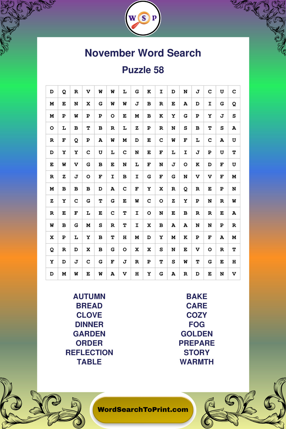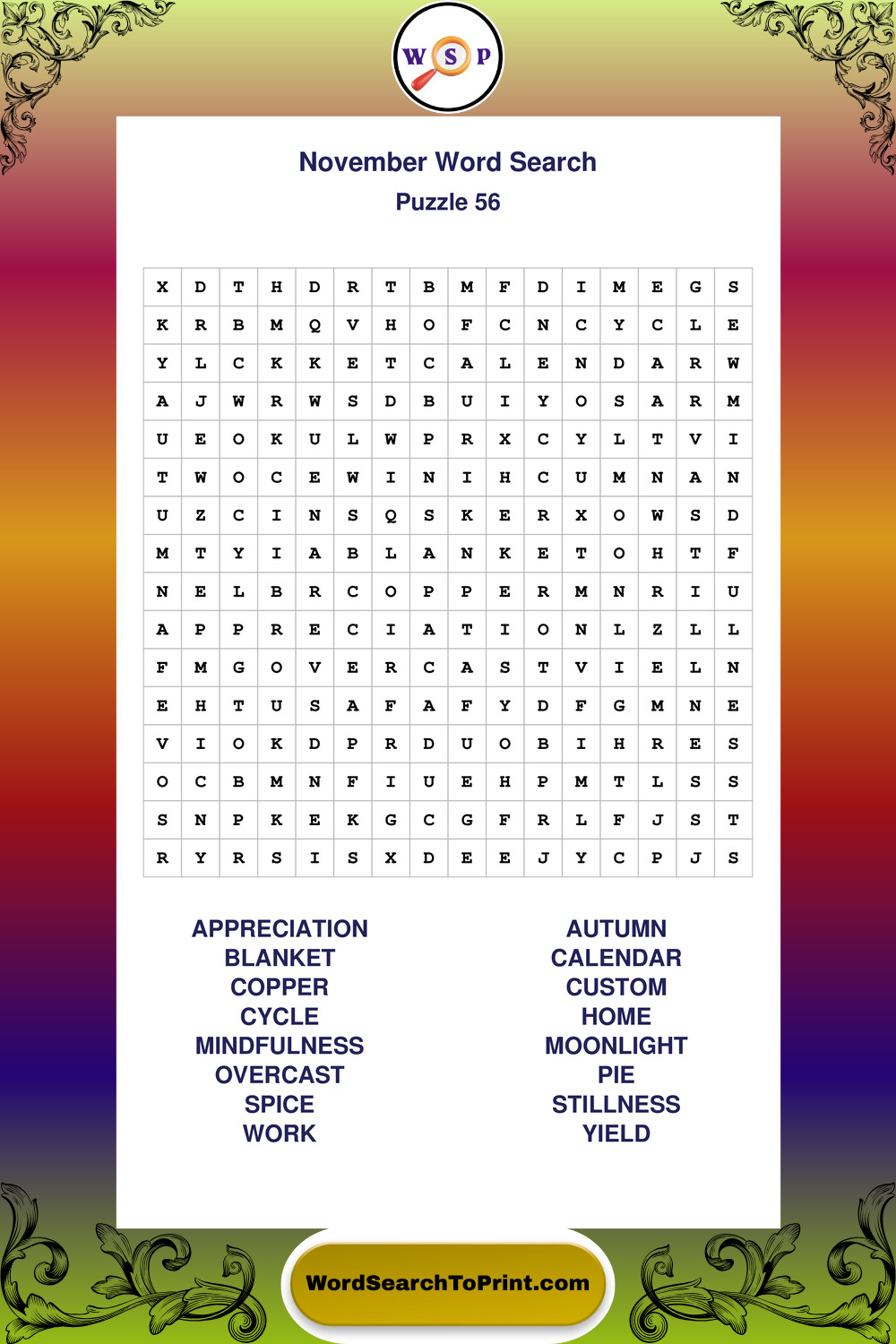 A carefully designed collection of large print November wordsearches created for comfort, clarity, and relaxed puzzle fun.