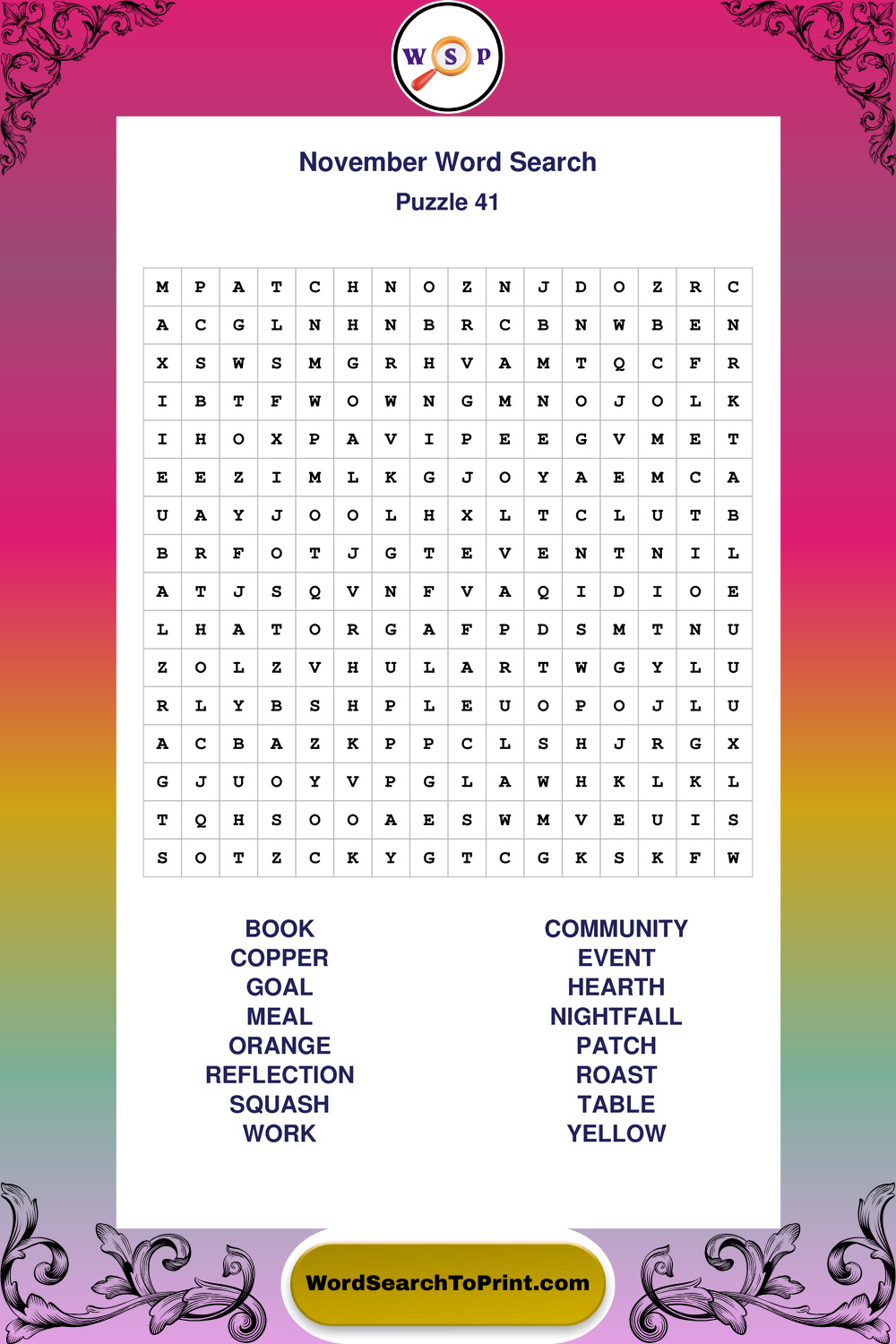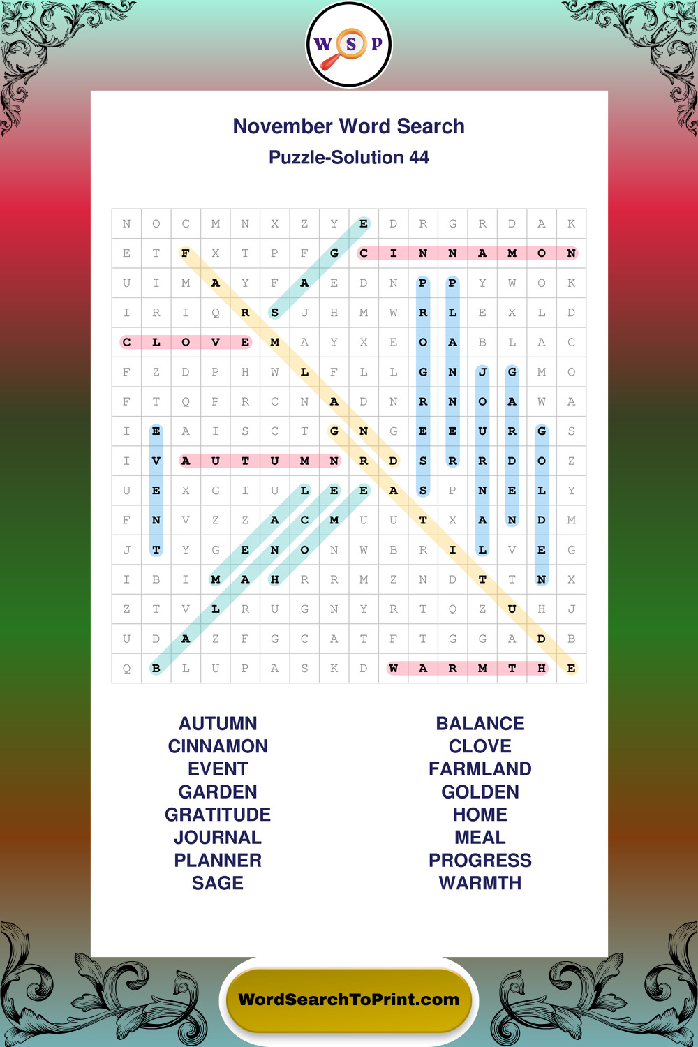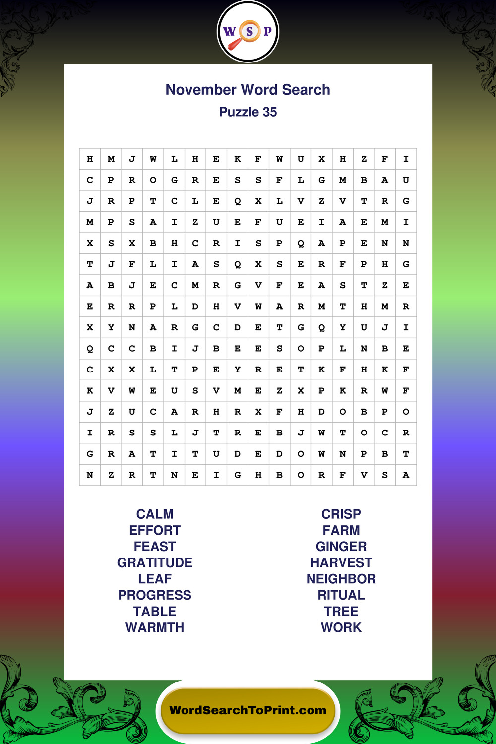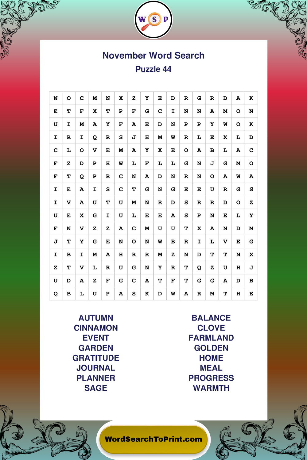 November Wordsearches