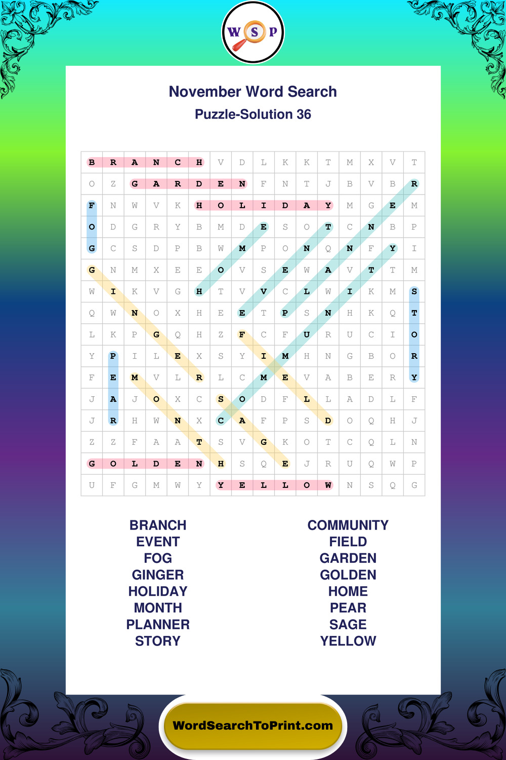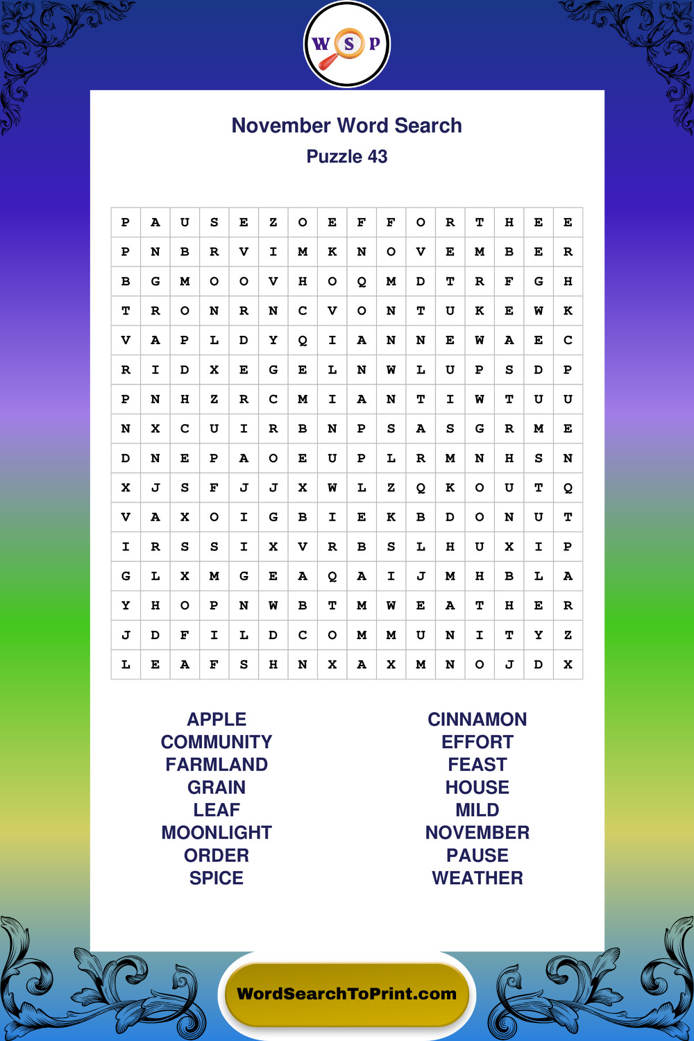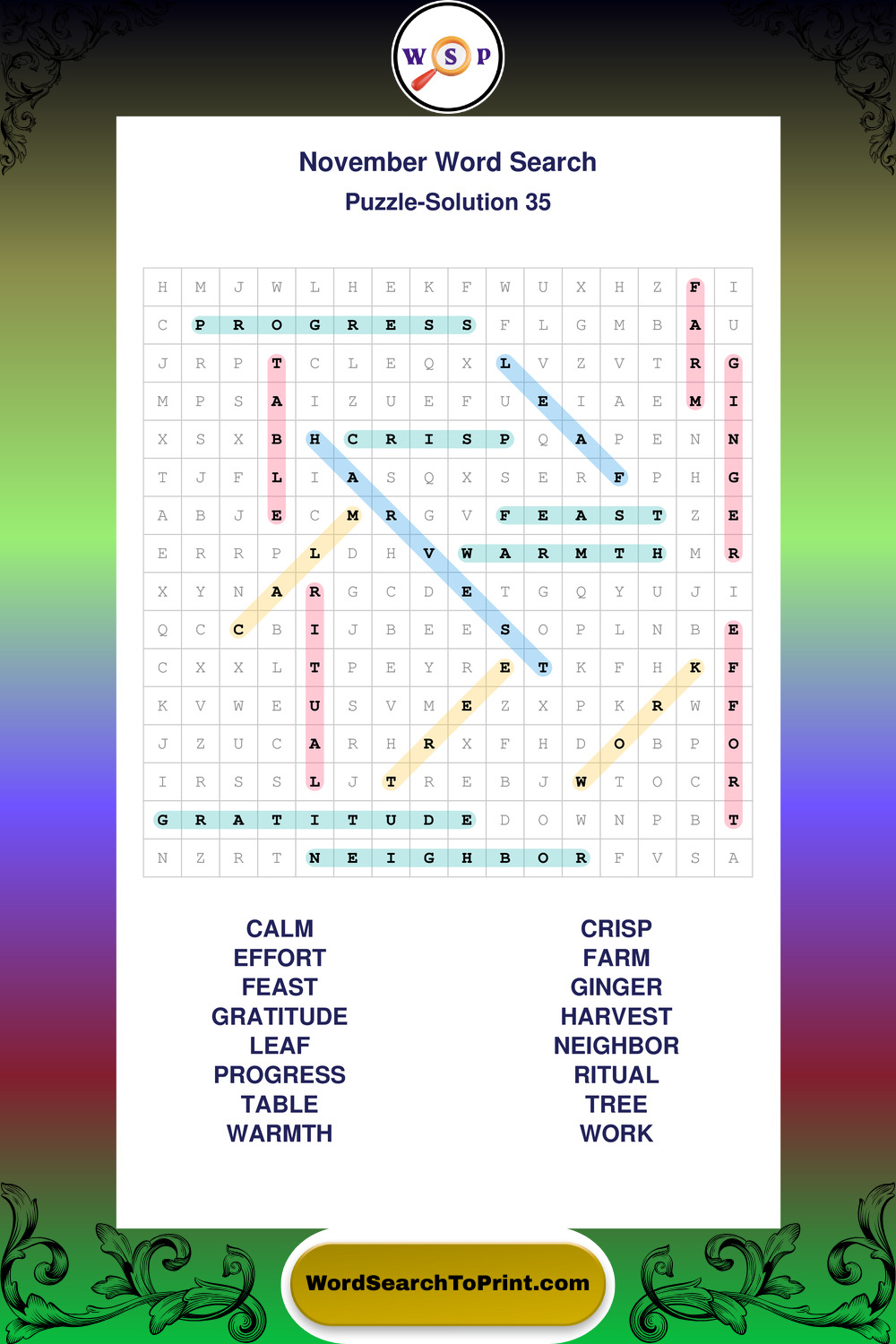 November Wordsearches
