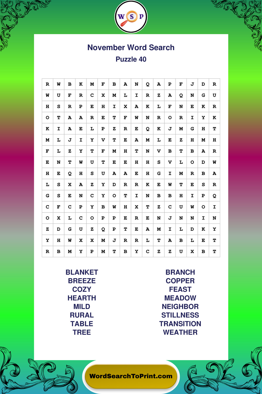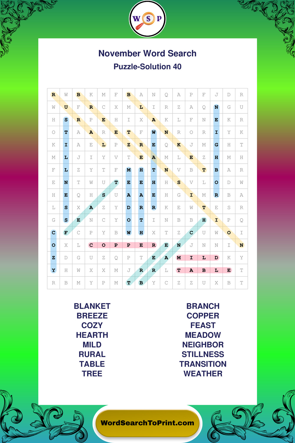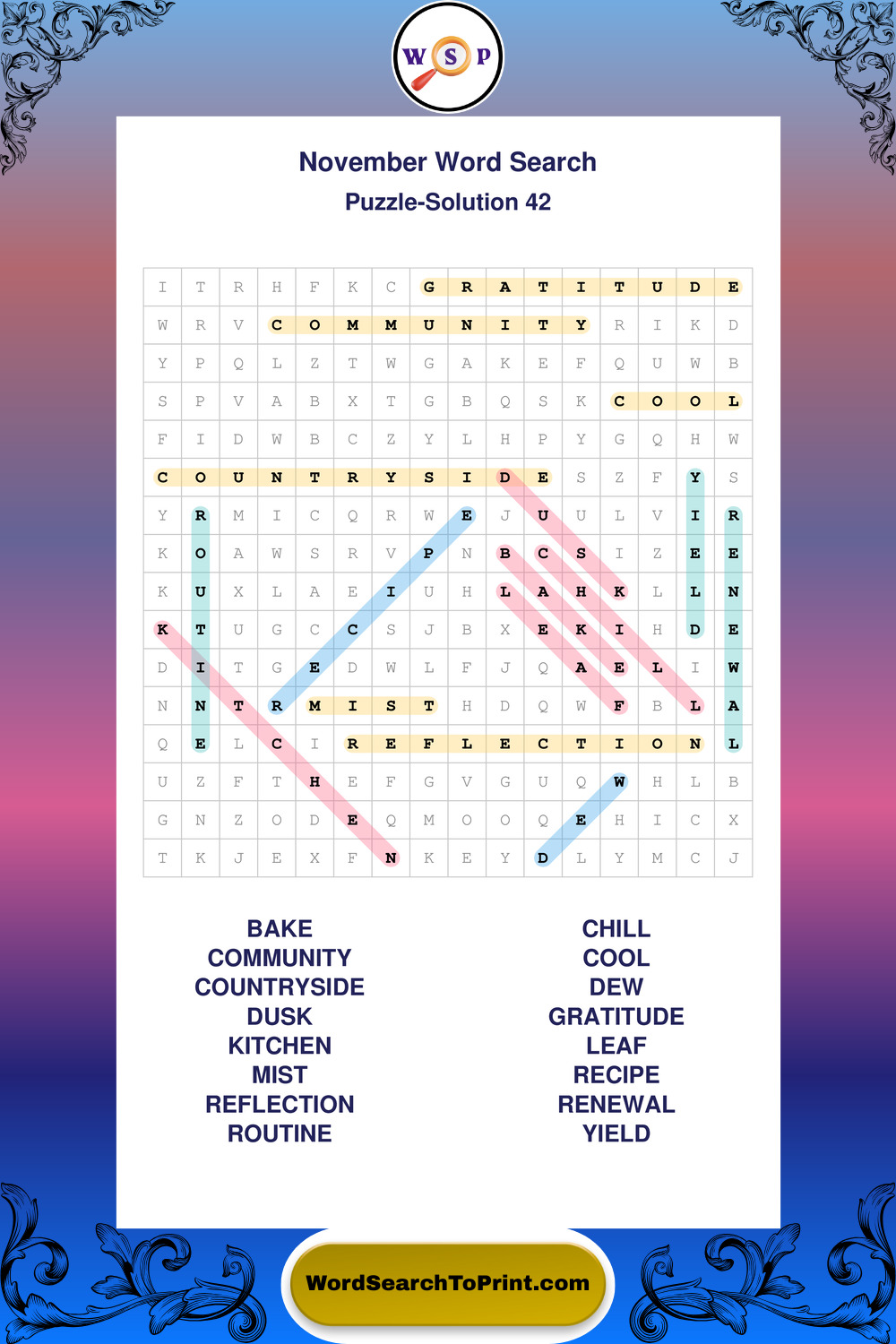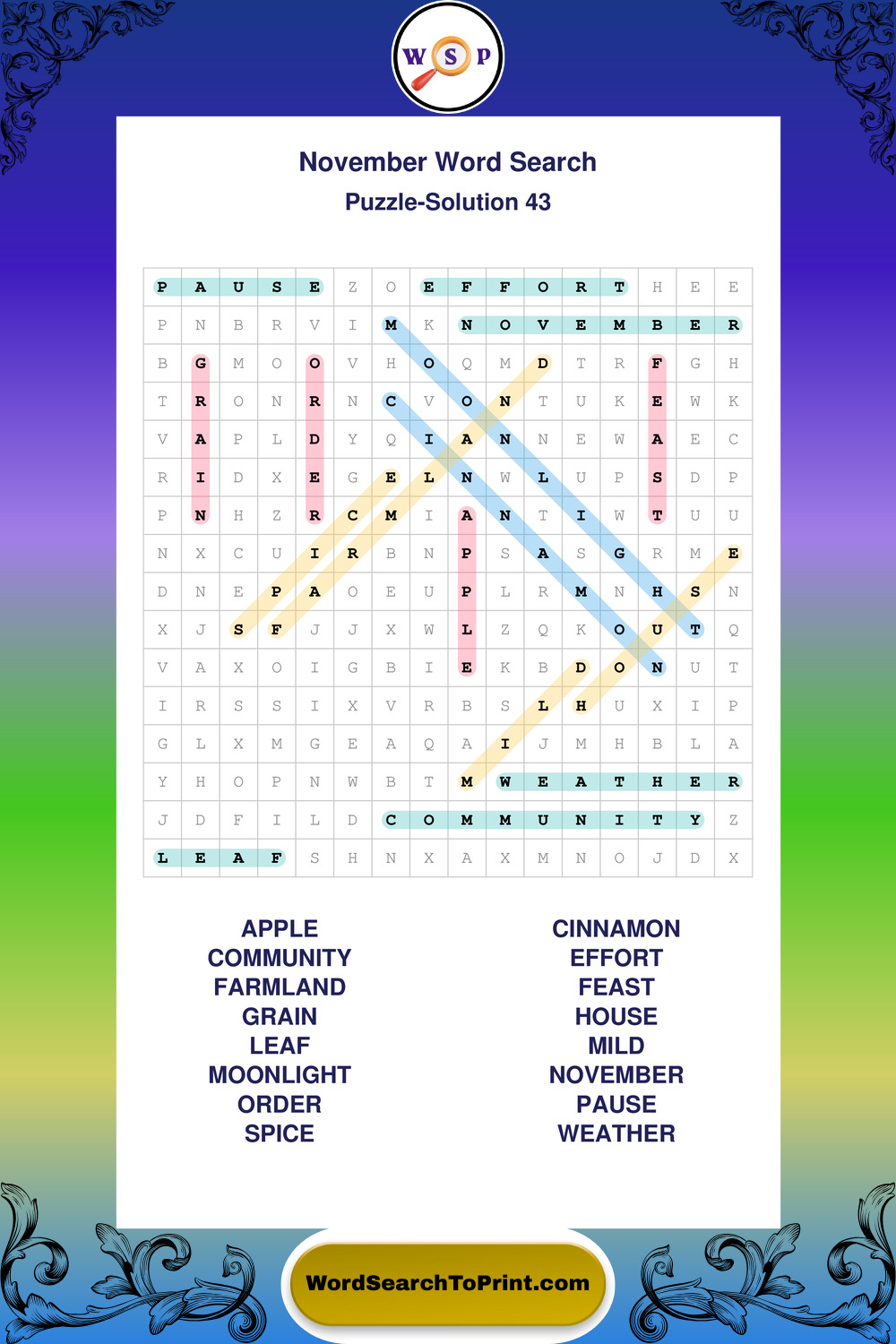 November Wordsearches