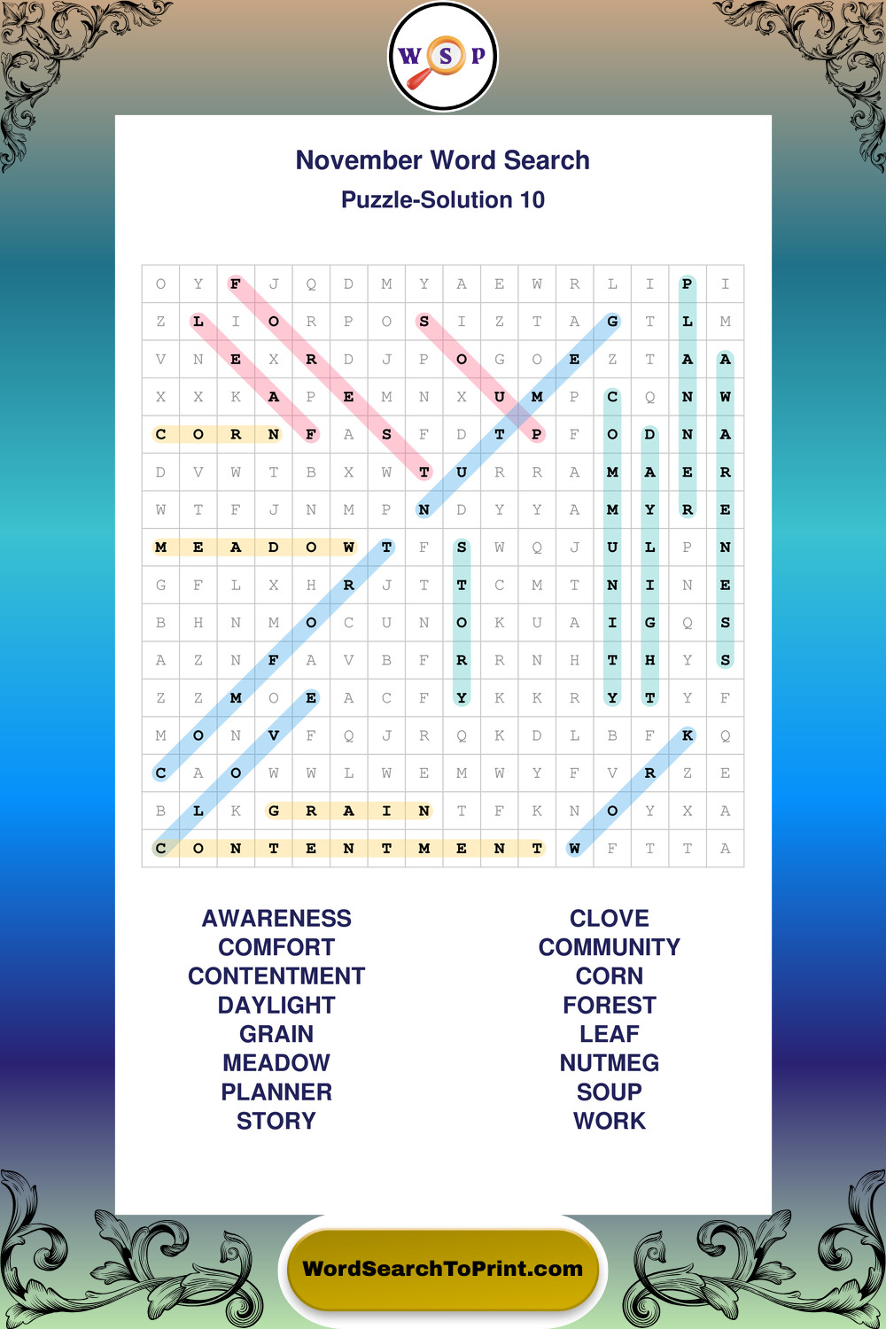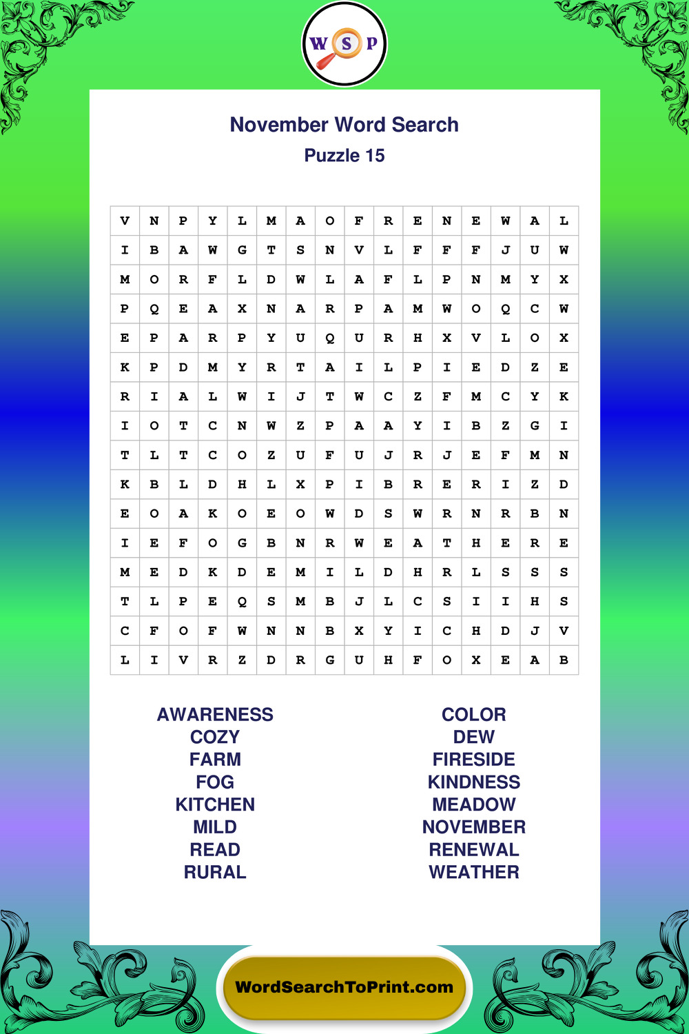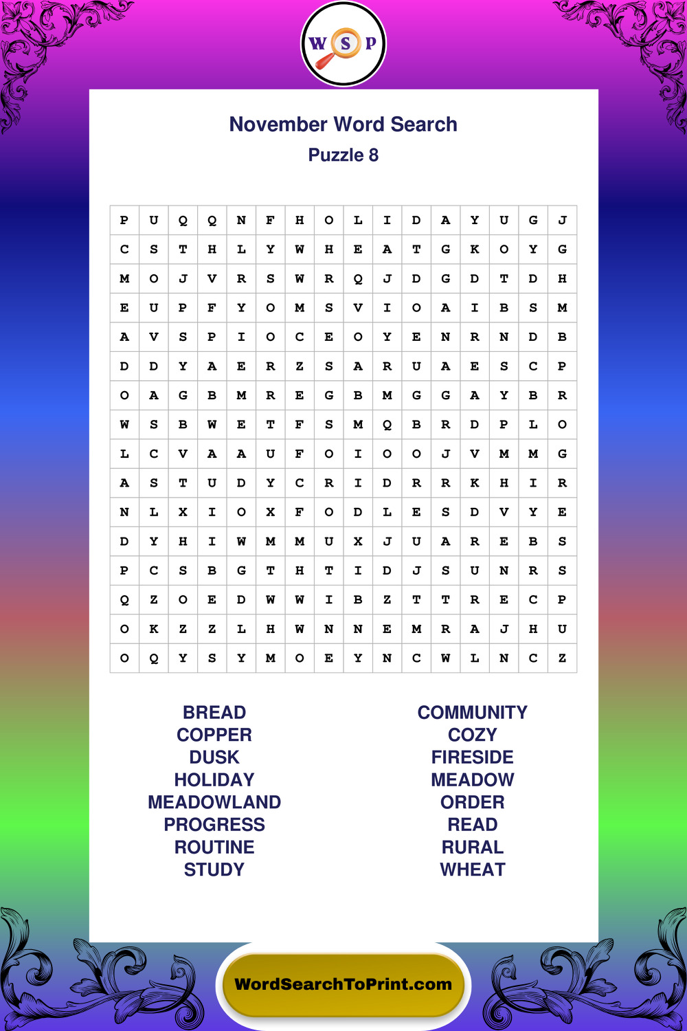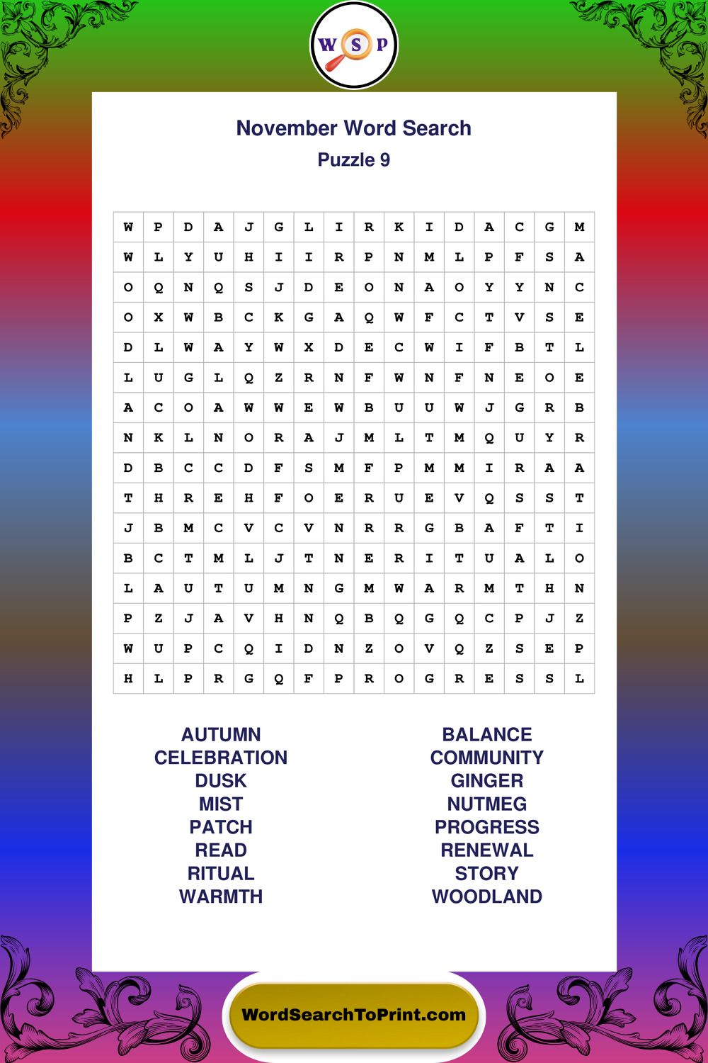 November Wordsearches