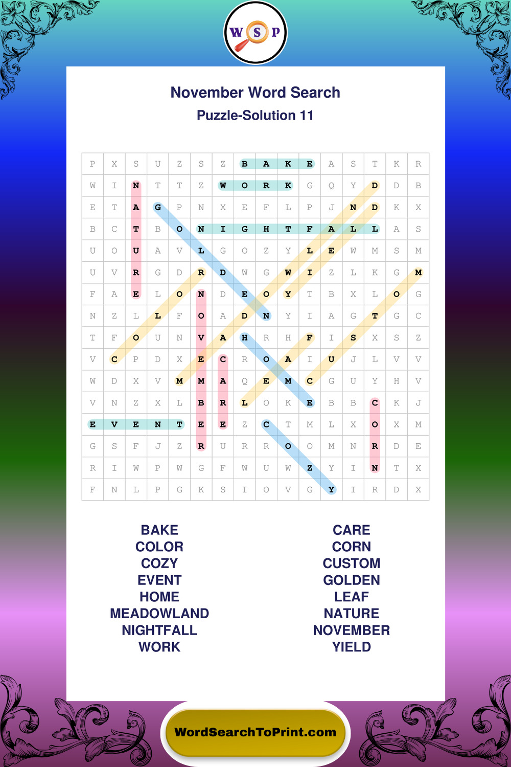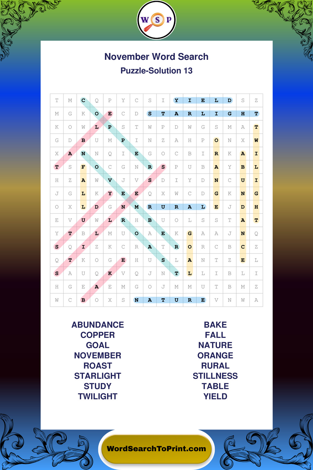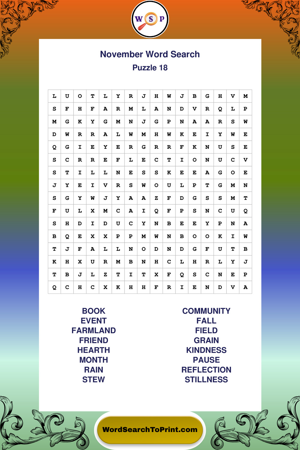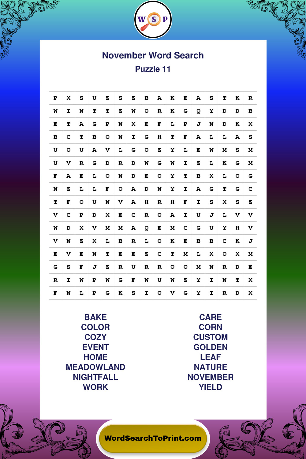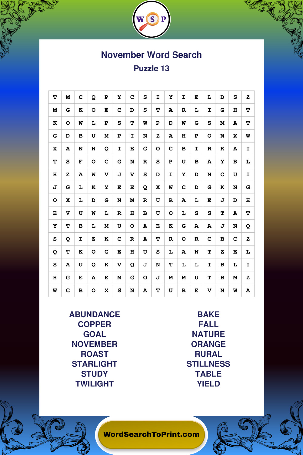 November Wordsearches