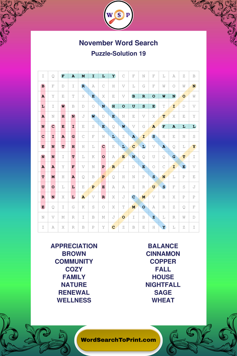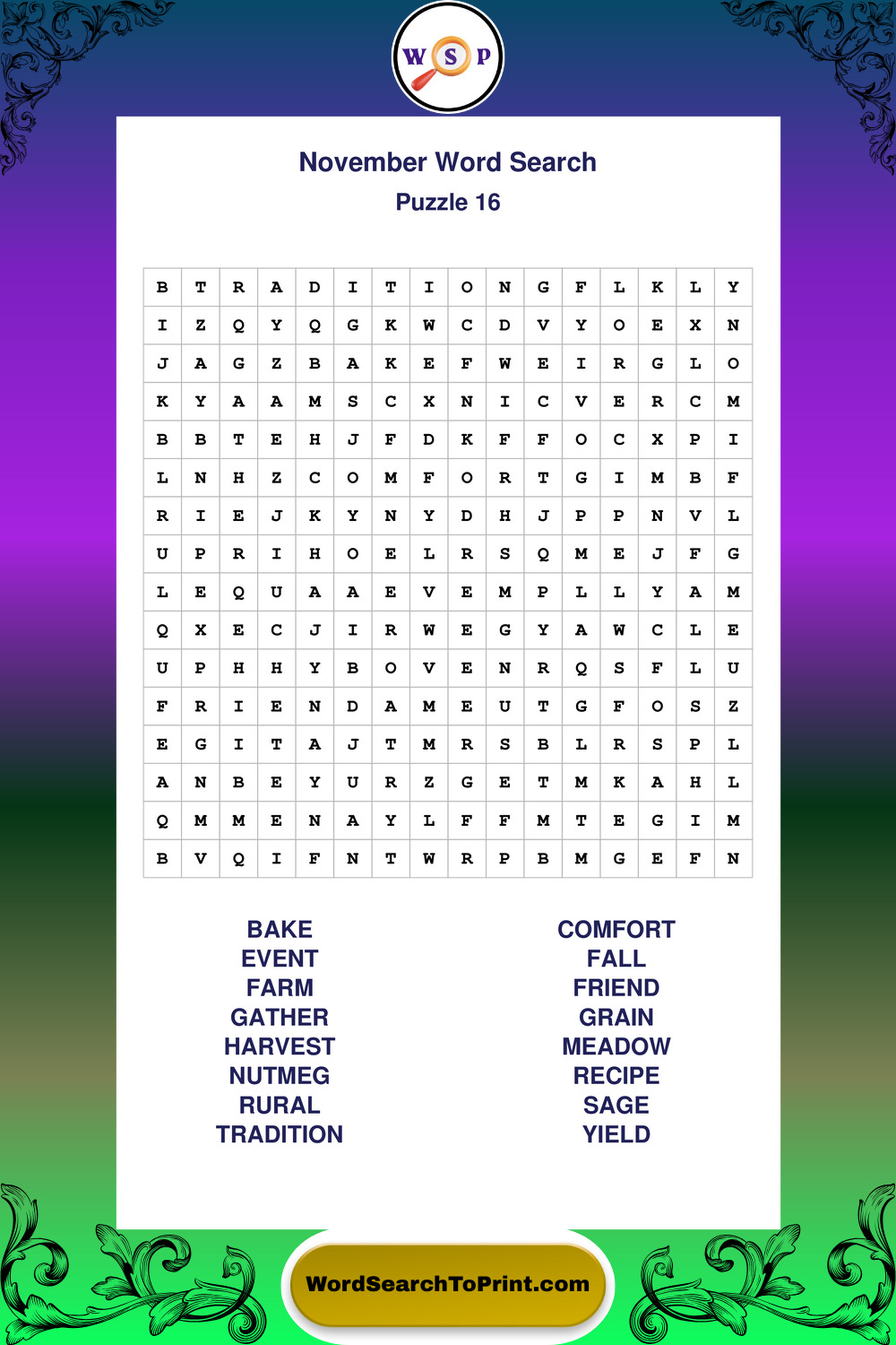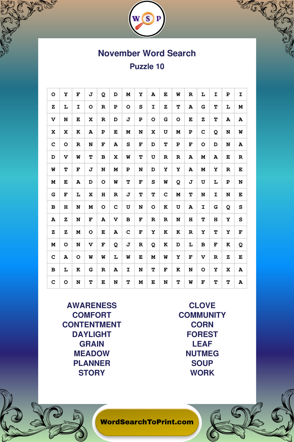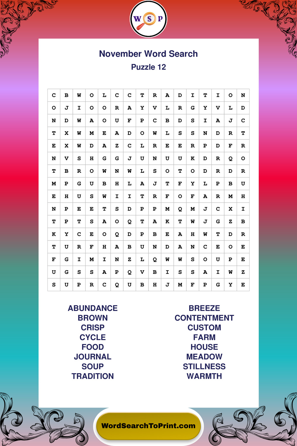 November Wordsearches
