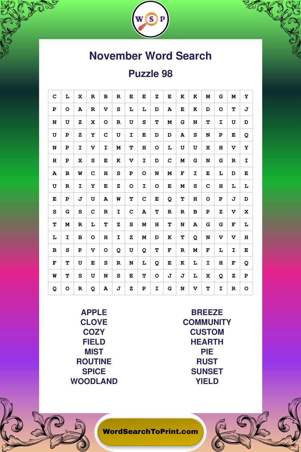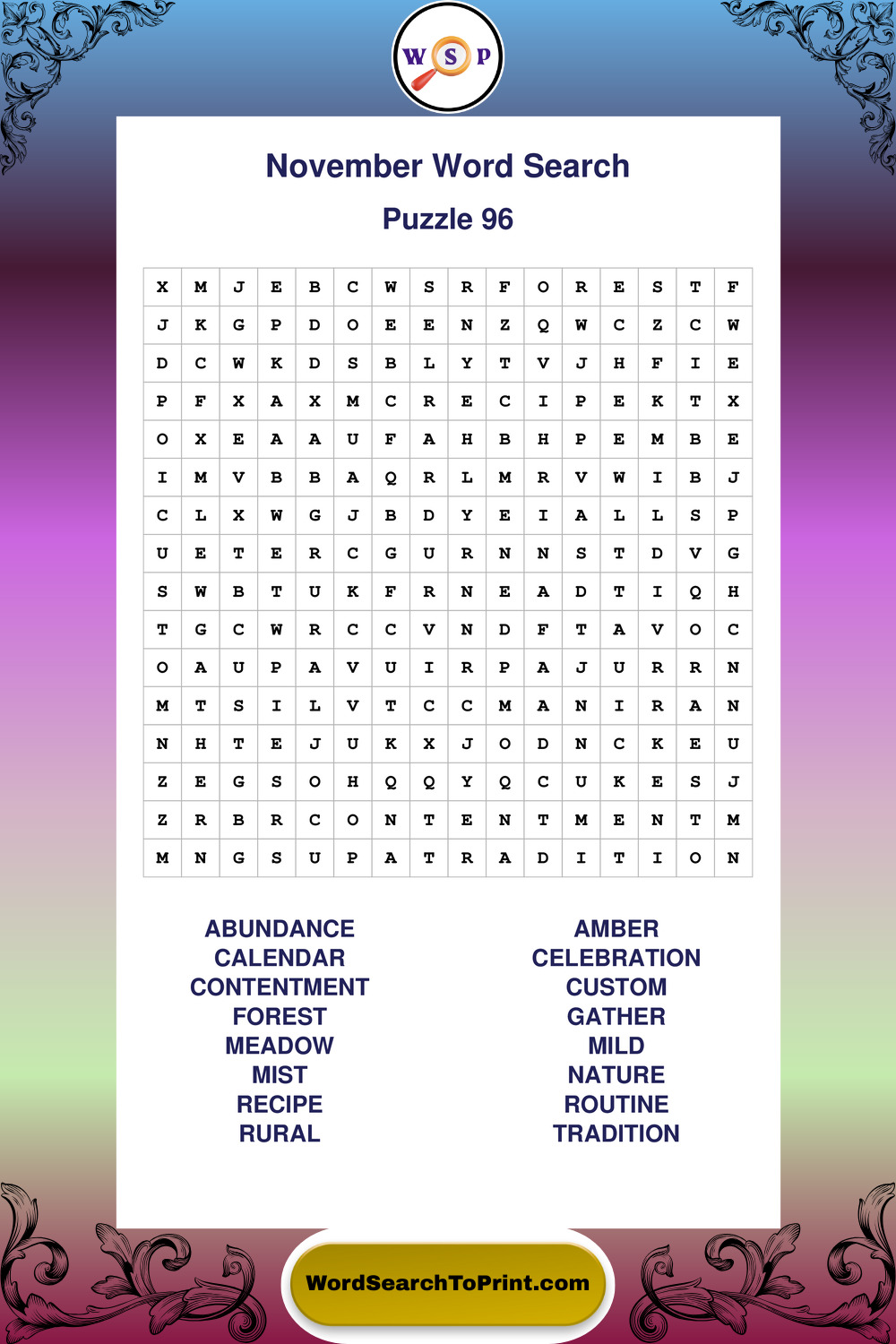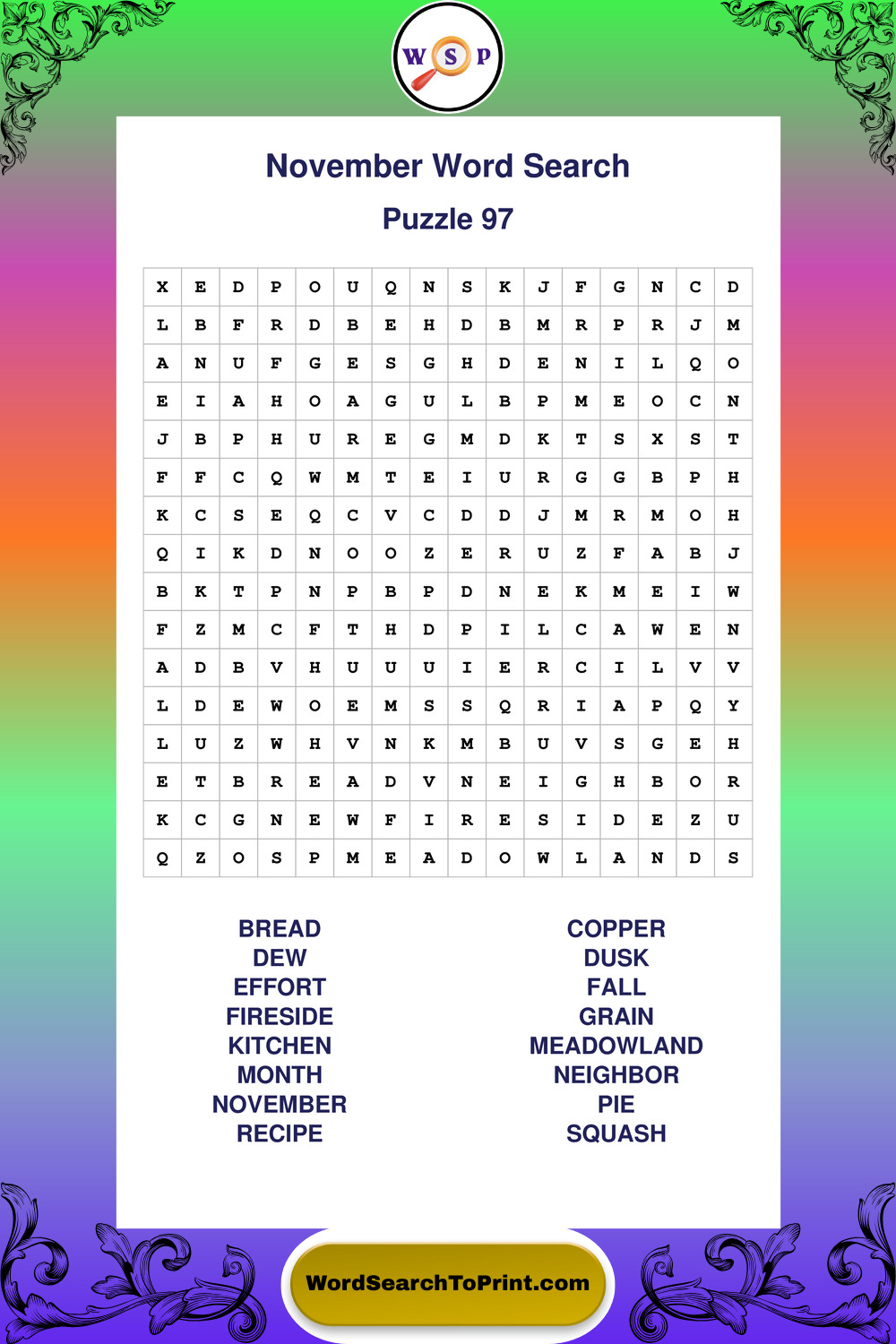 November Wordsearches