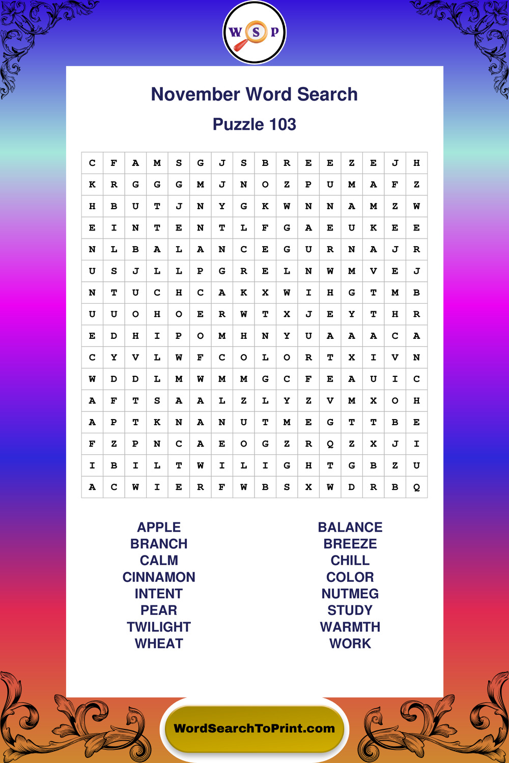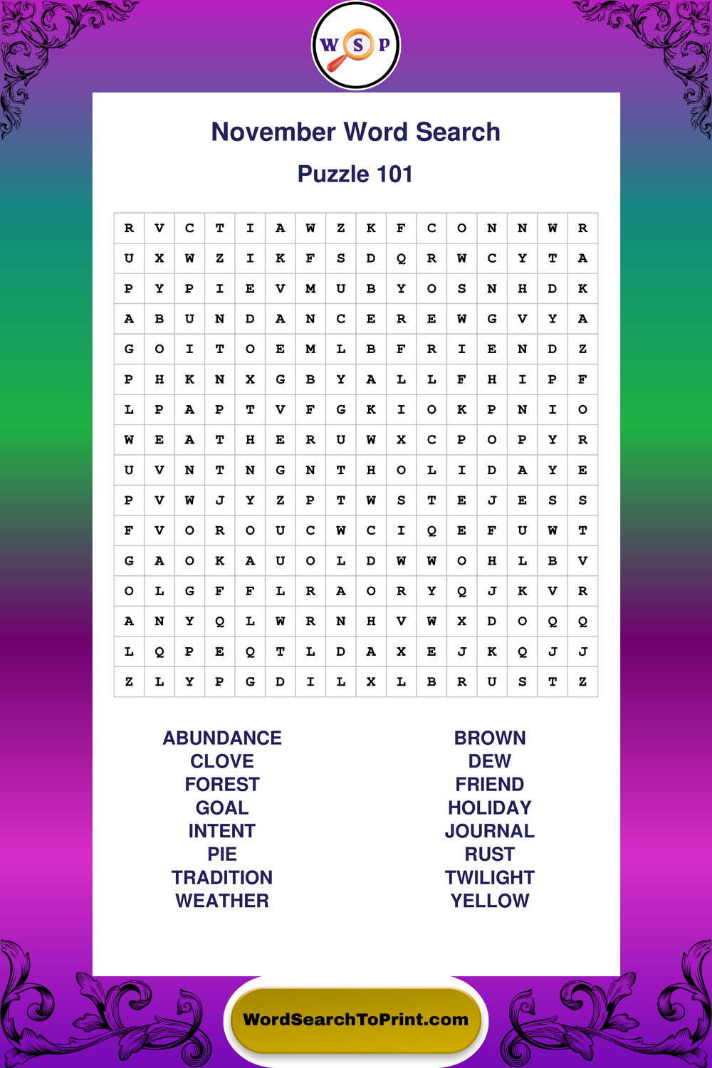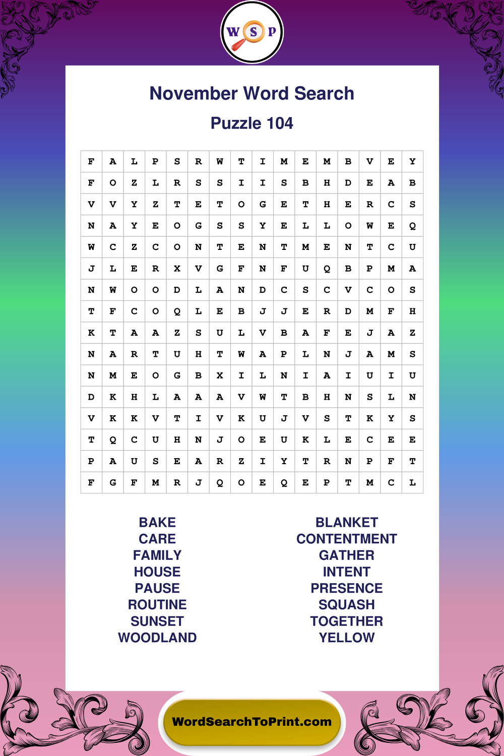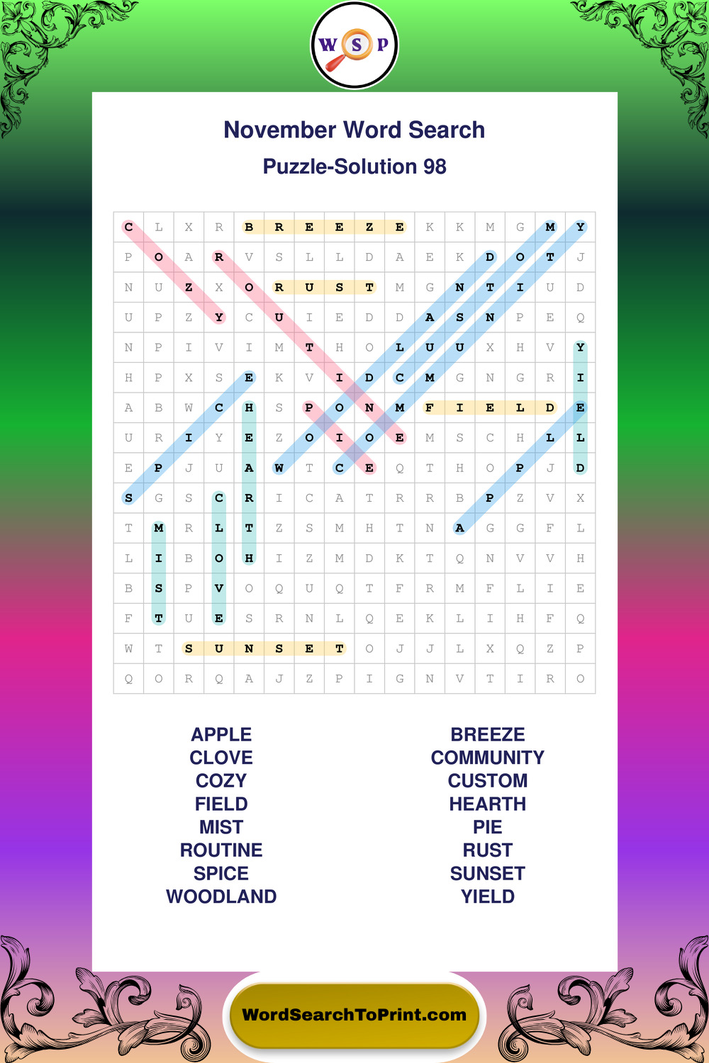 November Wordsearches